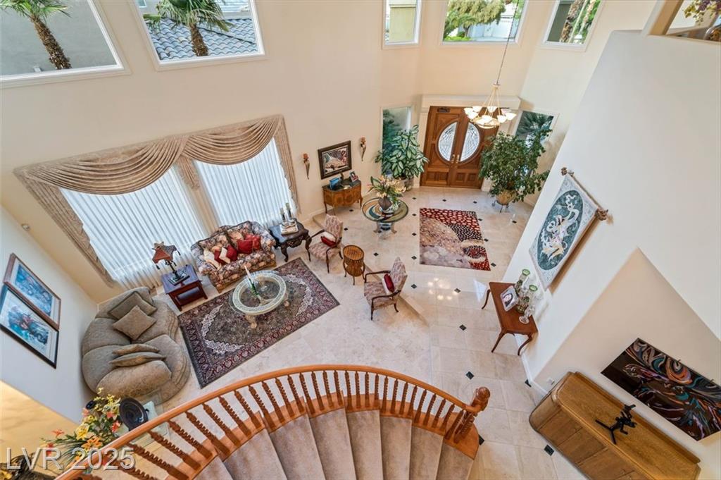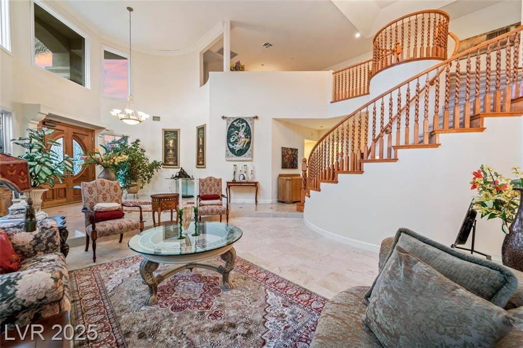 WELCOME TO THIS EXCEPTIONAL FORMER MODEL HOME. NO EXPENSE WAS SPARED CREATING THIS MASTERPIECE. A BREATH-TAKING MARBLE ENTRYWAY LEADS TO 21' HIGH CATHEDRAL CEILING TO HIGHLIGHTS THE GRAND ENTRY AND LIVING ROOM WITH A PICTURED WINDOWS SHOWCASING AMAZING OUTDOOR OASIS. ELEGANT SPIRAL STAIRCASE, TAKES YOU TO SPECTACULAR MOUNTAIN VIEWS FROM UPSTAIRS. THE MASTER BEDROOM WITH CROWN MOLDING, SEATING AREA, BUILT IN WET BAR W/ REFRIGERATOR, AND A BALCONY. MASTER BATHROOMS WITH DUAL SINKS, DRESSING TABLE, SEPARATE JETTED TUB/SHOWER, MARBLE FLOORS AND A CUSTOM WALK-IN CLOSET. 2 GUEST ROOMS, WITH COFFERED CEILING, BUILT IN SURROUND SOUNDS, CUSTOM CLOSET, FULL MARBLE BATHROOM. THE ACTUAL SQ.FT IS 5,781 SQ.FT WHICH 5,496 IS THE MAIN HOUSE + 285 CASITA. THE KITCHEN W/ TRAVERTINE FLOORS, SUB-ZERO, 6 BURNER DACOR APPLIANCES, CONAC CUSTOM CABINETS, BUTLER PANTRY, TRASH COMPACTOR. BUILT-IN HEPA FILTER TO PURIFIER AIR AND REMOVE DUST. PEBBLE TEC POOL & SPA.THE CASITA OFFERS A PRIVATE FULL BATH W/CLOSET.