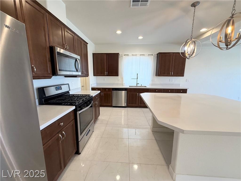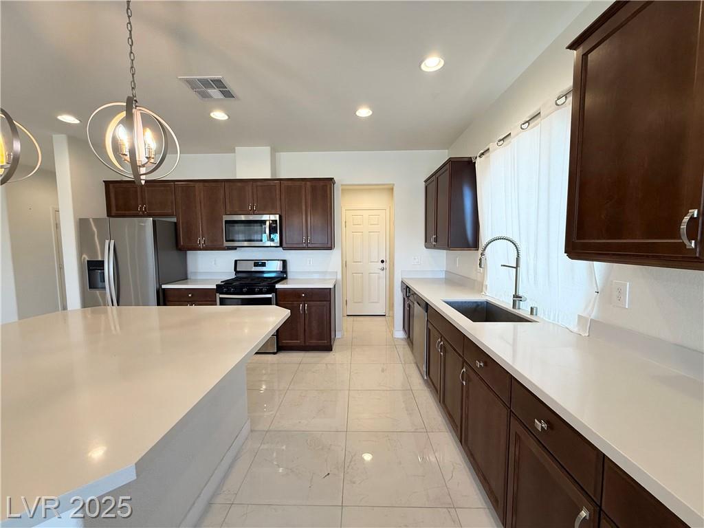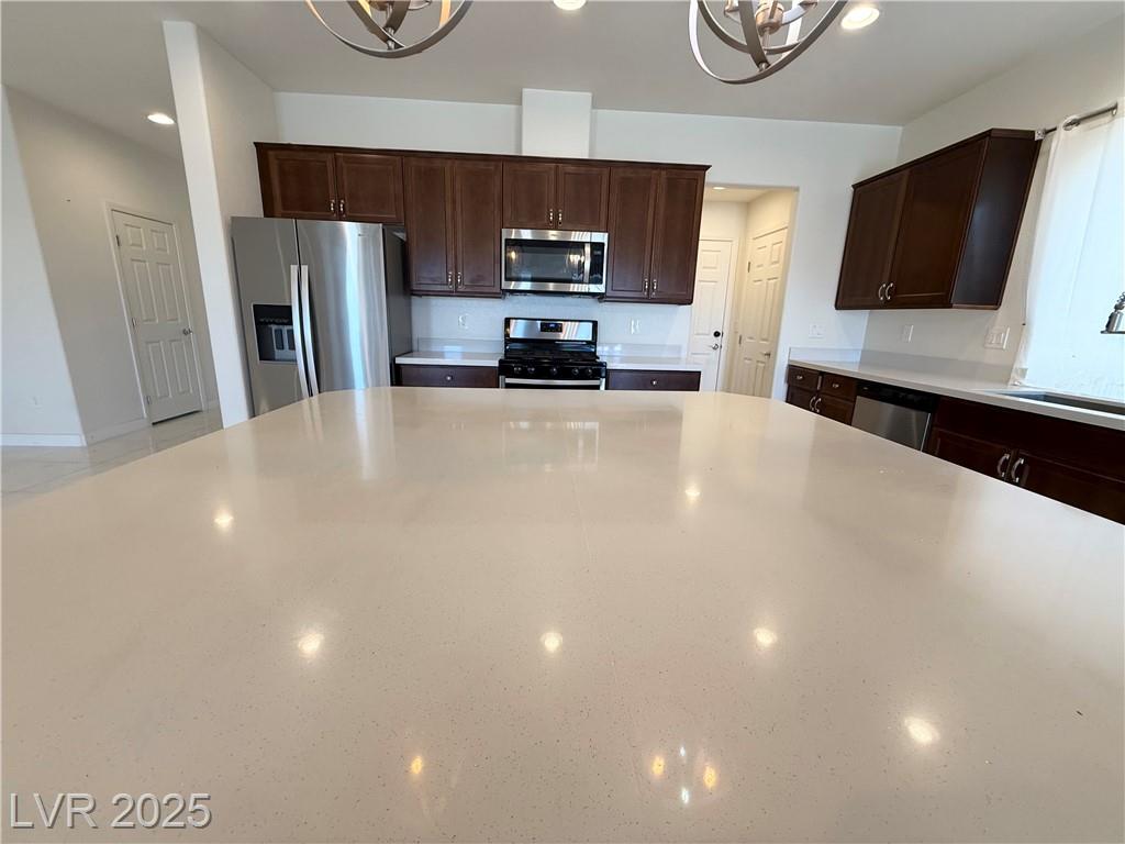 This stunning 4-bedroom, 2.5-bath home offers comfort, style, and space—with no carpet throughout! The open floorplan features tile and wood flooring, creating a sleek, low-maintenance living environment. The kitchen boasts stainless steel appliances, an oversized island, and granite countertops—perfect for both daily use and entertaining. The spacious primary suite includes an oversized walk-in closet, walk-in shower, and dual sinks for added convenience. Enjoy stunning mountain views from the large backyard, complete with a covered patio for outdoor relaxation. Solar panels help keep energy costs low, while the 2-car garage and thoughtful upgrades throughout make daily living easy.