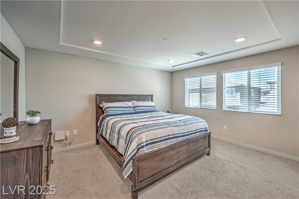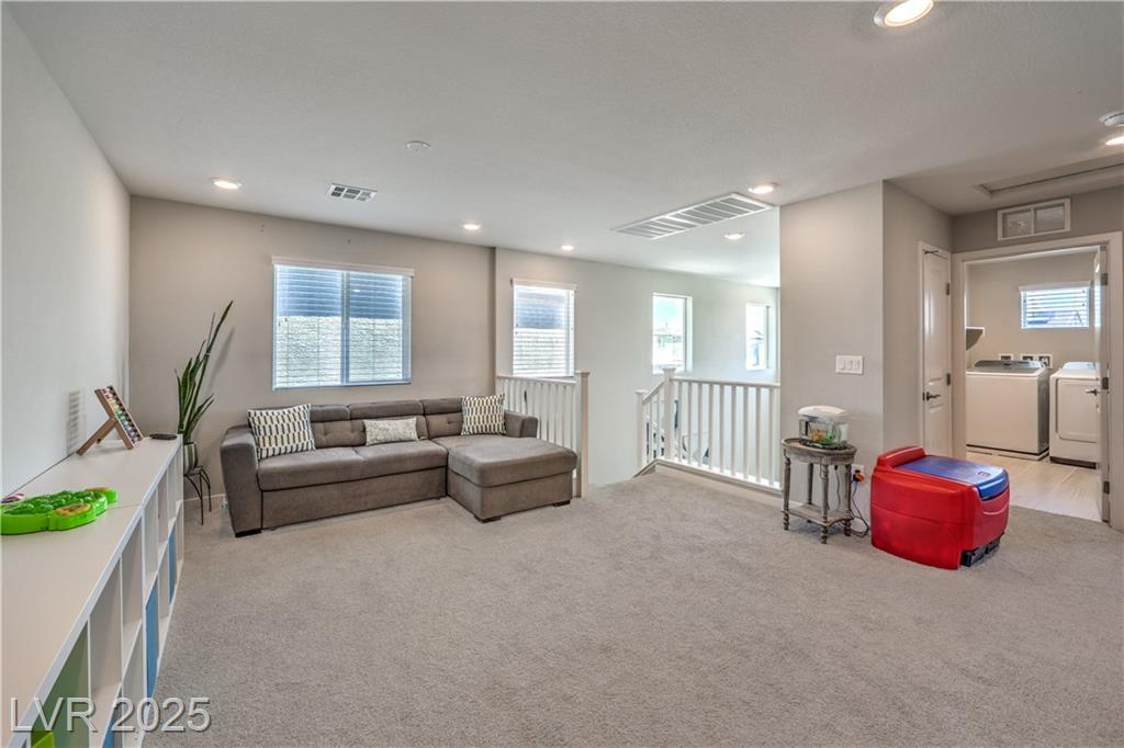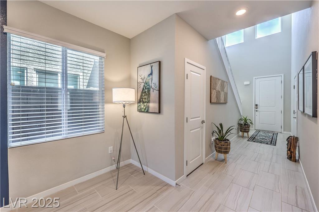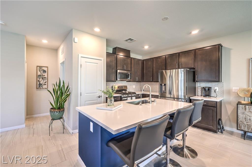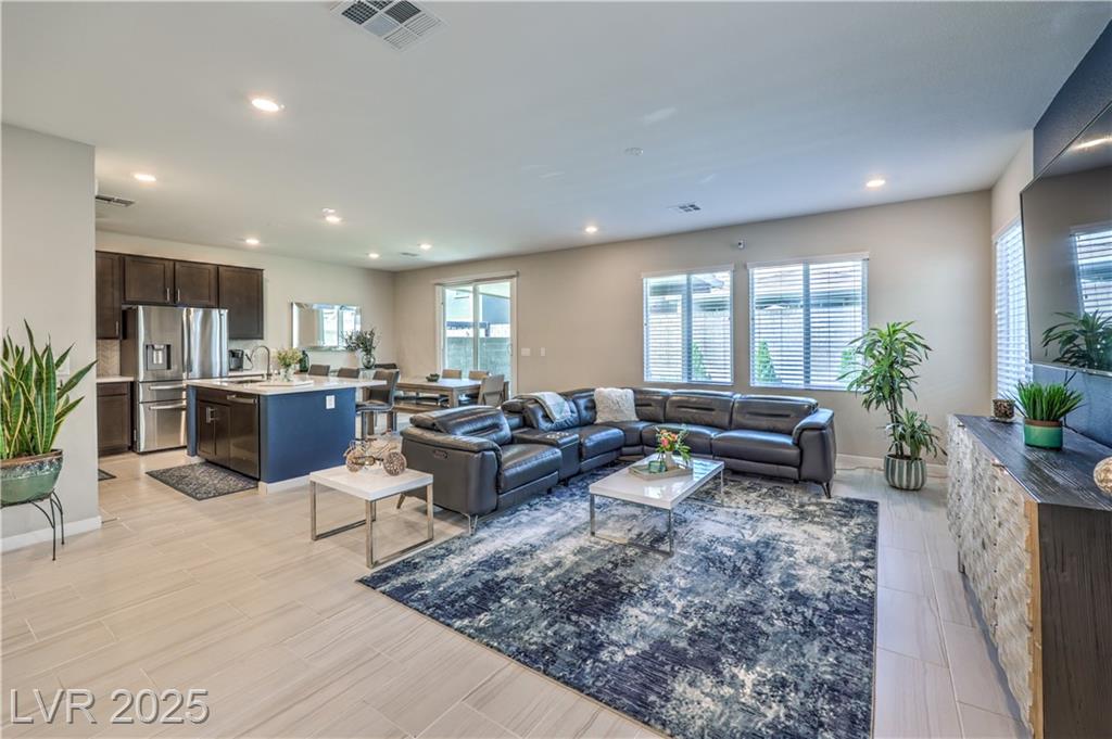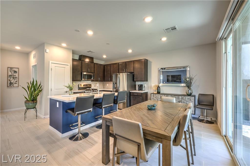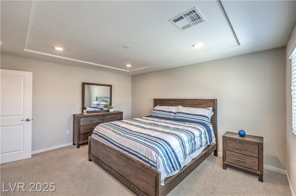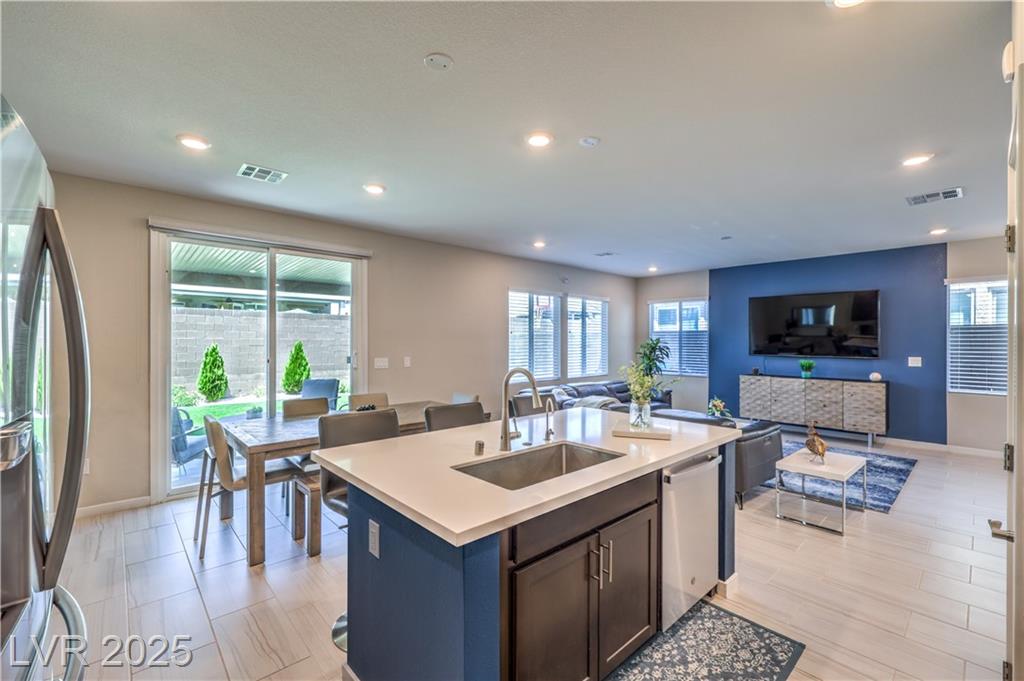 SELLERS CURRENT LOAN IS ASSUMABLE AT 3.25%. CALL AGENT WITH QUESTIONS. Gorgeous! Highly desirable turn key home! This 4 bedroom, 3 full bath, plus a spacious loft, includes a full bathroom and bedroom downstairs! Pavestone driveway and walkway, with desert landscaping. Energy efficient home with solar panels, dual pane windows, tankless water heater and alarm/camera system. Upgraded grey tile and carpet floors. Beautiful entranceway with lots of natural lighting, leading to open living space, kitchen, bedroom and full bath. Kitchen has a large island/breakfast bar, white quartz countertops, espresso cabinets, stainless steel appliances and pantry. Large laundry room upstairs. Master suite has high ceiling, walk-in-closet and dual vanity. Come outside and enjoy a beautifully done, pool size low maintenance backyard with artificial grass, pavers, plants, and covered patio. Community also has a park with playground. Minutes away from shopping, the 215, VA hospital, Nellis & Creech AFB.