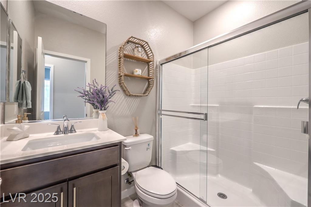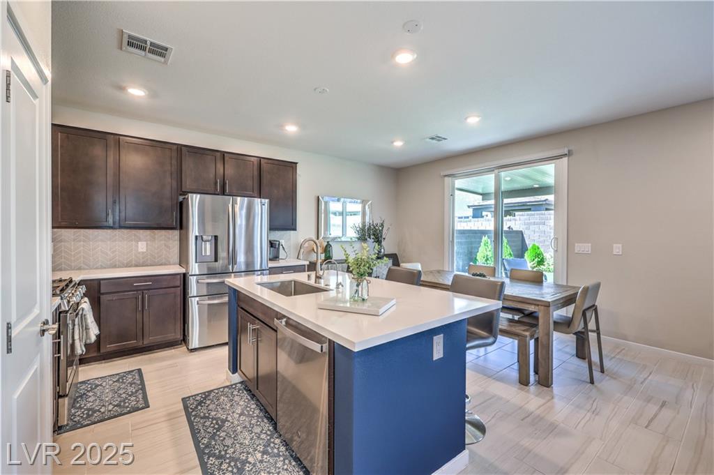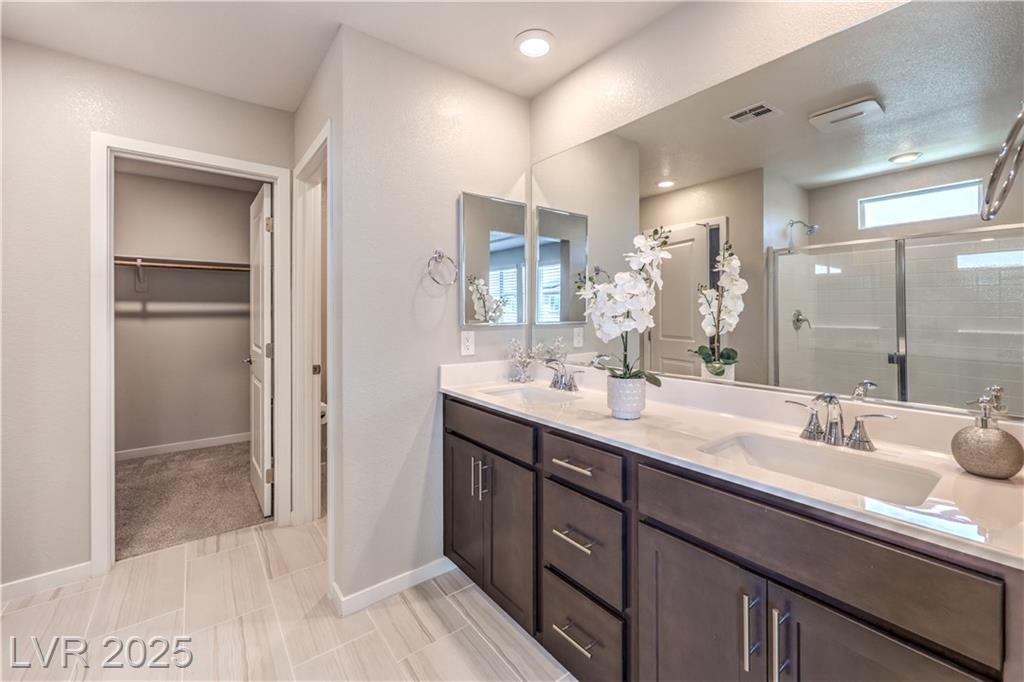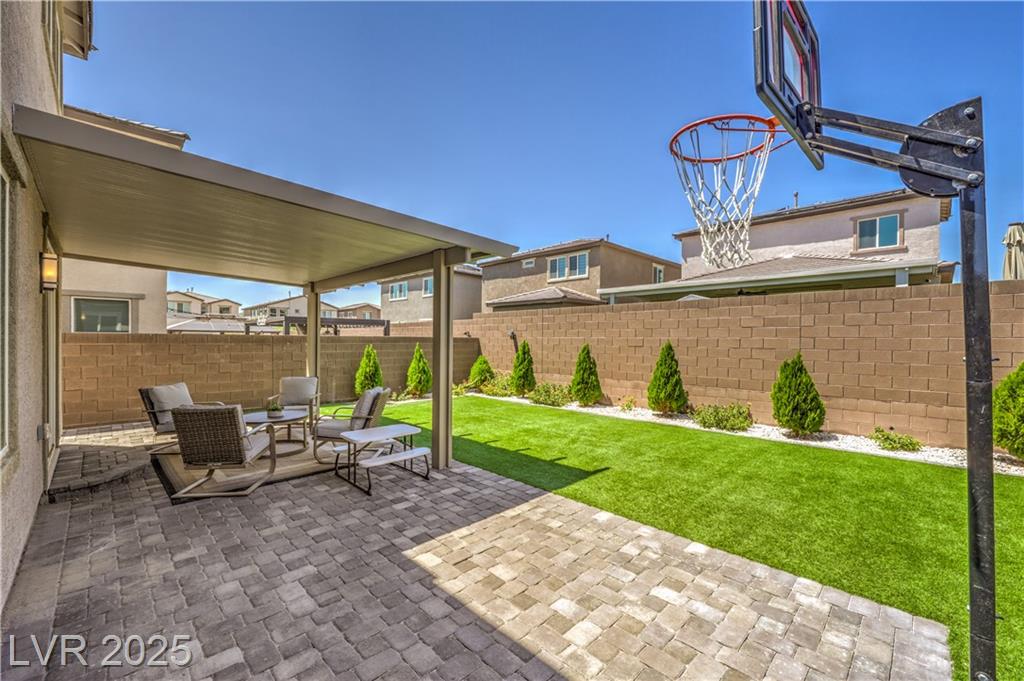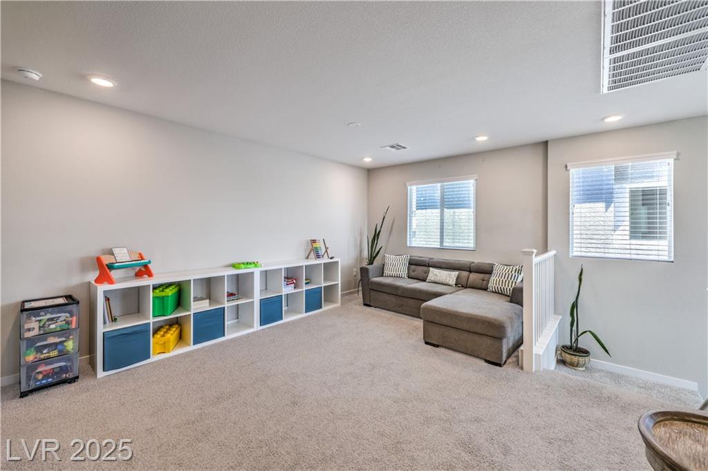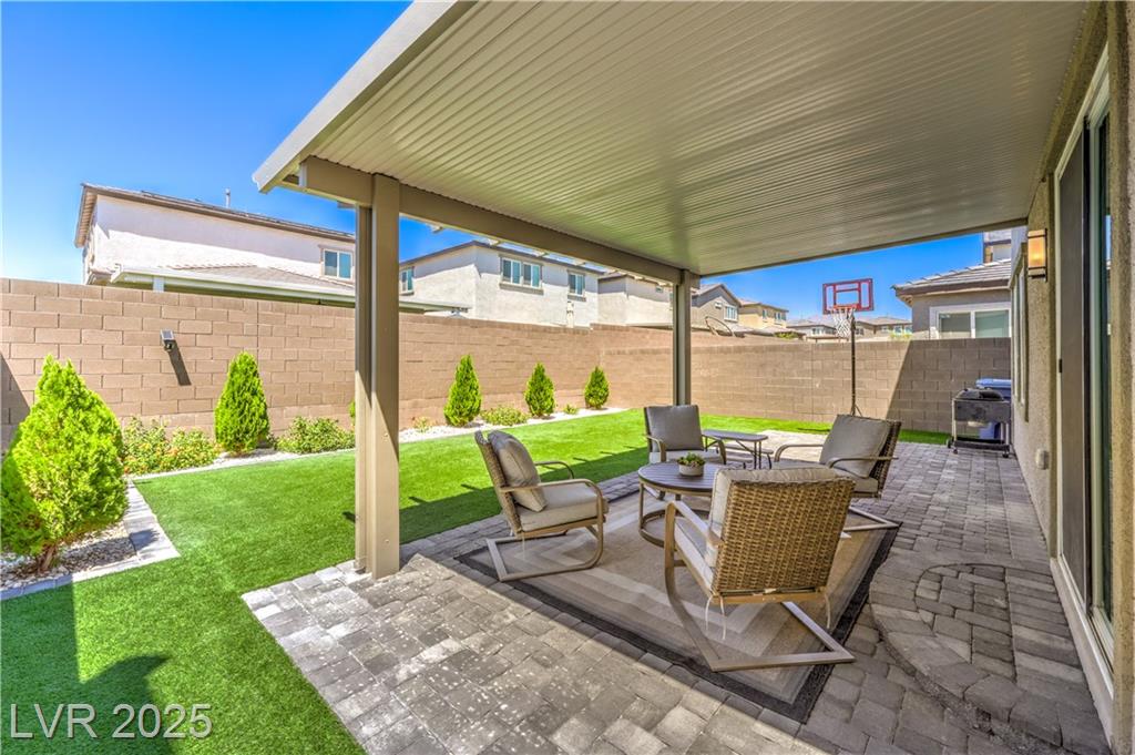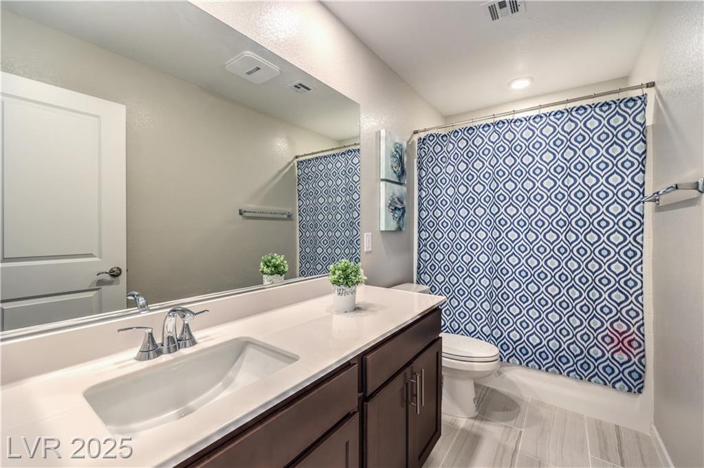 SELLERS CURRENT LOAN IS ASSUMABLE AT 3.25%. CALL AGENT WITH QUESTIONS. Gorgeous! Highly desirable turn key home! This 4 bedroom, 3 full bath, plus a spacious loft, includes a full bathroom and bedroom downstairs! Pavestone driveway and walkway, with desert landscaping. Energy efficient home with solar panels, dual pane windows, tankless water heater and alarm/camera system. Upgraded grey tile and carpet floors. Beautiful entranceway with lots of natural lighting, leading to open living space, kitchen, bedroom and full bath. Kitchen has a large island/breakfast bar, white quartz countertops, espresso cabinets, stainless steel appliances and pantry. Large laundry room upstairs. Master suite has high ceiling, walk-in-closet and dual vanity. Come outside and enjoy a beautifully done, pool size low maintenance backyard with artificial grass, pavers, plants, and covered patio. Community also has a park with playground. Minutes away from shopping, the 215, VA hospital, Nellis & Creech AFB.
