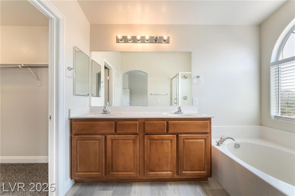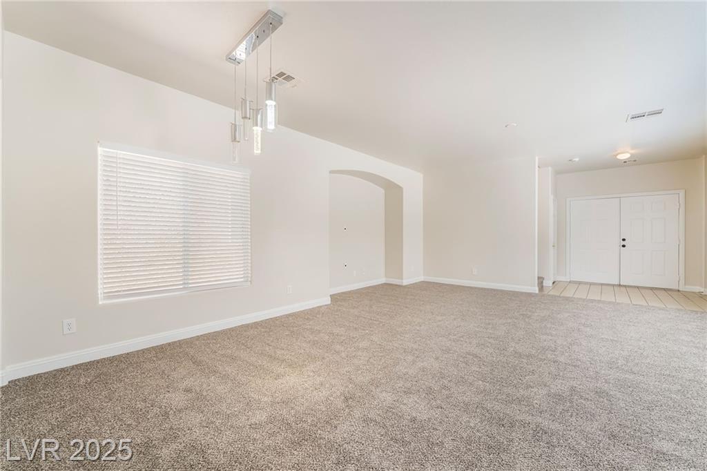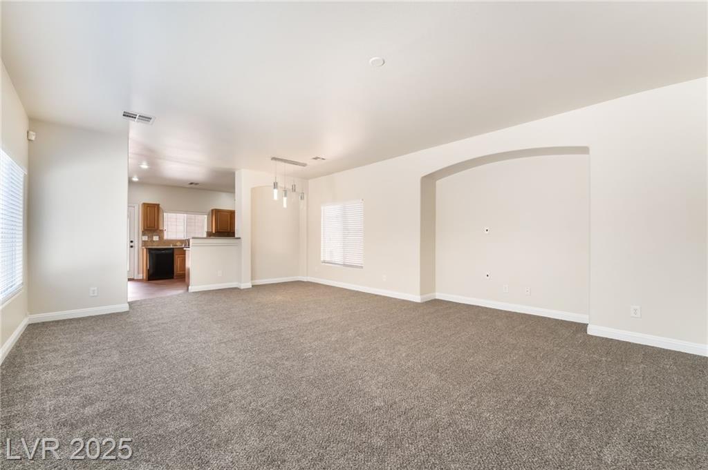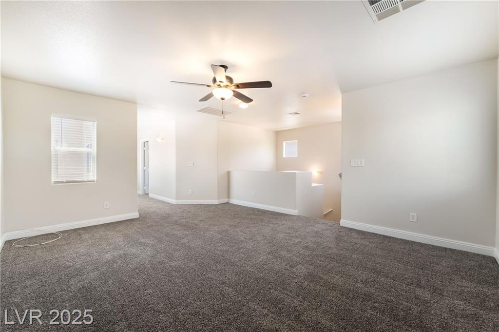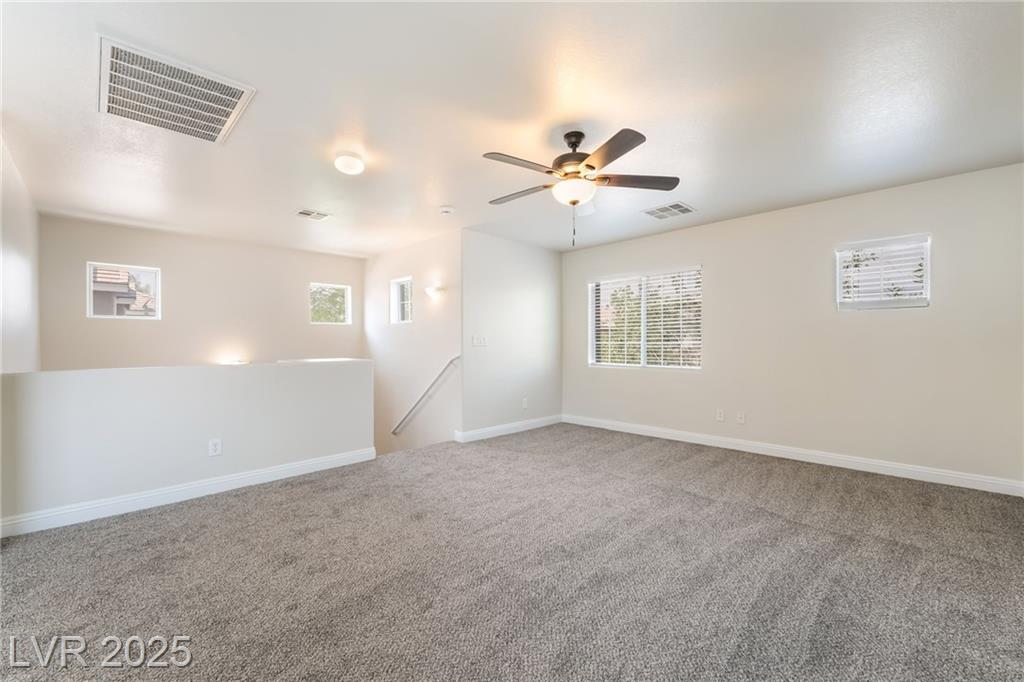 Beautiful move-in ready home in the gated Arlington Ranch community of Mountains Edge. This 3-bedroom home features a bright and open floor plan with brand new carpet and a long driveway leading to a double-door entry. The spacious kitchen boasts custom cabinets, hard surface countertops, a beautiful backsplash, and all appliances included. Enjoy the large great room filled with natural light, ceiling fans, and window blinds throughout. The generous upstairs loft is perfect for a game room or second living area. The expansive primary suite offers vaulted ceilings, a huge walk-in closet, double sinks, and a main bath with a separate tub and shower. The laundry room includes a convenient wash sink. Low-maintenance desert landscaping with brand new artificial turf. Located near top-rated schools, parks, walking trails, and shopping, with a low HOA. This turnkey home is ready for its new owners—schedule your private showing today.