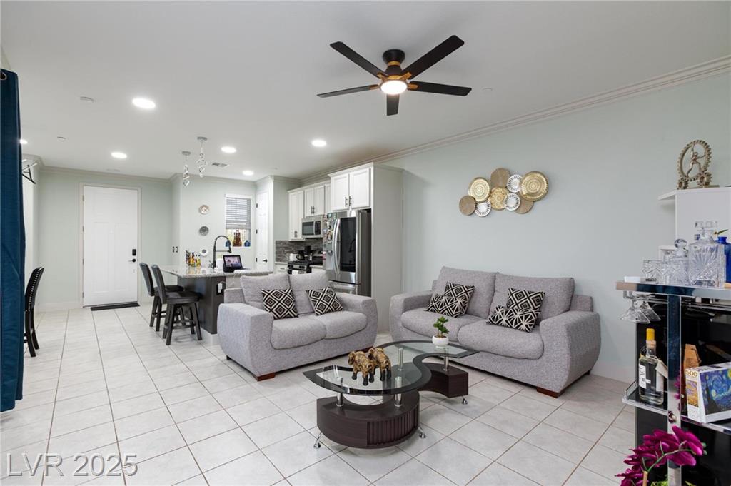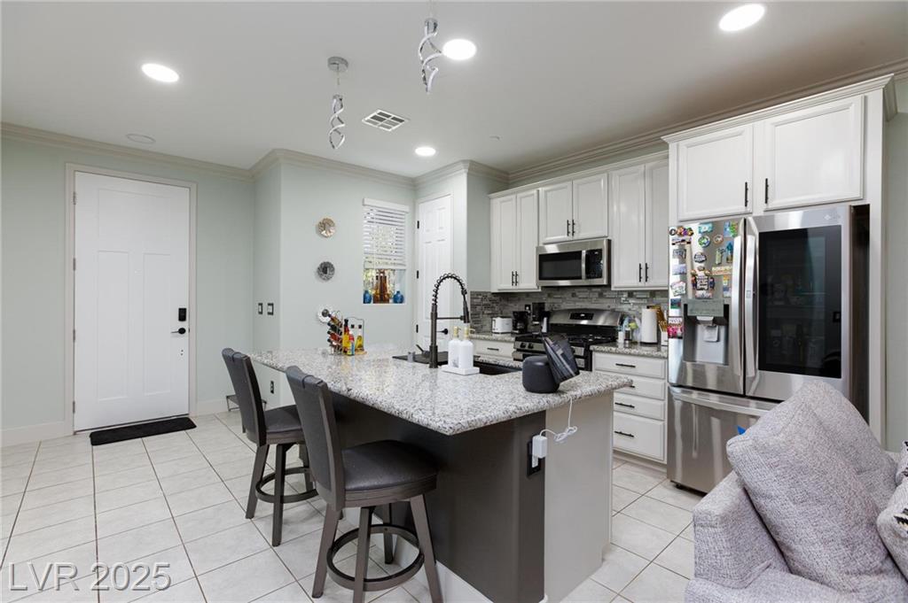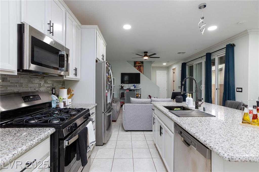 ALL FURNITURE INCLUDED! Don't miss this beautifully maintained 2-story townhome in the sought-after Cadence Community in Henderson. This fully furnished 3-bedroom, 3-bath home offers over 1,500 sqft of open living space with a modern kitchen featuring stainless steel appliances, an island with breakfast bar, and tile flooring throughout the main level. Upstairs includes all bedrooms, a full hallway bath, and a primary suite with walk-in closet and stunning views of the Las Vegas Strip. Enjoy a covered patio, dog run, and access to top-tier Cadence amenities. Conveniently located near Water Street District, Lake Las Vegas, and Lifeguard Arena. *ALL FURNITURE INCLUDED*