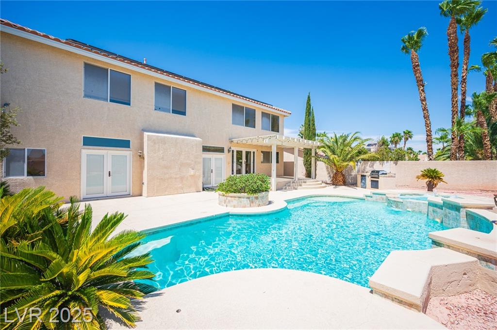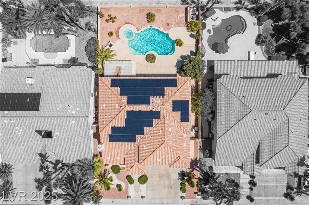 Welcome to November Breeze—A Rare Las Vegas Gem! This stunning residence offers over 5,000 sq. ft. of living space with 5 bedrooms, 5 bathrooms, a 3-car garage, and a rare fully finished basement—a feature seldom found in Las Vegas. The basement includes a spacious living area and wet room, perfect for a home theater, gym, or private guest suite.Enjoy your own backyard oasis with a sparkling pool and spa, both updated with new pumps and smart controls. Inside, you’ll find upgrades including quartz countertops, laminate flooring, a remodeled primary shower, new hot water heater, and a whole-home filtration system.A highlight of this home is the 52-panel, 19KW solar system providing an impressive ~99% energy offset year-round, blending luxury with efficiency. Located in a gated enclave of Silverado Ranch, just minutes from shopping, dining, the 215 freeway, and only 10 minutes to the airport. November Breeze truly checks every box! Book your showing today..