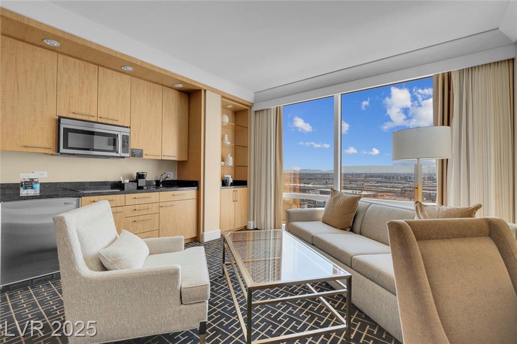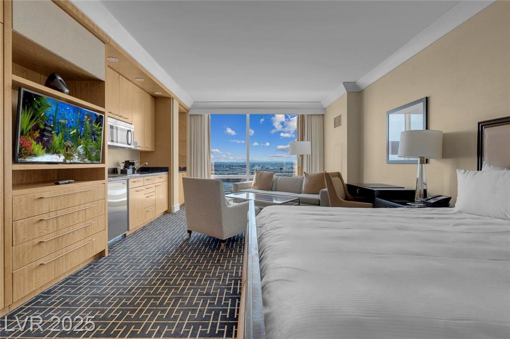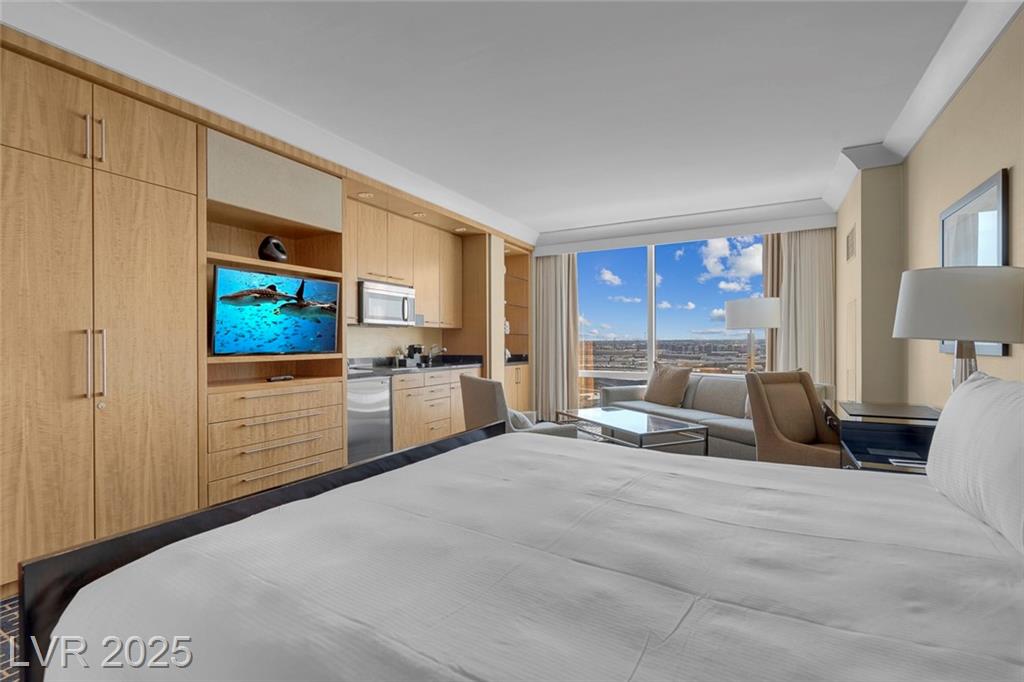 Enjoy luxurious High Rise living in Trump Towers!!! Elegant, fully furnished condo/hotel suite features Sub-Zero, Bosch + Wolf appliances, Italian marble floors, granite counters, maple cabinets, Soothing Jacuzzi tub and floor-to-ceiling glass windows. Amenities include 24-hr security, doorman, front desk Concierge, Lobby Bar, pool and spa with cabanas, state-of-the-art fitness center with Technogym equipment, world renowned spa & in-suite dining. Enjoy the sophisticated non-gaming, non-smoking atmosphere of Trump Tower, while having the casual Las Vegas experience within reach.