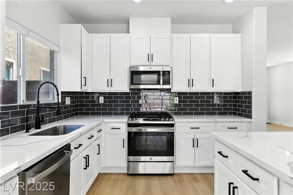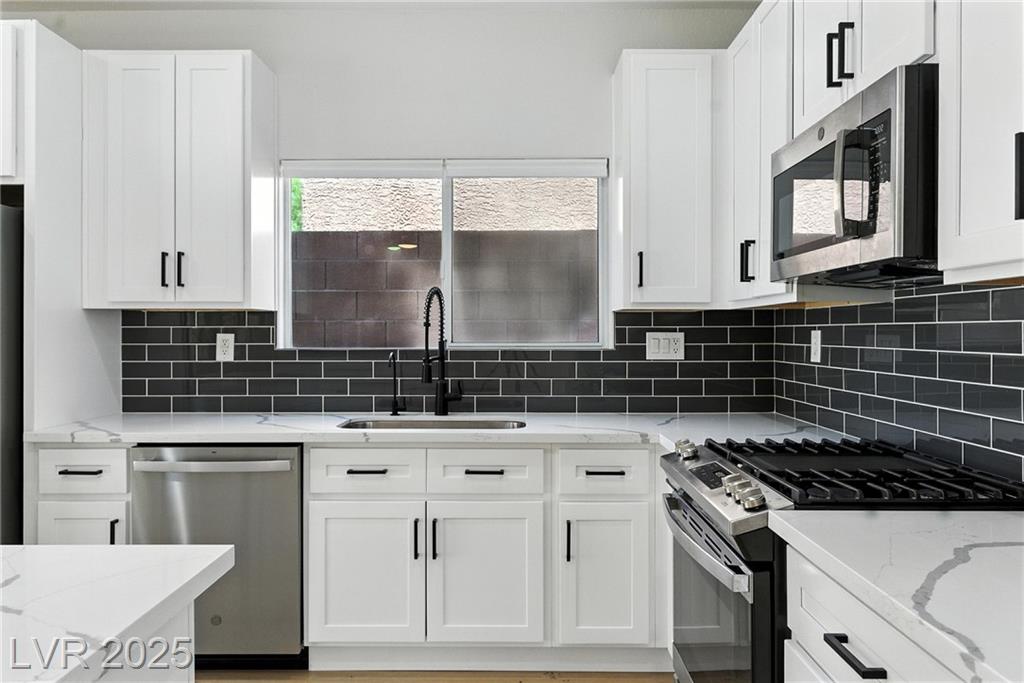 Nestled in the peaceful and highly sought-after Somerset neighborhood, this beautifully completely renovated modern farmhouse-style home offers a seamless blend of charm and contemporary design. The spacious open floor plan is complemented by neutral paint tones, creating a bright and inviting atmosphere throughout. The stunning kitchen features quartz countertops, a subway tile backsplash, center island, and RO purified drinking water at the sink—all outfitted with sleek stainless steel appliances. Window coverings and a washer/dryer are also included, making this home truly move-in ready. Perfectly located just off Charleston Blvd, west of the 215 Beltway, you’ll enjoy quick and easy access to all that Summerlin has to offer. Live just minutes from Red Rock Canyon, Red Rock Casino, Regal Cinemas, Downtown Summerlin, Costco, and some of Clark County’s finest dining, shopping, and entertainment.