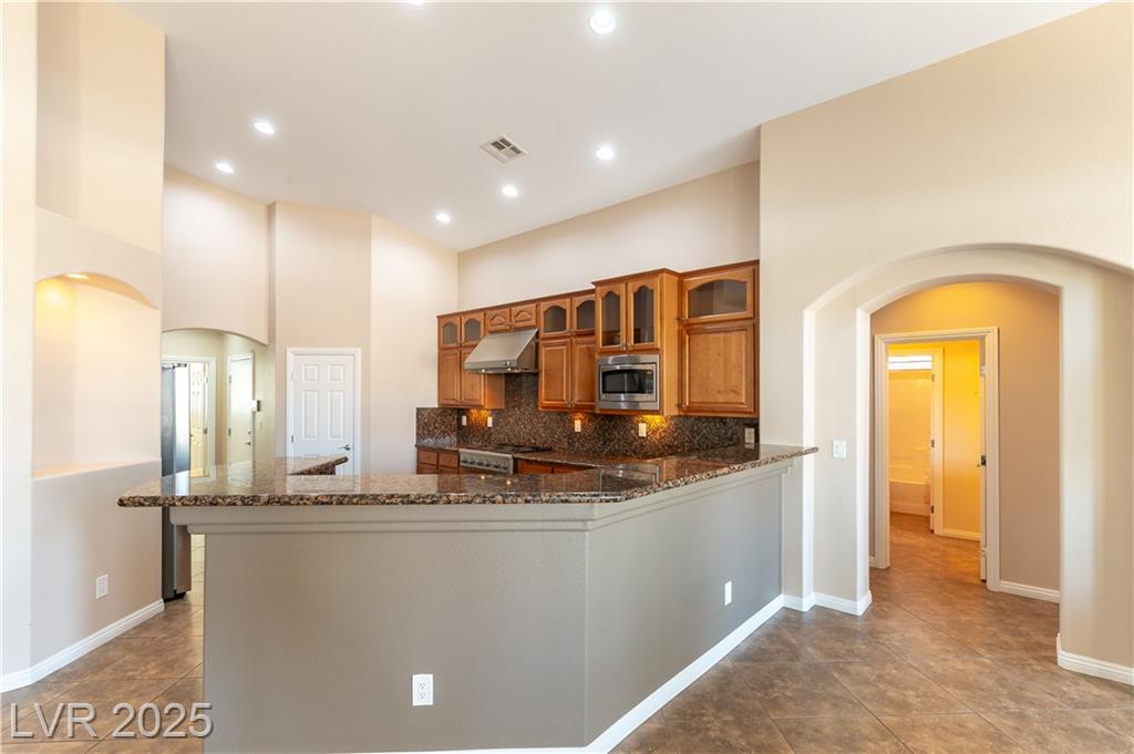 This thoughtfully designed single-story home blends comfort, convenience, and functionality throughout. With a large, open layout, it is ideal for both everyday living and entertaining. The chef’s kitchen features a 6-burner cooktop, granite countertops, double oven, walk-in pantry, and included refrigerator—perfect for preparing meals with ease & style. All bedrooms are connected to a bathroom, offering privacy for family and guests. The oversized laundry room is fully equipped with a sink, ample cabinetry, & comes with a washer and dryer. Enjoy seamless indoor-outdoor living with a large covered patio & a spacious front courtyard—ideal for gatherings or relaxation. The 3-car garage provides generous storage, & there's potential RV parking with a 13-foot wide opening to accommodate your recreational needs. Additional highlights include a Kinetico soft water system, tasteful finishes, & a functional single-level layout that prioritizes space and livability. Come see to appreciate!