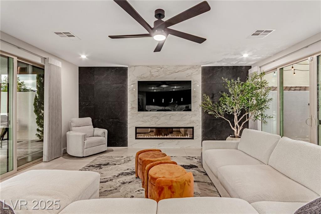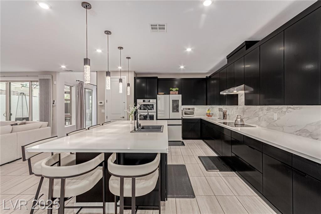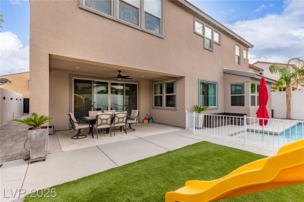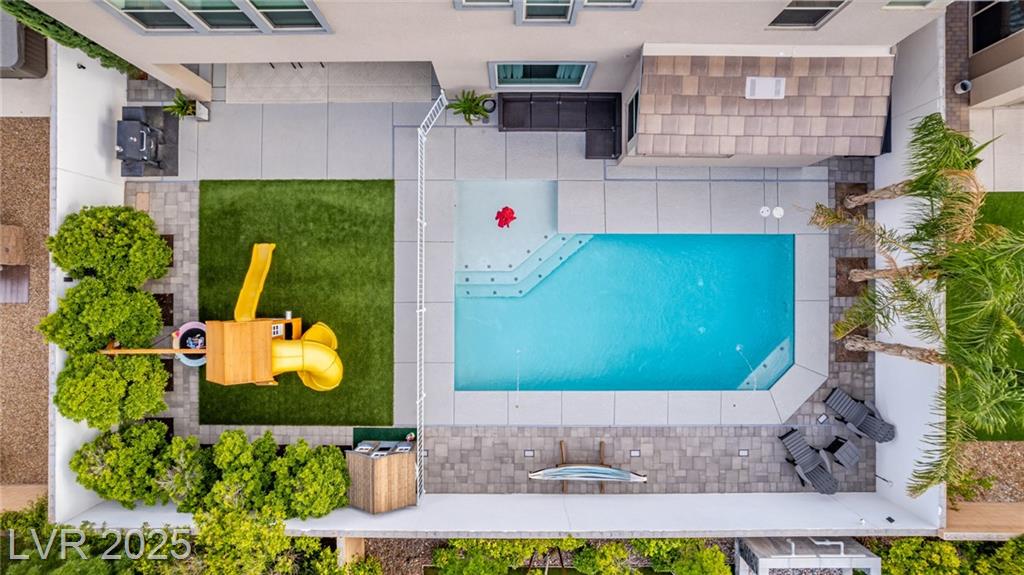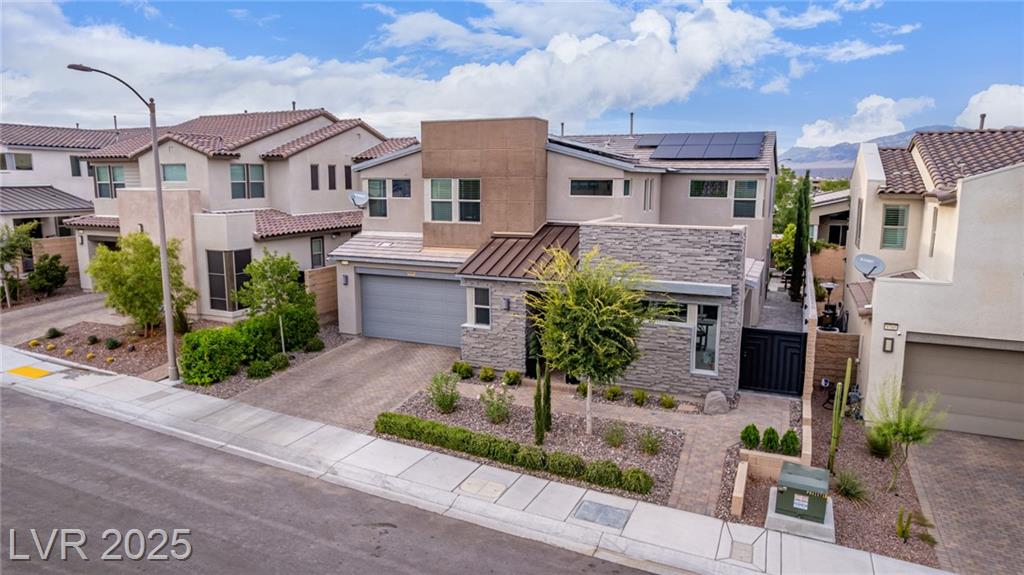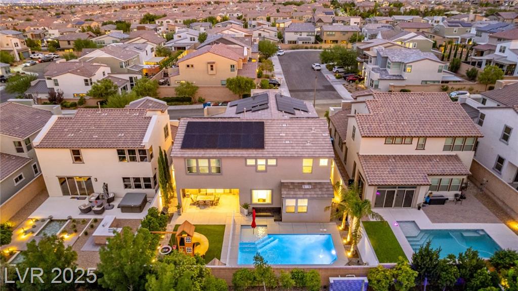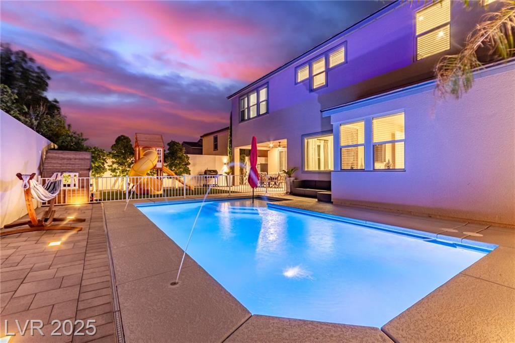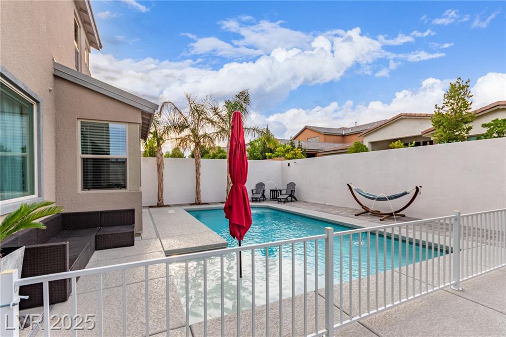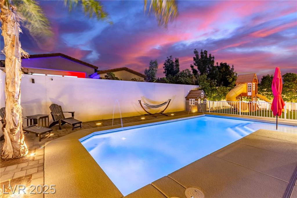 LUXURY REALLY IS ATTAINABLE UNDER ONE MILLION! DO NOT MISS THIS GORGEOUS CONTEMPORARY 5BD/4.5BA SKYE CANYON HOME WITH 3,384 SQFT, POOL, AND LUXURY FINISHES. FEATURES DUAL PRIMARY SUITES (UP & DOWN), UPSTAIRS LOFT, SLEEK TILE FLOORS, UPGRADED CABINETS, QUARTZ COUNTERTOPS & FULL BACKSPLASH, NEW SAMSUNG KITCHEN APPLIANCES INCLUDING ELECTRIC INDUCTION COOKTOP, HUGE ISLAND WITH PENDANT LIGHTING, AND CUSTOM FIXTURES. LIVING ROOM FEATURES A STUNNING FIREPLACE & TILED ENTERTAINMENT WALL. CLIMATE-CONTROLLED GARAGE WITH TESLA CAR CHARGER. BACKYARD OFFERS POOL, COVERED PATIO, GRASS AREA & CLEAN LANDSCAPING. LARGE OPEN SIDE YARD PERFECT FOR ENTERTAINING ACTIVITIES. ALL EXTERIOR WALLS FINISHED IN SMOOTH STUCCO. LOCATED WITHIN MINUTES OF THE GORGEOUS SKYE CANYON CLUB HOUSE & COMMUNITY CENTER AND SHOPPING, SCHOOLS AND PARKS... PAID OFF SOLAR... MOVE-IN READY CALL ME TODAY TO SCHEDULE A PERSONAL SHOWING.