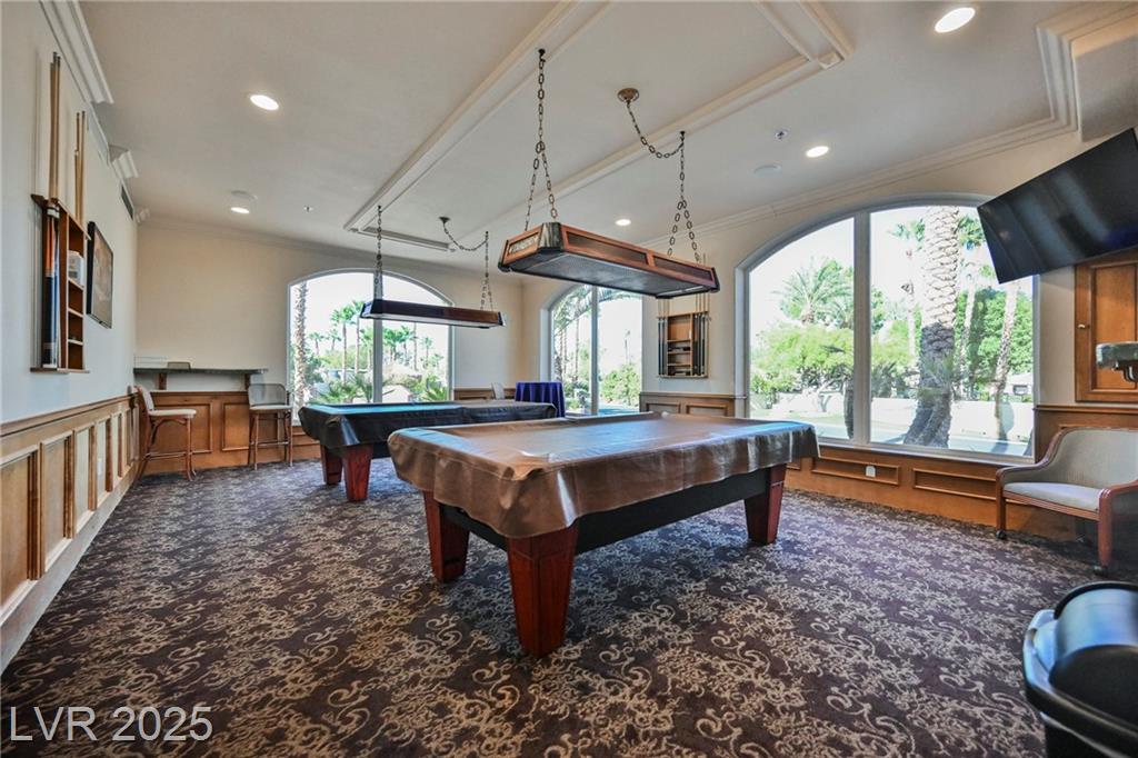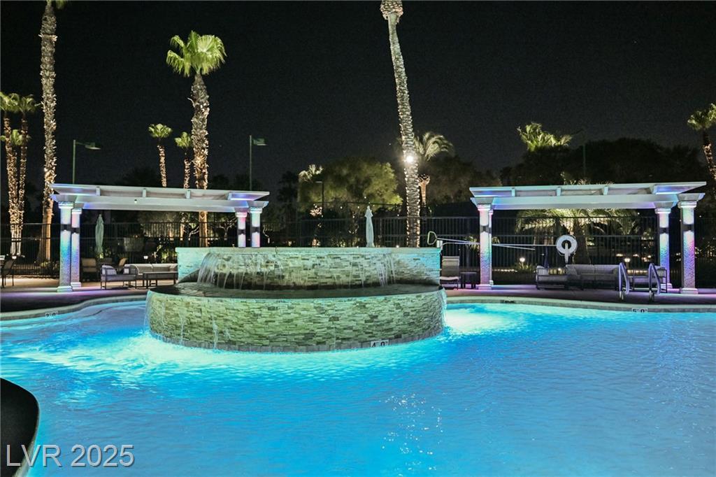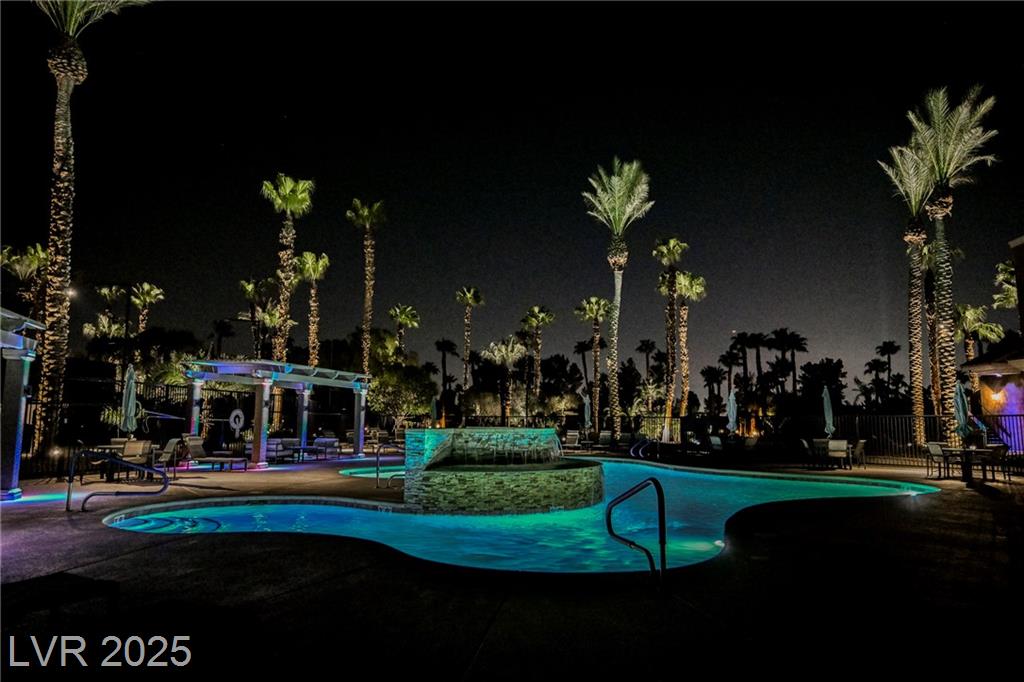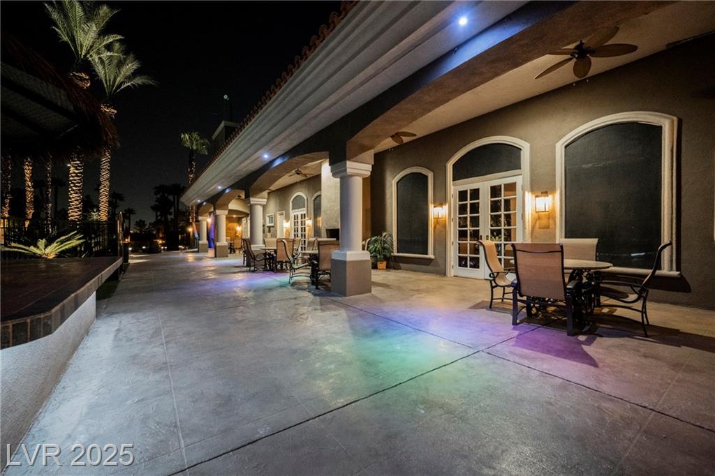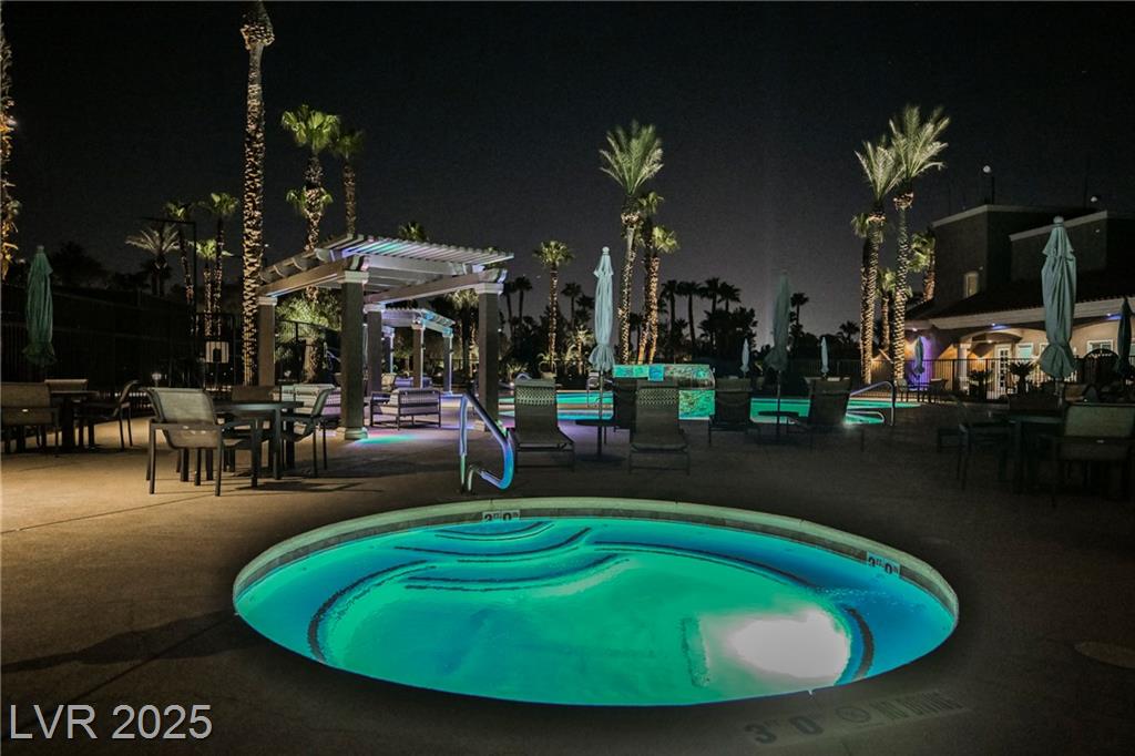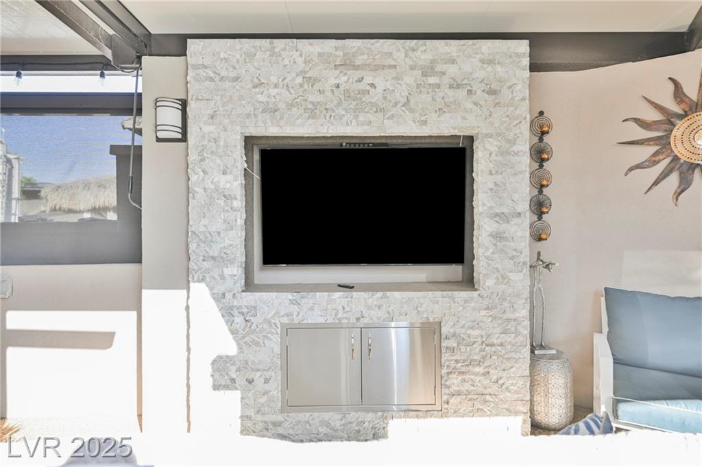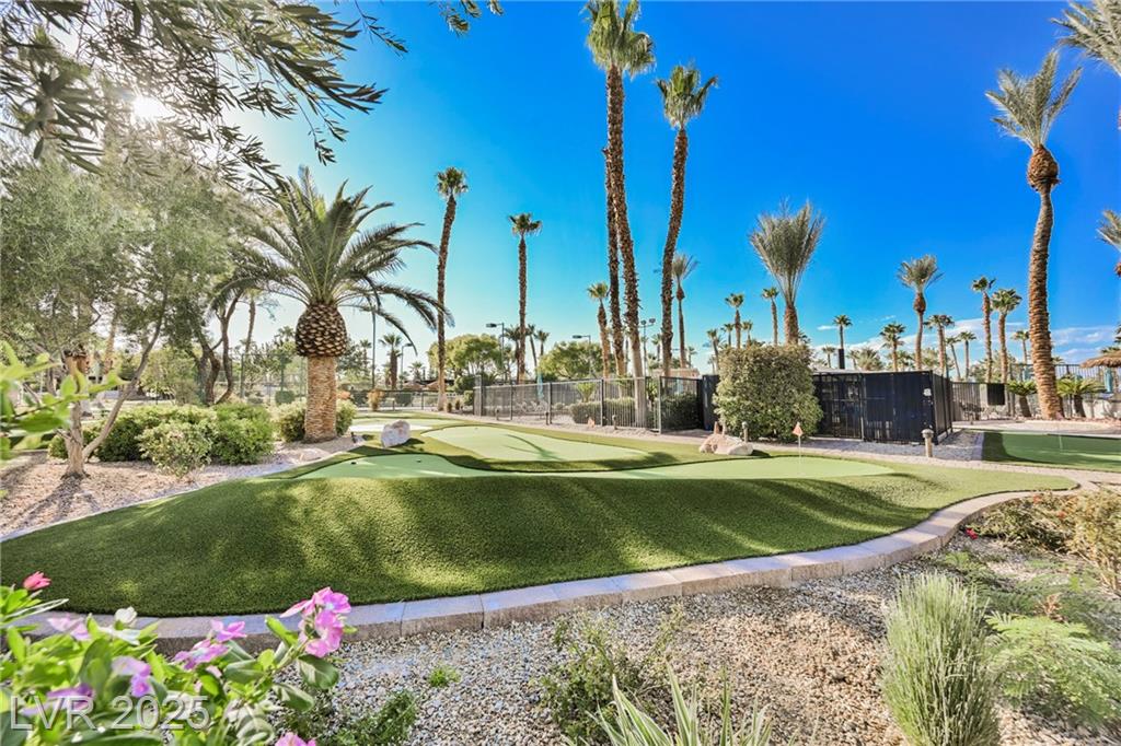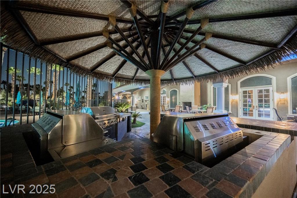Located in the 24 hour Guard Gated Las Vegas Motorcoach Resort, a Class A only facility. This private & highly sought after north facing lot boasts a Custom modern 2022 build out with a complete hard covered kitchen, living room and dining area! Also a separate building which houses a private bathroom & large storage area with full size washer and dryer. The kitchen consists of Challenger custom white cabinetry, Dekton countertops, Blaze 30"griddle and standalone Pizza/bakery oven. Living room with enclosed TV, 2nd bar also with Dekton counter and a full size refrigerator. Includes solar shades, fans, pebble stone floors in living areas and pavers on the RV Pad. LVMR Amenities include 5 pools, 6 spas, 4 laundry facilities, showers, Fitness Center and Clubhouse with owners lounge, bar ballroom, card room, theater, room pickleball, courts, putting green and much, much more!! Minutes from the famous Las Vegas strip! And conveniently located near shopping & restaurants. A MUST SEE!