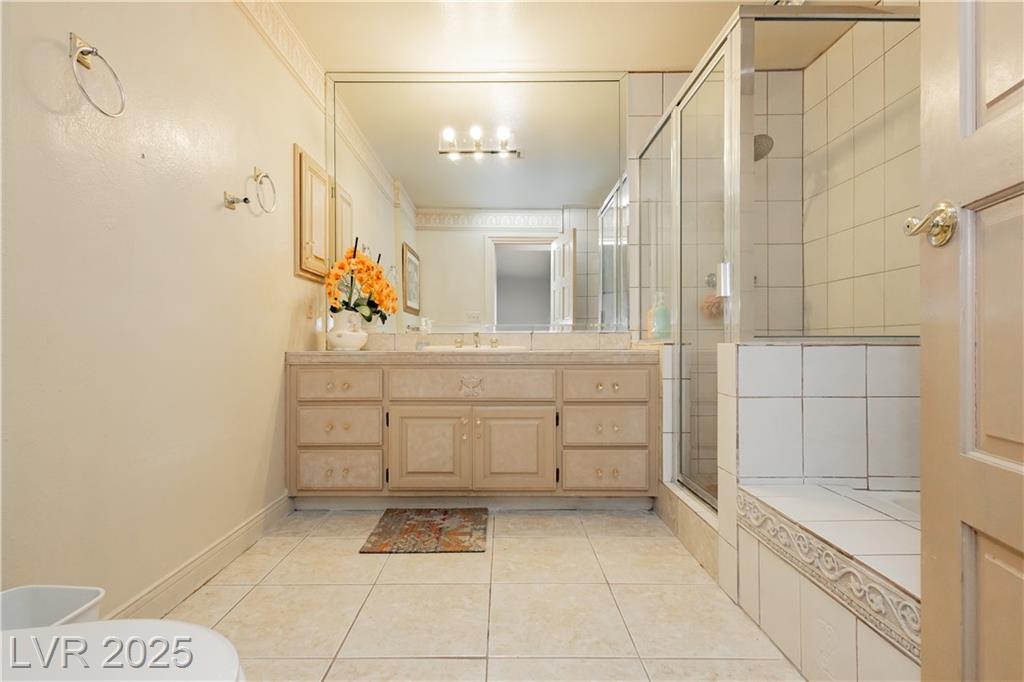 This spacious 4-bed, 3.5-bath retreat is tucked within a Las Vegas cul-de-sac in the highly desirable Section 10 area! With over 4,000 sq ft of living space, there's plenty of room to spread out and make it your own. Inside, you'll find an updated kitchen with granite countertops, modern appliances, and an electric cooktop. The rest of the home retains much its original charm, offering a great canvas for updates. Most popcorn ceilings have been removed, giving the living spaces a more current feel. The single-story layout includes a peaceful primary suite with step-up entry and a cozy sitting area—ideal for relaxing or a private workspace. Outside, enjoy a spacious yard with a pool and spa. The 2-car garage includes converted bays that can be used as additional living spaces or easily returned to parking. Located near schools, parks, transit, and shopping, this home blends comfort, convenience, and potential.