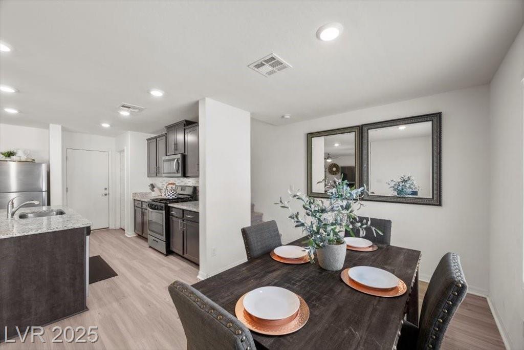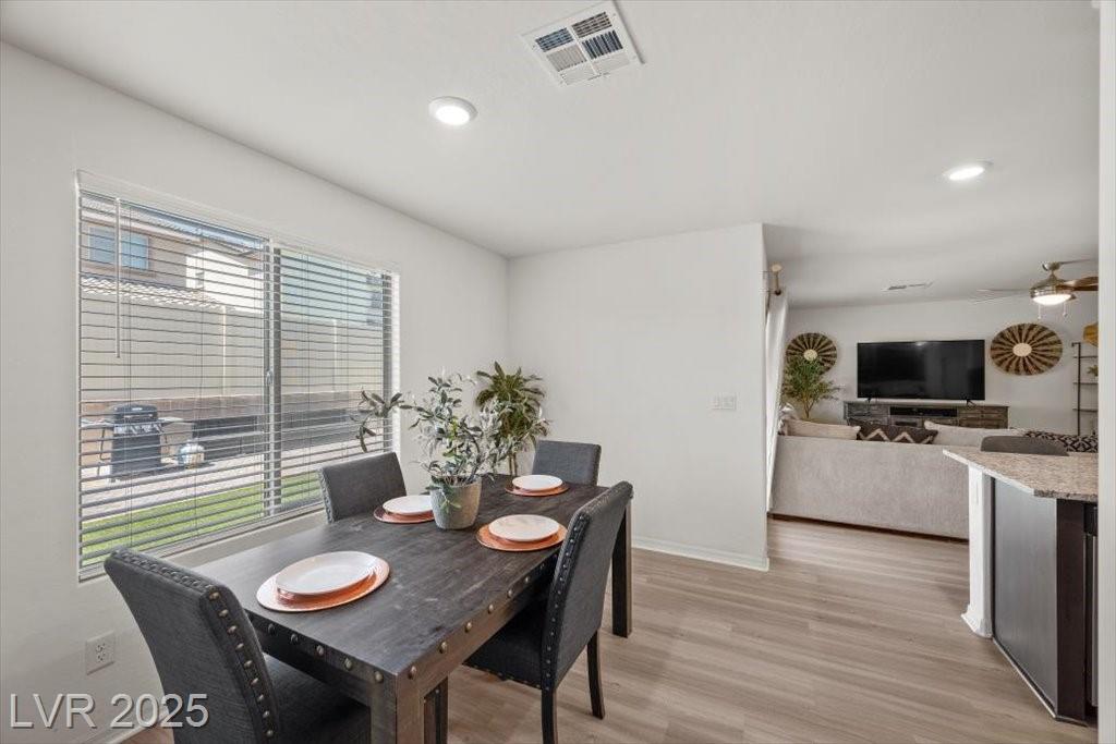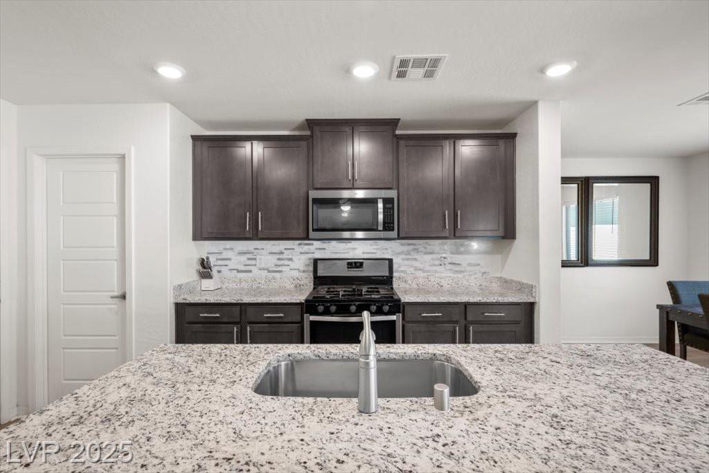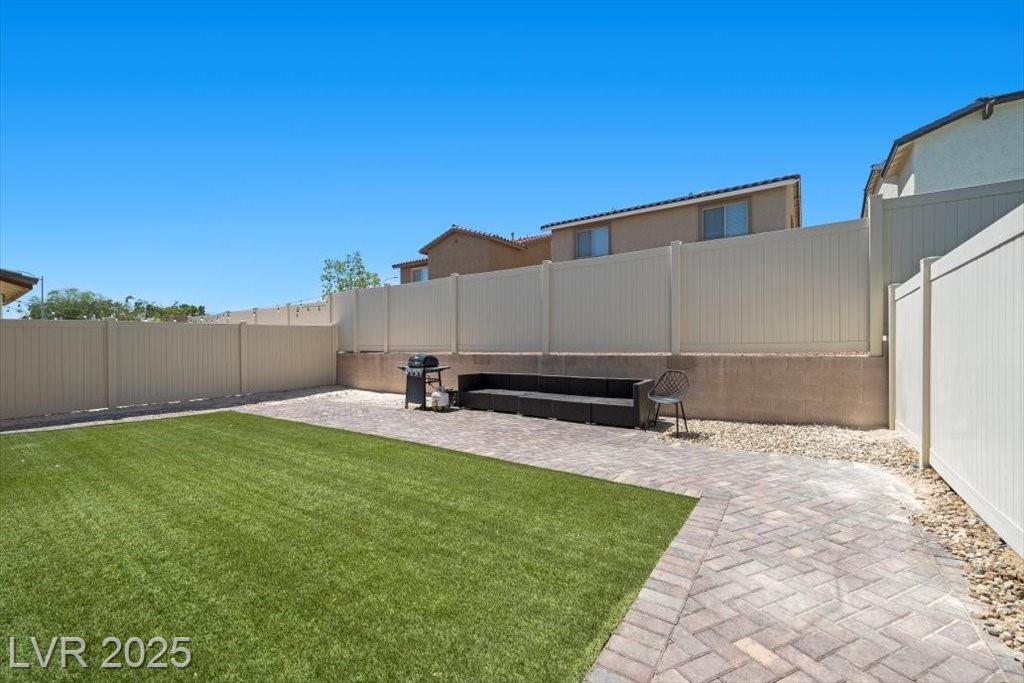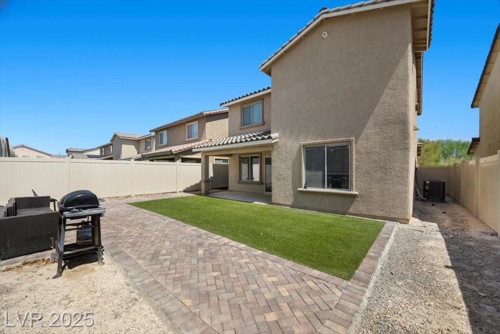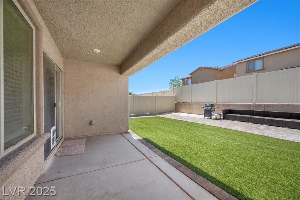 Envision yourself in this stunning, nearly-new North Las Vegas cul-de-sac beauty, where modern vibes meet cozy comfort. Walk into a wide-open living space with sleek LVP floors, fresh paint, and crisp new window coverings. The kitchen’s a total showstopper—think granite countertops, tall 42" cabinets, a fresh backsplash, and a large island that seats four, complete with a convenient, single basin sink and upgraded faucet. Upstairs, you’ve got roomy secondary bedrooms and a primary closet so huge it’ll blow your mind. The backyard? Low-maintenance perfection with a covered patio, artificial turf, and modern pavers—great for relaxing or entertaining. The garage has fresh epoxy flooring. This place is move-in ready, packed with upgrades, and sitting pretty in a lively neighborhood close to restaurants and grocery. Plus, this seller is willing to help out with your closing costs! Come check it out and fall in love!
