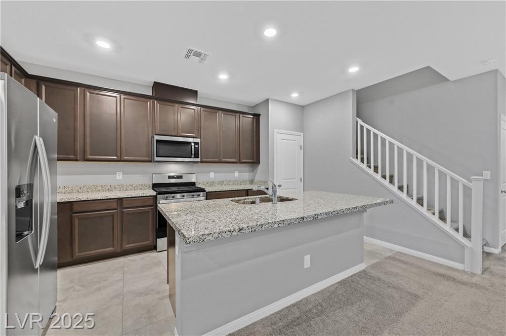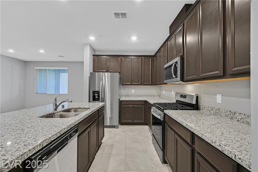Stunning townhome nestled in the desirable Ascent community of Summerlin. This two-story residence offers 3 spacious bedrooms and 2.5 baths, featuring a modern kitchen with stainless steel appliances and sleek quartz countertops. The primary suite includes dual sinks and an oversized walk-in shower for added comfort. Appliances and window blinds will be installed prior to move-in. Enjoy direct access to a scenic walking trail leading to the highly anticipated Red Point Square park, which will offer sweeping views of the Las Vegas Valley. Conveniently located near Downtown Summerlin, top-tier dining, shopping, and quick access to the 215 Beltway.