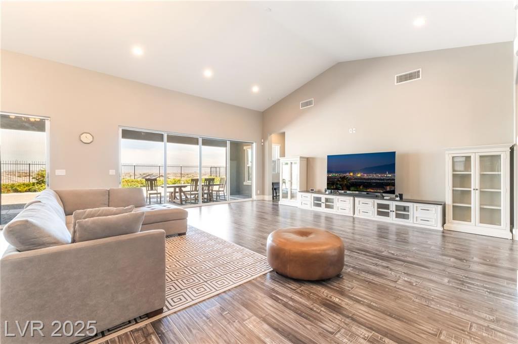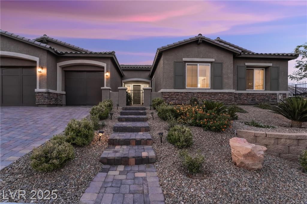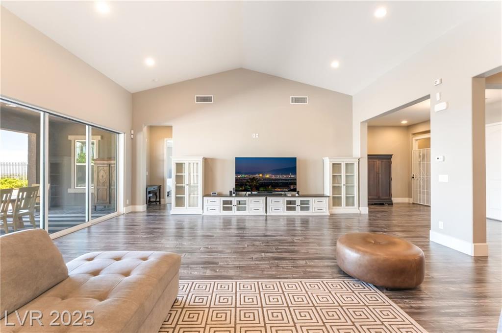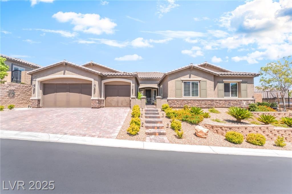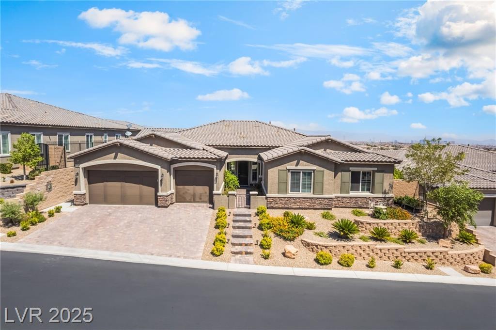 Welcome to Your Paradise! This stunning Rocco model home by Richmond American Homes, built in 2017, offers luxury living at its finest. Step through the gated courtyard entrance into an expansive great room featuring vaulted shiplap ceilings that create a warm and inviting centerpiece. From the foyer, your eyes are drawn through the two multi-slide doors to the resort-style backyard with city and amazing strip view. The luxurious primary suite features dual custom closets. The en-suite bathroom includes a spa-like walk-in shower. Additional highlights include: Oversized 3-car garage, Two motorized garage storage lifts, Garage service door, TESLA EV charger.