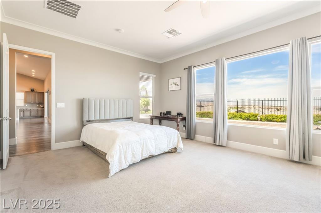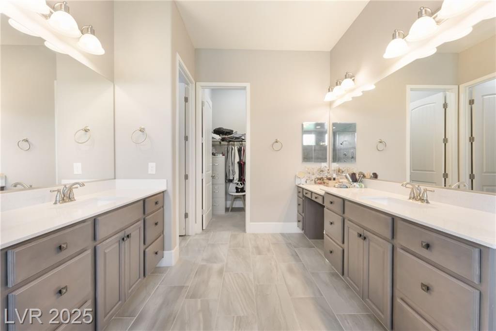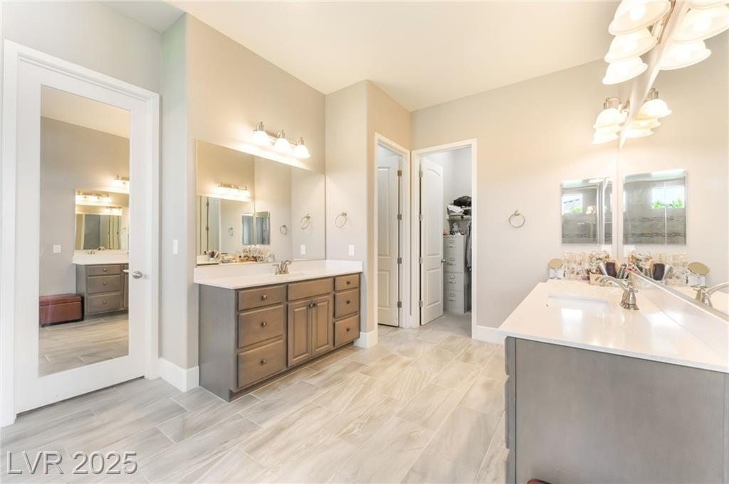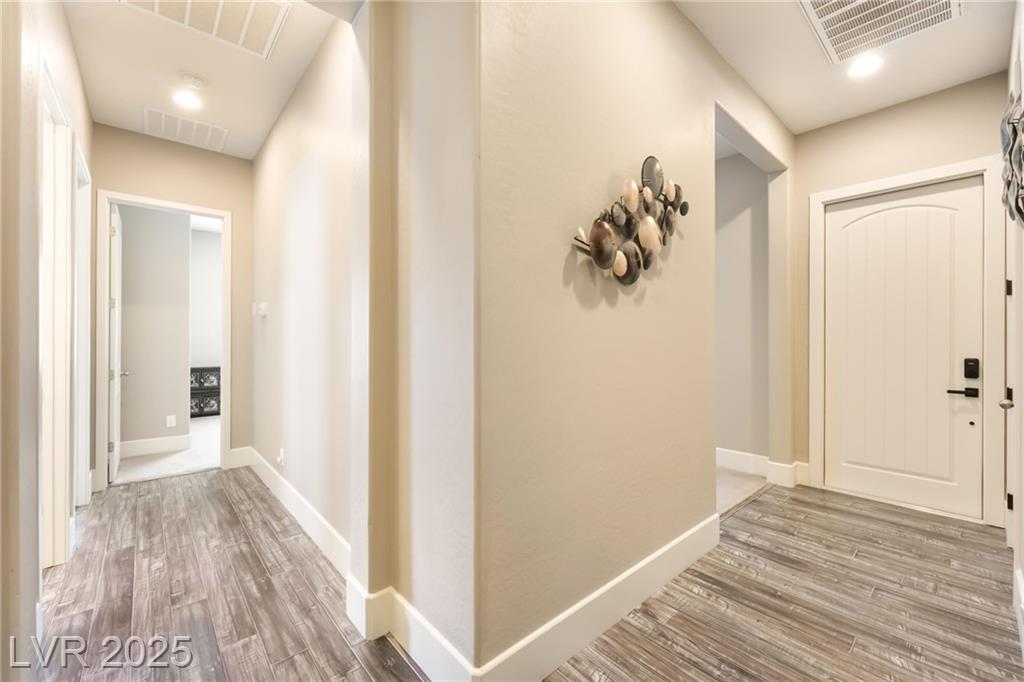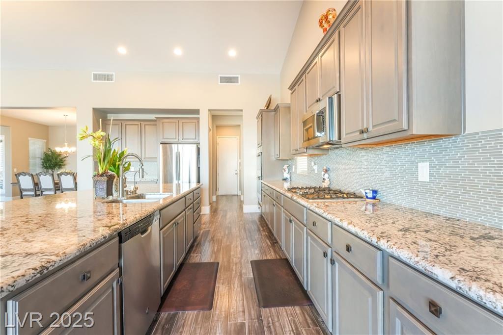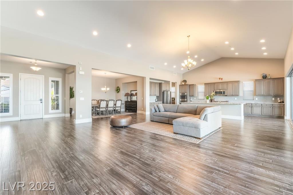 Welcome to Your Paradise! This stunning Rocco model home by Richmond American Homes, built in 2017, offers luxury living at its finest. Step through the gated courtyard entrance into an expansive great room featuring vaulted shiplap ceilings that create a warm and inviting centerpiece. From the foyer, your eyes are drawn through the two multi-slide doors to the resort-style backyard with city and amazing strip view. The luxurious primary suite features dual custom closets. The en-suite bathroom includes a spa-like walk-in shower. Additional highlights include: Oversized 3-car garage, Two motorized garage storage lifts, Garage service door, TESLA EV charger.