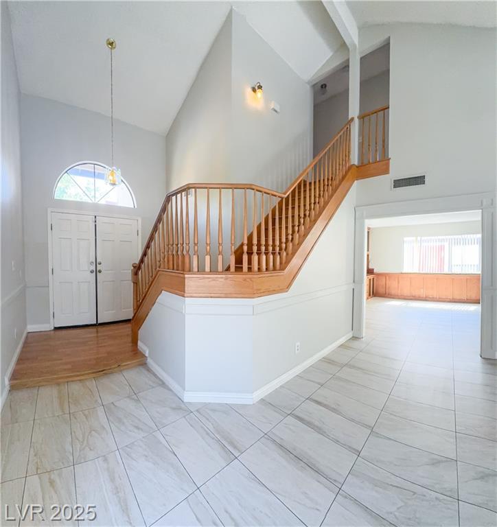 New A/C replaced in 2022, New piping for all bathrooms and kitchen, A new toilet downstairs replaced. Charming Two-Story Home in the Heart of Las Vegas! This 1,840 sq ft, 4 bedrooms and 2.5 bathrooms home offers a perfect blend of comfort and functionality with a spacious open floor plan, ideal for both everyday living and entertaining. Step into a bright living area with vaulted ceilings, tile and laminate flooring throughout (no carpet!), and a cozy fireplace for relaxing evenings. The kitchen features ample cabinetry. The primary bedroom boasts an ensuite bath with dual sinks and a walk-in closet. Outside, enjoy a low-maintenance backyard — perfect for gatherings or a peaceful morning coffee. The property sits on a 3,920 sq ft lot.
