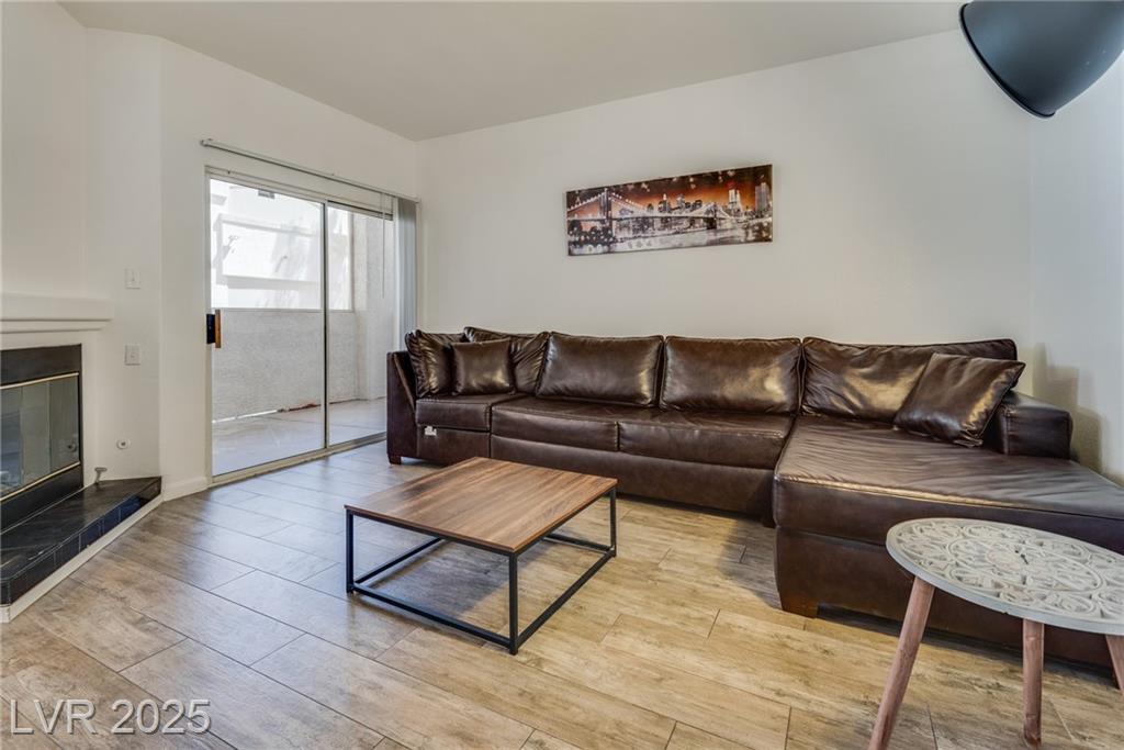 Beautifully maintained 2-bedroom, 2-bath condo with a desirable dual-master layout. Features include an open kitchen with granite countertops, stainless steel appliances, and a large pantry/laundry room. The spacious great room offers a cozy fireplace and access to a screened-in balcony with storage. Upgrades include wood-look tile flooring throughout, a primary suite with walk-in closet and patio access, plus a detached one-car garage. Community amenities include a pool & spa, clubhouse with gym, and mature landscaping. Conveniently located just 5 minutes from the airport, shopping, dining, and parks. Move-in ready.