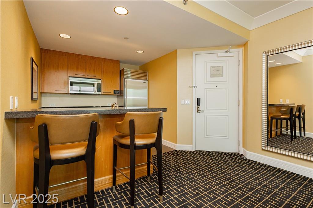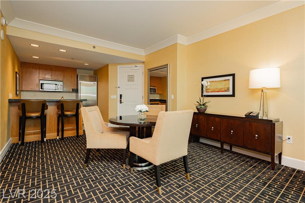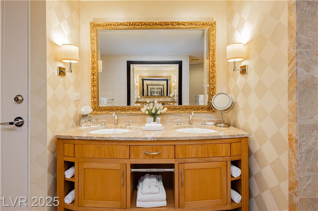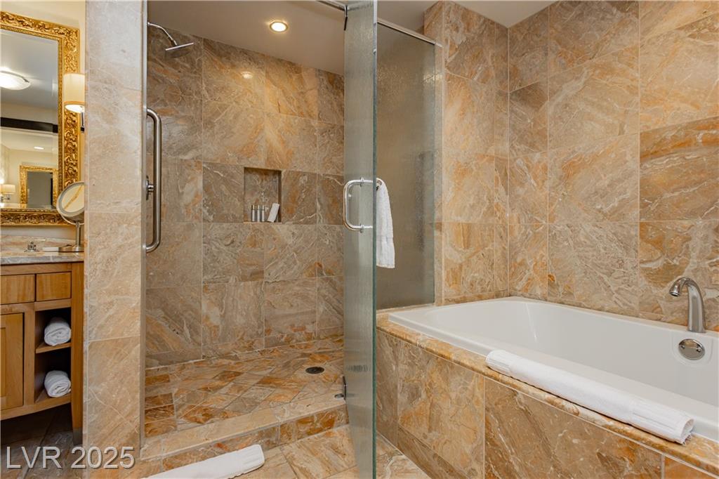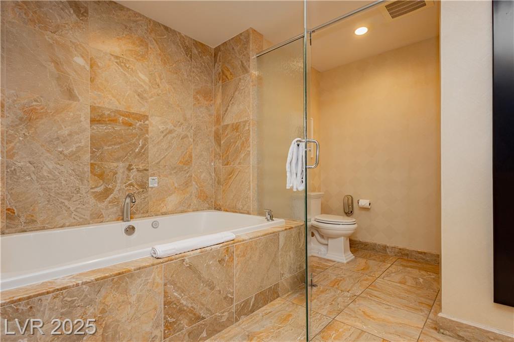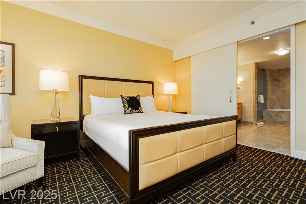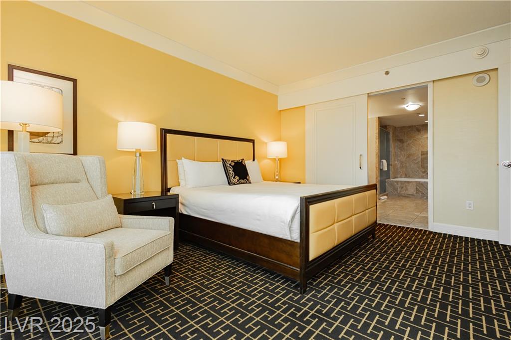 Experience unparalleled luxury and breathtaking views from this 910 square-foot condominium in the renowned Trump Las Vegas Residences. Floor-to-ceiling windows display captivating panoramic vistas of the Las Vegas Strip, including the iconic Sphere and shimmering city skyline. This sophisticated 1-bedroom, 2-bathroom residence boasts an impeccably designed gourmet kitchen, featuring top-of-the-line appliances, ideal for the discerning chef. Unwind and rejuvenate in the primary bathroom, a tranquil oasis with elegant marble flooring and countertops, dual vanities, and a luxurious six-foot soaking tub. Indulge in a world of refined opulence, quality, and comfort in this remarkable Las Vegas home.