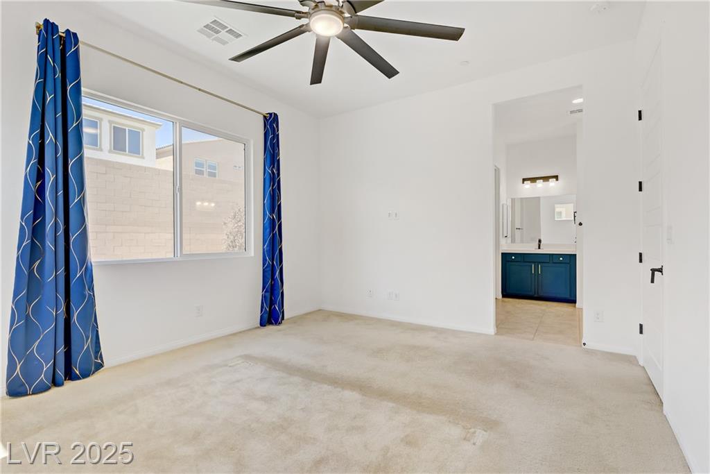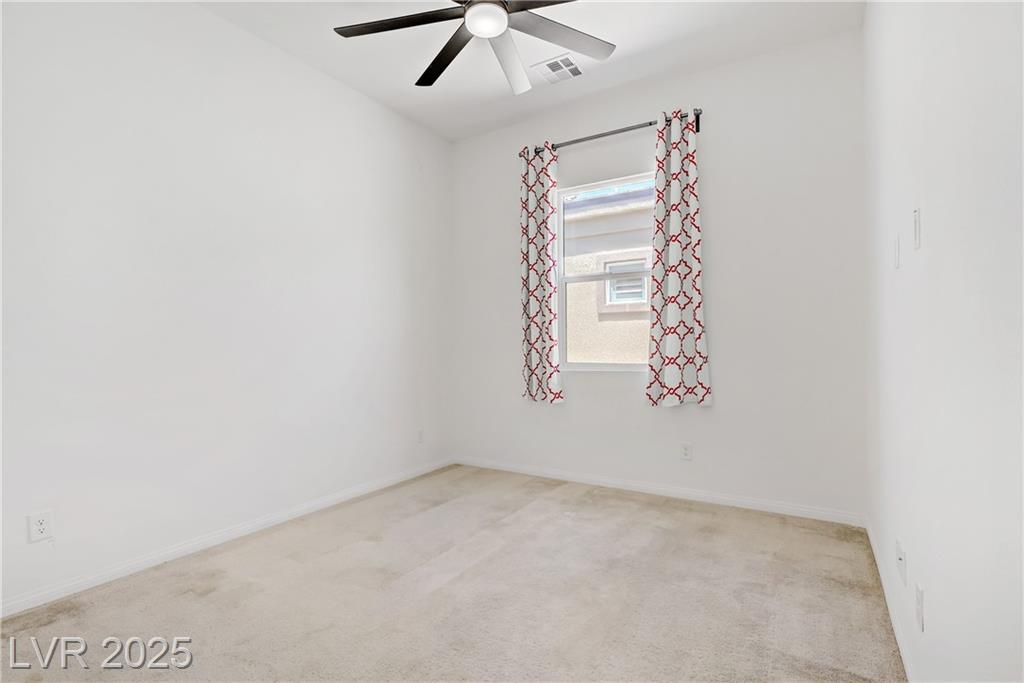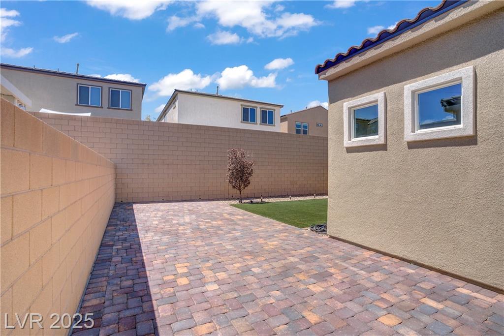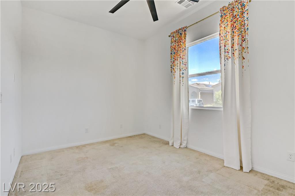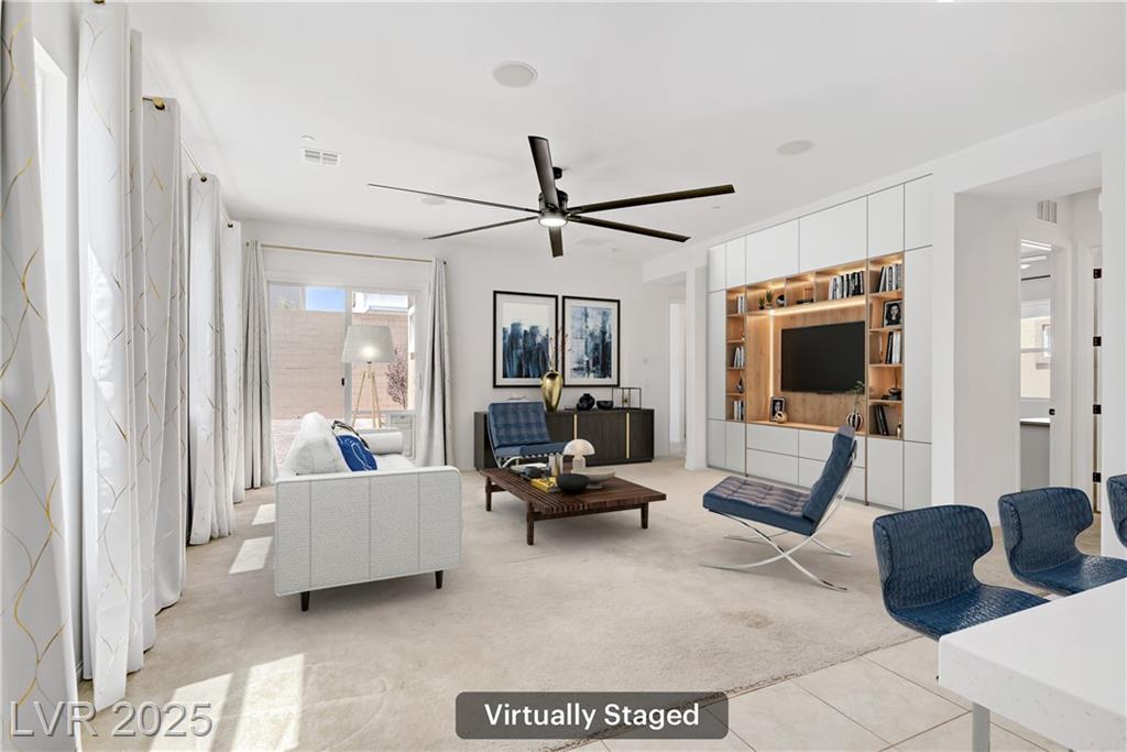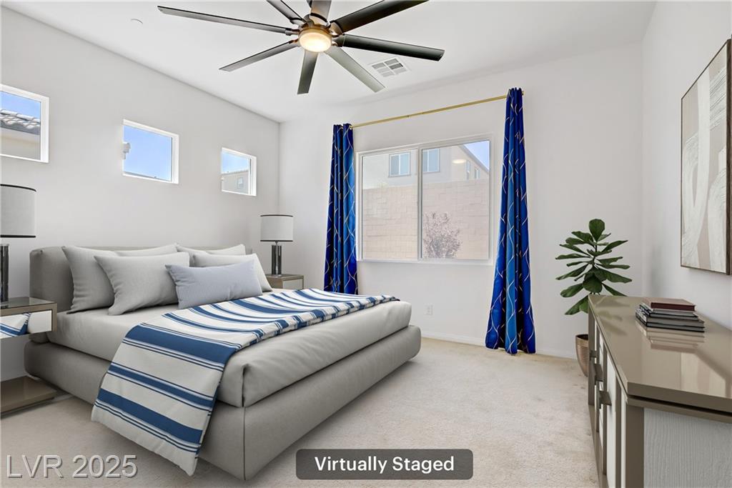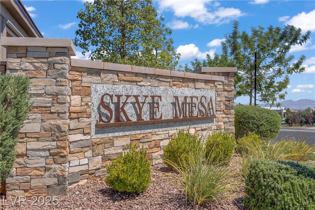 Welcome to this beautiful single-story home tucked inside the gated community of Skye Mesa, perfectly located across from the Skye Canyon Community Center. With brand new carpeting throughout, this 3-bedroom plus den/office offers flexible living—just add a door to convert the den into a 4th bedroom. Bright and airy with tons of natural light thanks to the thoughtful window placement throughout the home. The upgraded kitchen features extended ceiling-height cabinets with crown molding, stylish hardware, and modern appliances. The living room is wired with built-in surround sound speakers to make your movie nights even more phenomenal. Upgraded ceiling fans throughout help keep this already energy-efficient home extra comfortable. The fully finished backyard is private, low-maintenance, and ready for you to enjoy—or add your own personal touch.