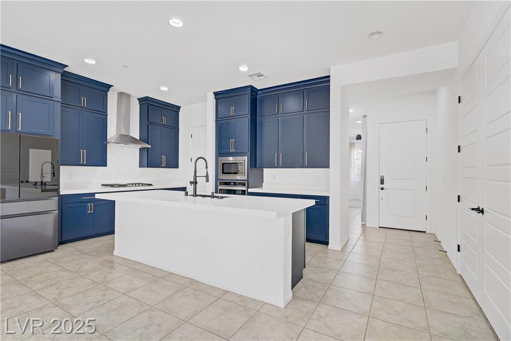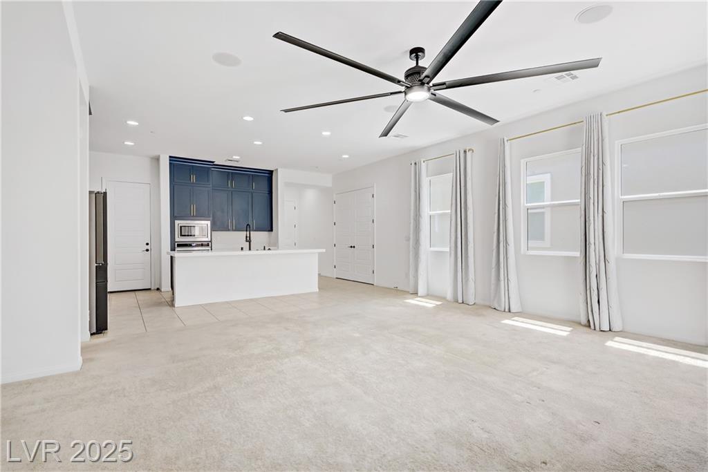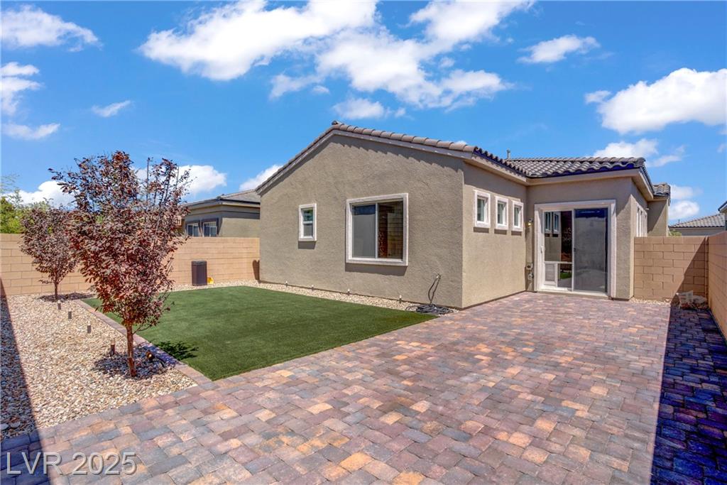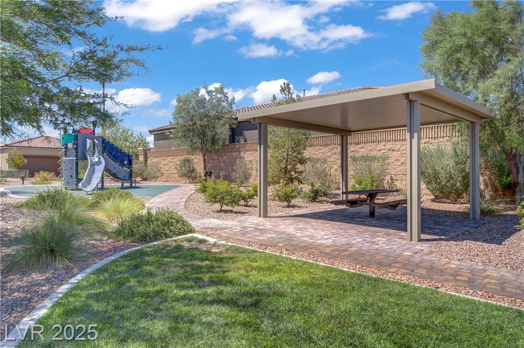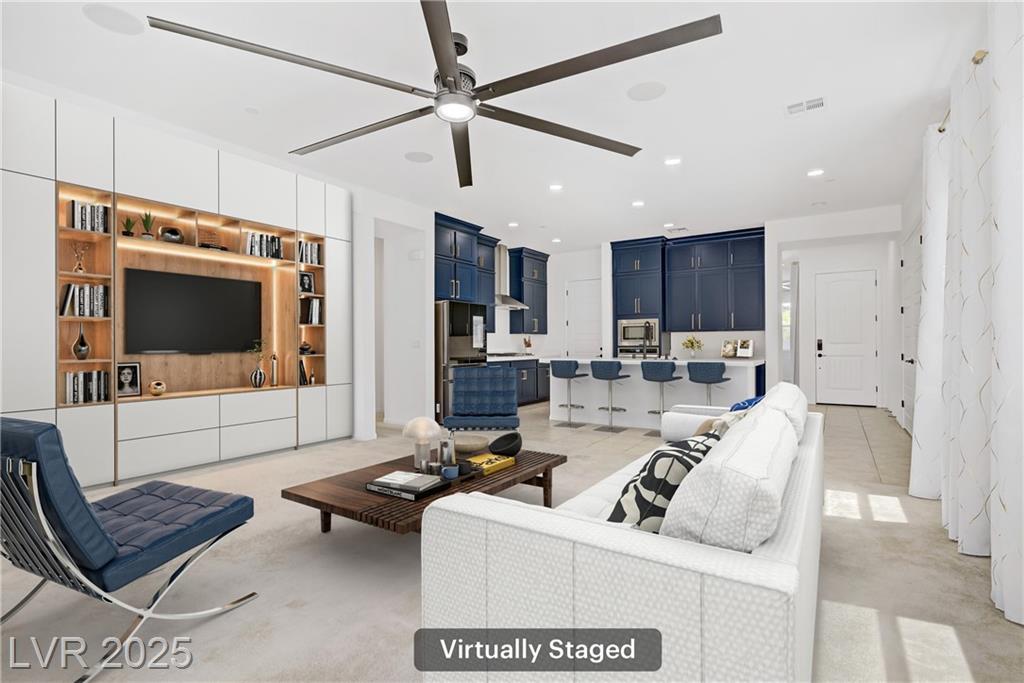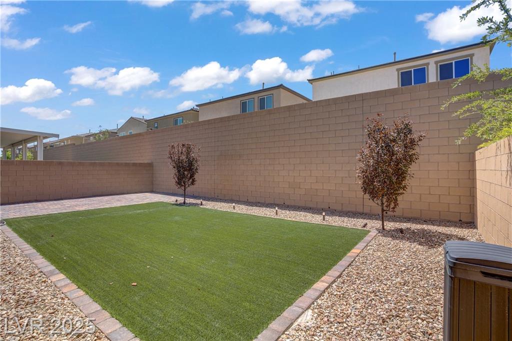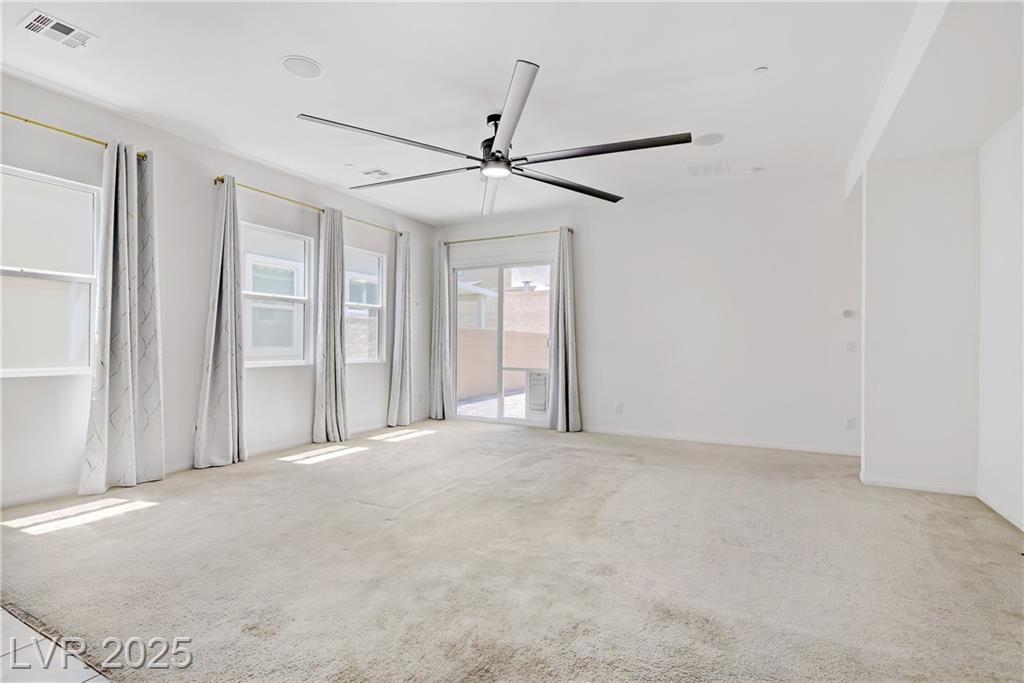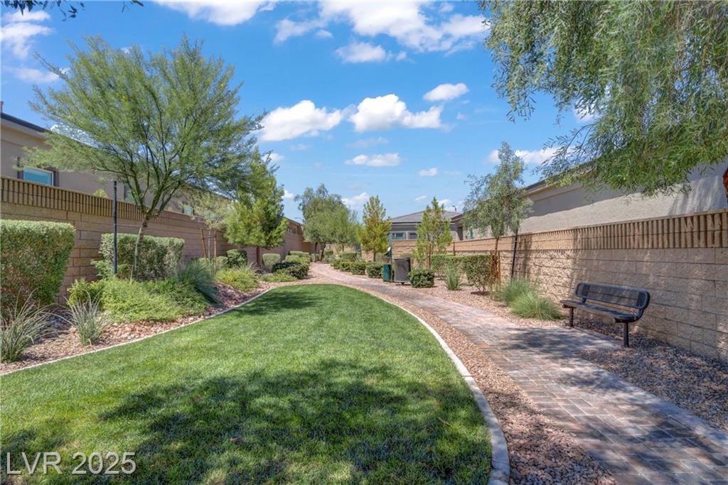 Welcome to this beautiful single-story home tucked inside the gated community of Skye Mesa, perfectly located across from the Skye Canyon Community Center. With brand new carpeting throughout, this 3-bedroom plus den/office offers flexible living—just add a door to convert the den into a 4th bedroom. Bright and airy with tons of natural light thanks to the thoughtful window placement throughout the home. The upgraded kitchen features extended ceiling-height cabinets with crown molding, stylish hardware, and modern appliances. The living room is wired with built-in surround sound speakers to make your movie nights even more phenomenal. Upgraded ceiling fans throughout help keep this already energy-efficient home extra comfortable. The fully finished backyard is private, low-maintenance, and ready for you to enjoy—or add your own personal touch.