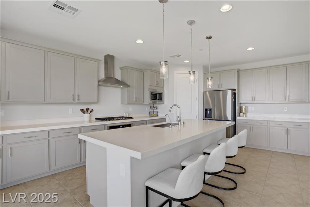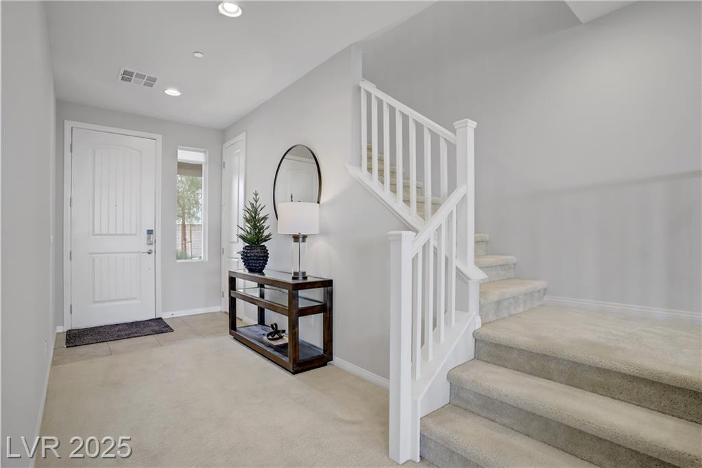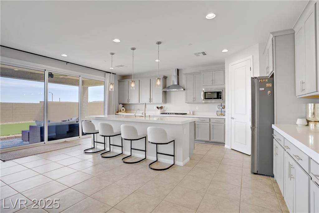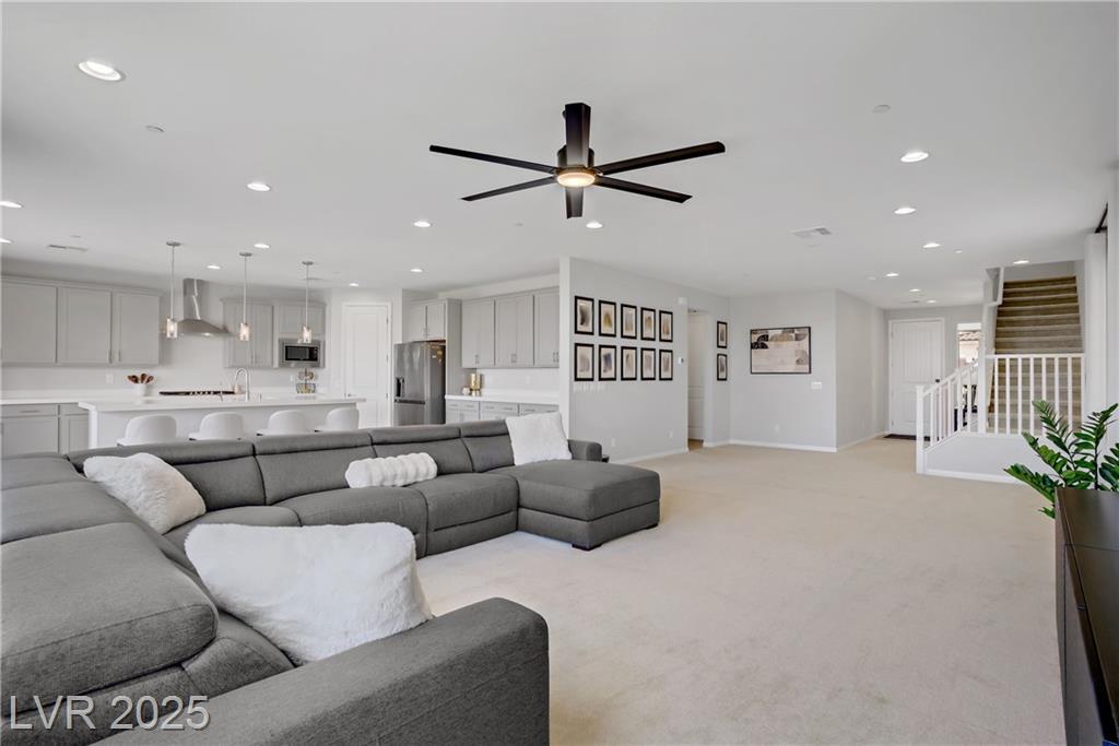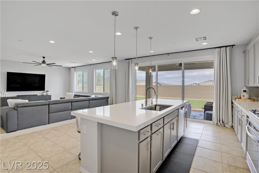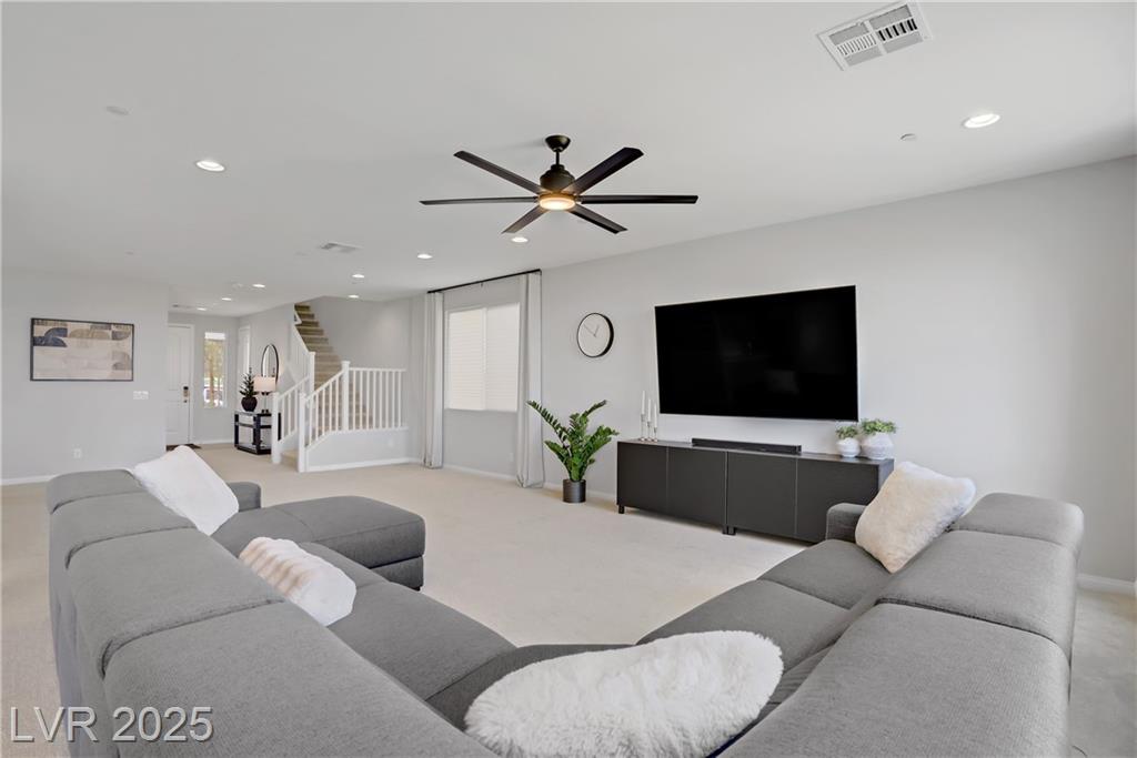 Stunning 3 year old Century home featuring unobstructed STRIP, CITY & MOUNTAIN VIEWS located in the beautiful gated community of Cantaro in Skye Canyon. This immaculate 3000 sq ft home features a 2 car + Tandem garage, 3 bedrooms, large loft, and laundry room upstairs as well as a den/office upstairs which could easily be converted to a bedroom. The spacious kitchen features and oversized island with quartz countertops, 42” upper cabinets, stainless steel appliances and more! The low maintenance pool sized backyard features pavers, artificial grass, patio cover and all single story homes directly behind! You will have full access to the Skye Canyon Community Center featuring a state-of-the-art fitness center, pool, spa, splash pad, park, pickleball, coffee shop & more! 25 minutes from Mount Charleston, and just minutes from shopping, parks, and fine dining!