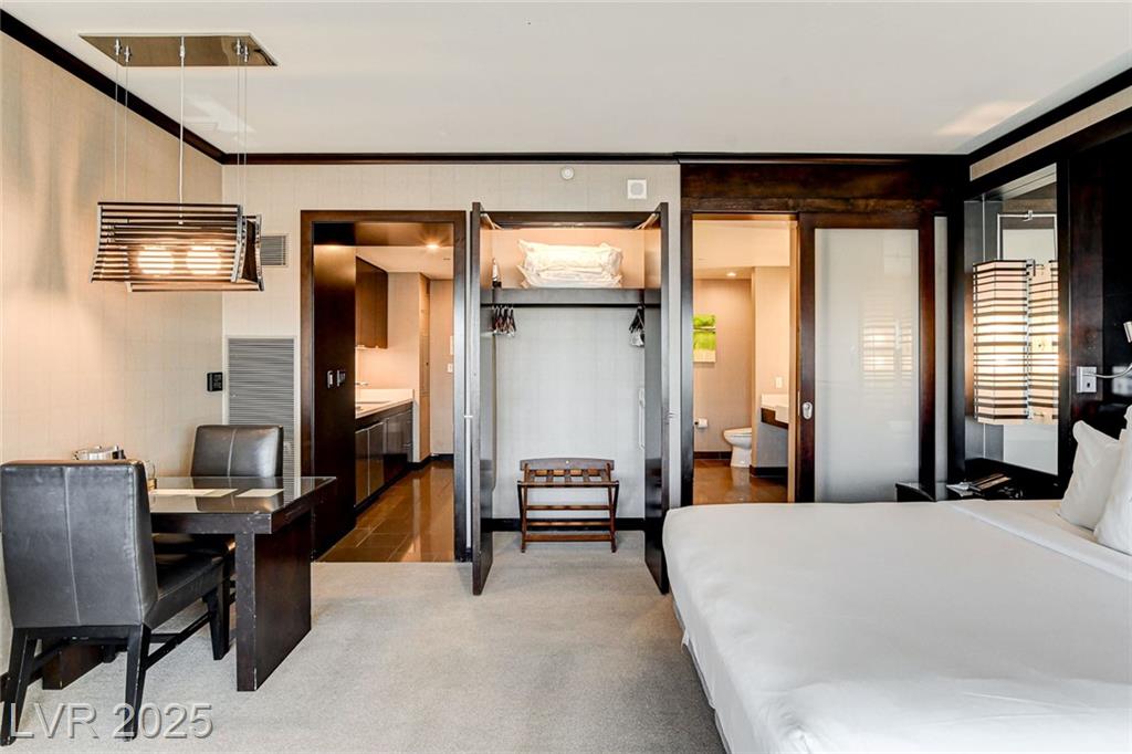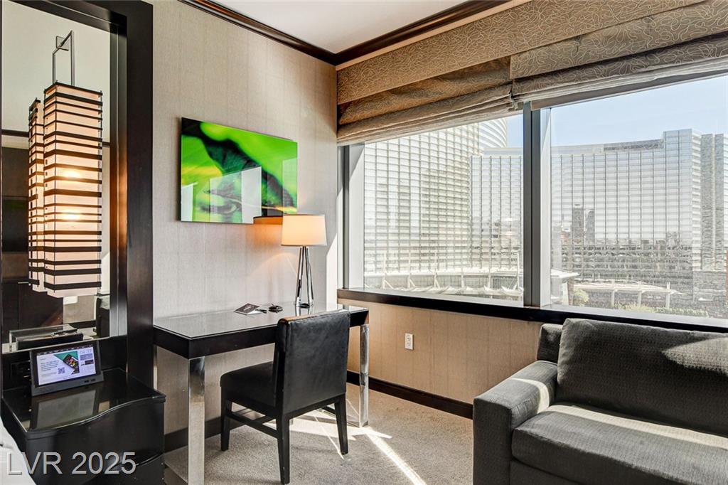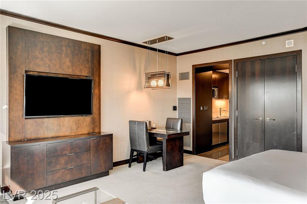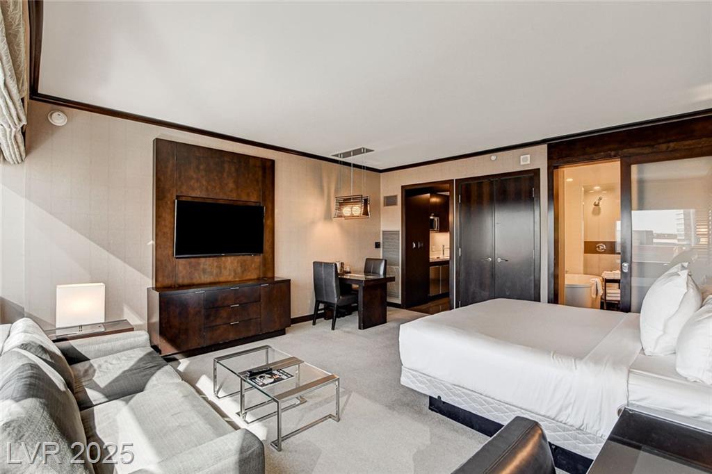 VDARA - Spacious & Smart: King bed & queen sleeper sofa comfortably sleep up to four guests: popular floor plan! Fully Equipped Kitchenette: stovetop, micro, fridge, in-room dining. Owner locker. Stylish Living Space: Elevated design, floor-to-ceiling windows, serene ambiance unparalleled serenity of Vdara, a LEED Gold-certified, casino-free and smoke-free sanctuary in middle of the Strip Nestled in multi billion dollar neighborhood CityCenter, seamlessly connected to ARIA, Crystals shopping dining Waldorf Astoria/ a quick ride on the free Aria Express to Bellagio!