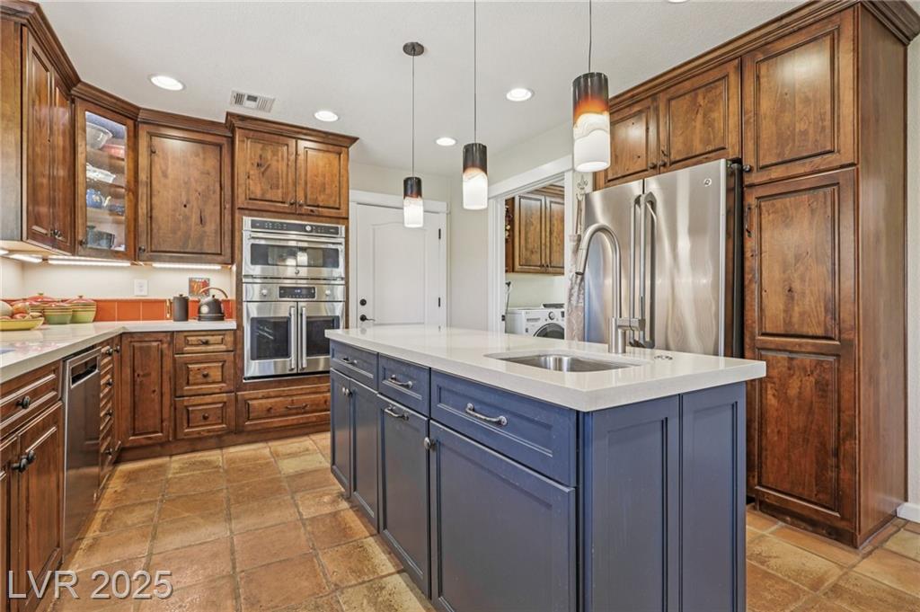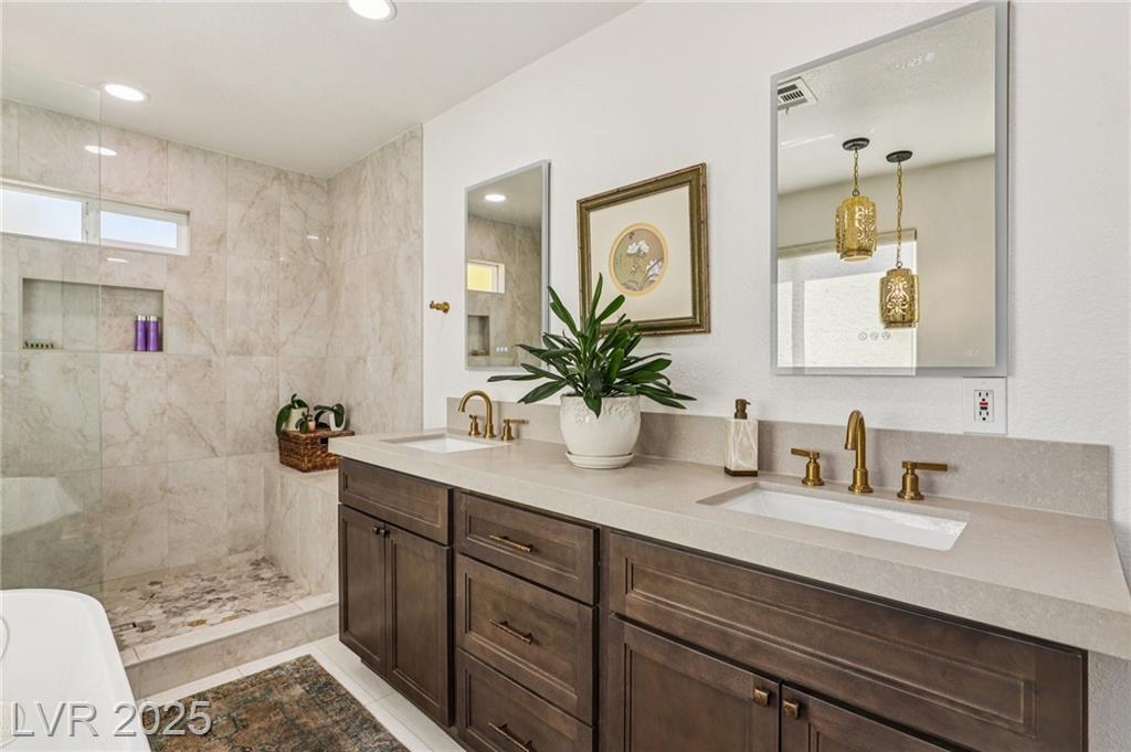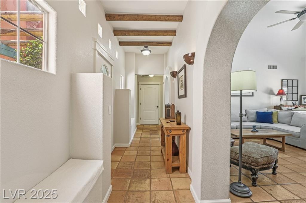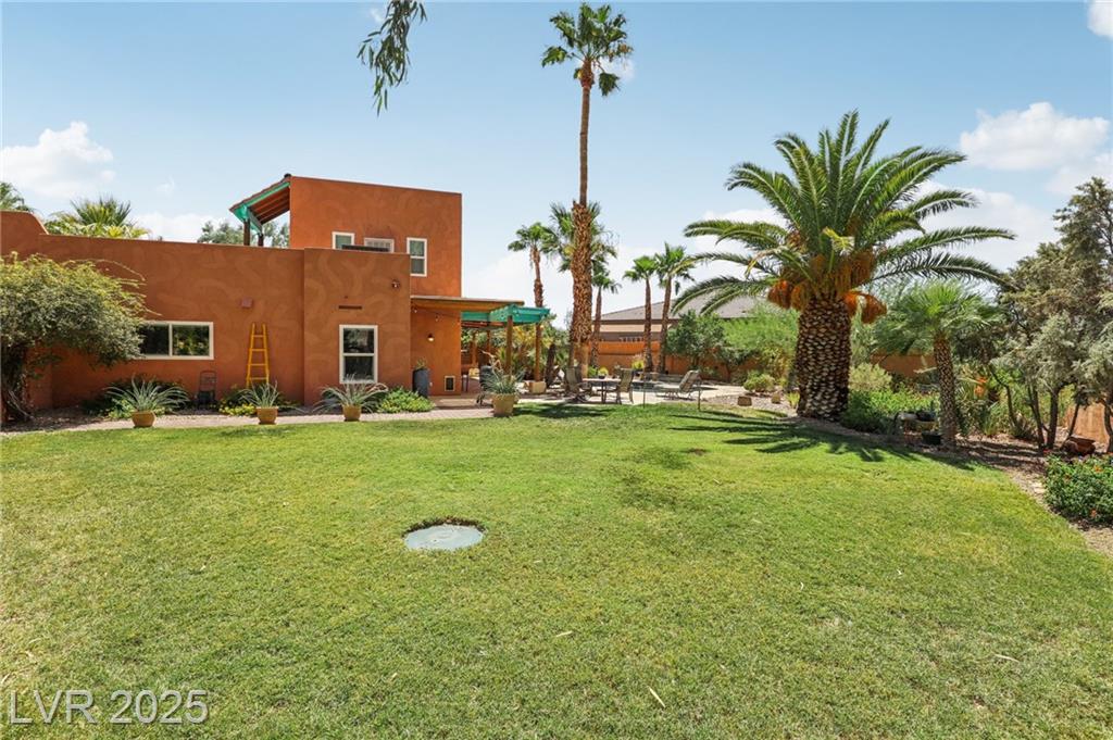 Comfortable country living close-into LV. Minutes form Harry Reid Airport. Nestled in an area of custom homes in a Rural/Residential Neighborhood From the Courtyard entry to other unique areas, there is plenty of space to relax and reflect Seeing is Believing. Covered patio, pool, rooftop deck, or outdoor fire-pit for coffee and cocktails await. Recently complete Pool/Spa renovation/premium materials. One story living with a 2nd.story loft and adjoining viewing/entertaining deck. A Great Room. Custom Kitchen w/Nook and Center Island, pendant lights, chefs sink. All Stainless Steel Appliances, Formal Dining Room for larger groups. Primary Suite w/new Primary Bath. Dual Vanity, lighted cabinets, walk-in shower, soaking tub and walk-in closet. Bedrooms 2 & 3 share a Jack and Jill bath. Guest 1/2 Bath. Views from all living areas into multiple gardens, and Pool area. Laundry Room w/ utility sink. Convenient RV Parking w/ pull-through driveway no backing out 3 car garage.