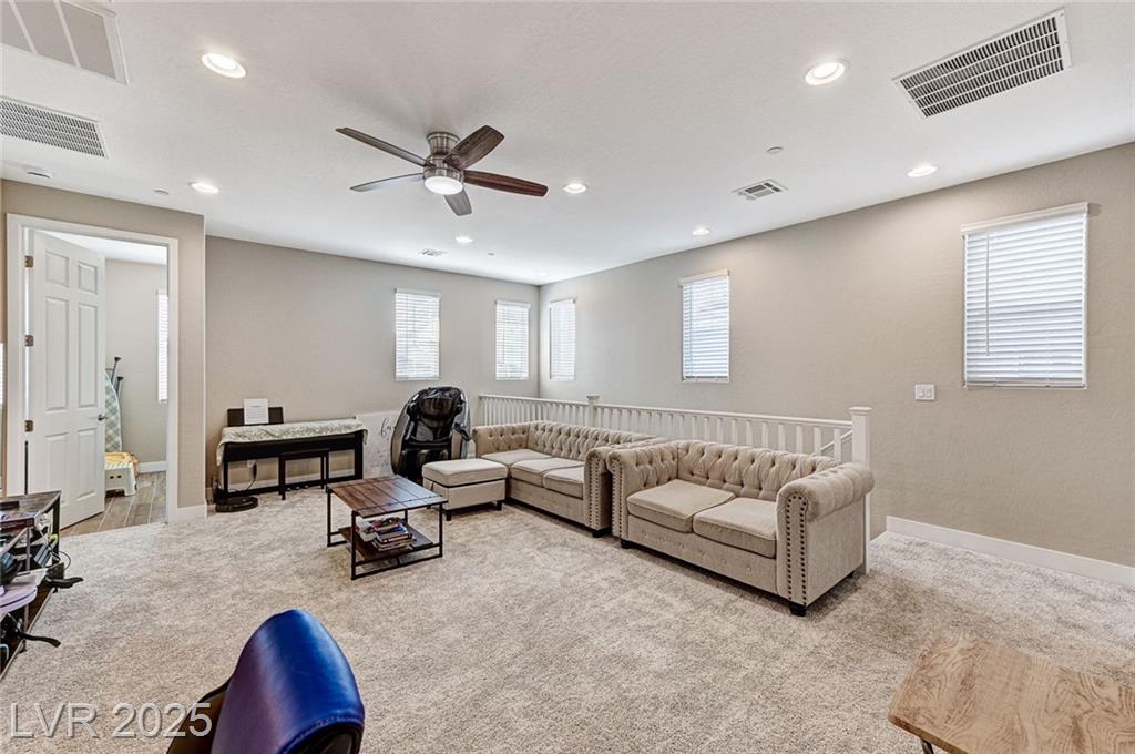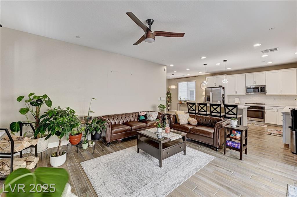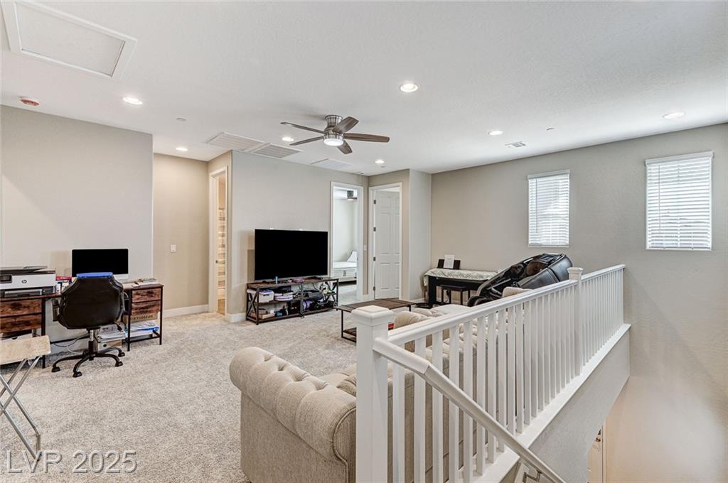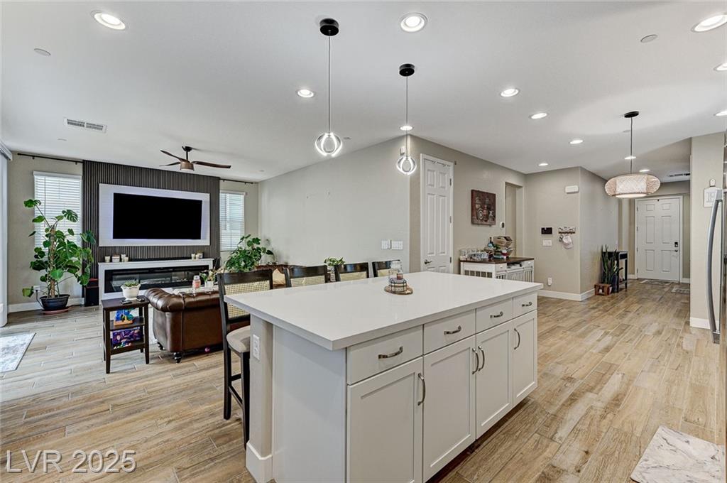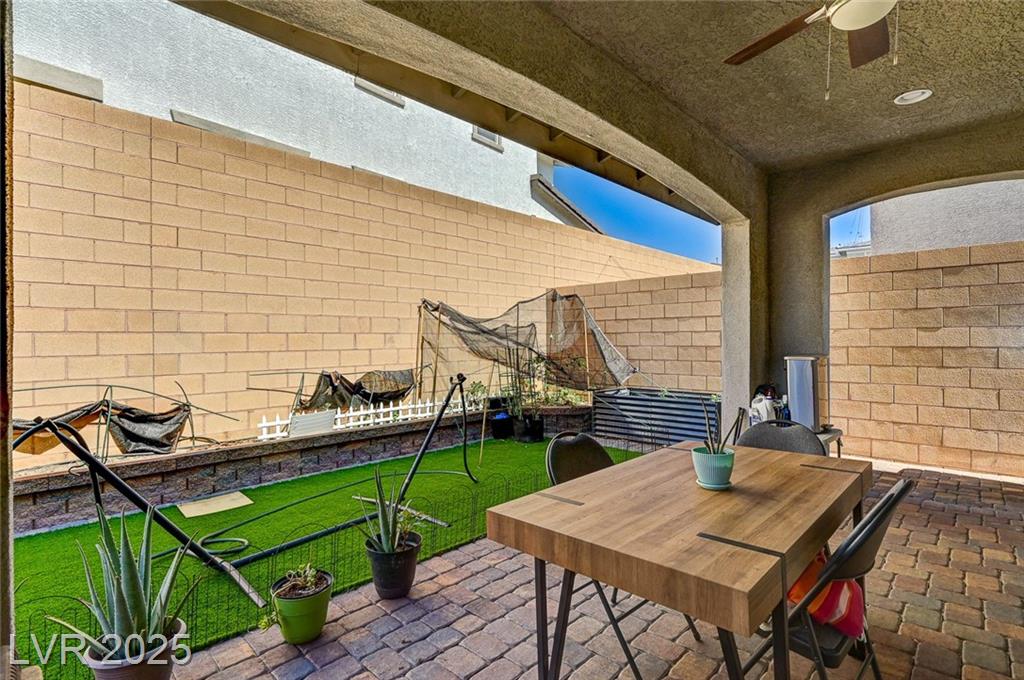 This stunning, move-in-ready home is just 1 year old and packed with high-end features throughout. Boasting 4 bedrooms and 3 full bathrooms why wait for a new build?! Enjoy ceramic tile flooring downstairs, plush carpet in the bedrooms and loft, ceiling fans throughout for year-round comfort, and raised panel doors. The heart of the home is a stylish kitchen featuring quartz countertops, a large island, white shaker cabinets, stainless steel appliances, recessed lighting, and elegant drop pendant lights. The open-concept dining area flows into the living space, with access to a beautifully finished backyard complete with a covered patio with ceiling fan, synthetic grass, and a BBQ stub—perfect for relaxing or hosting gatherings. Additional features include a courtyard entry, neutral paint palette, and a spacious loft upstairs offering extra living or work-from-home space. Enjoy all the amenities Cadence offers; parks, community pool, social events calendar! Come see me!