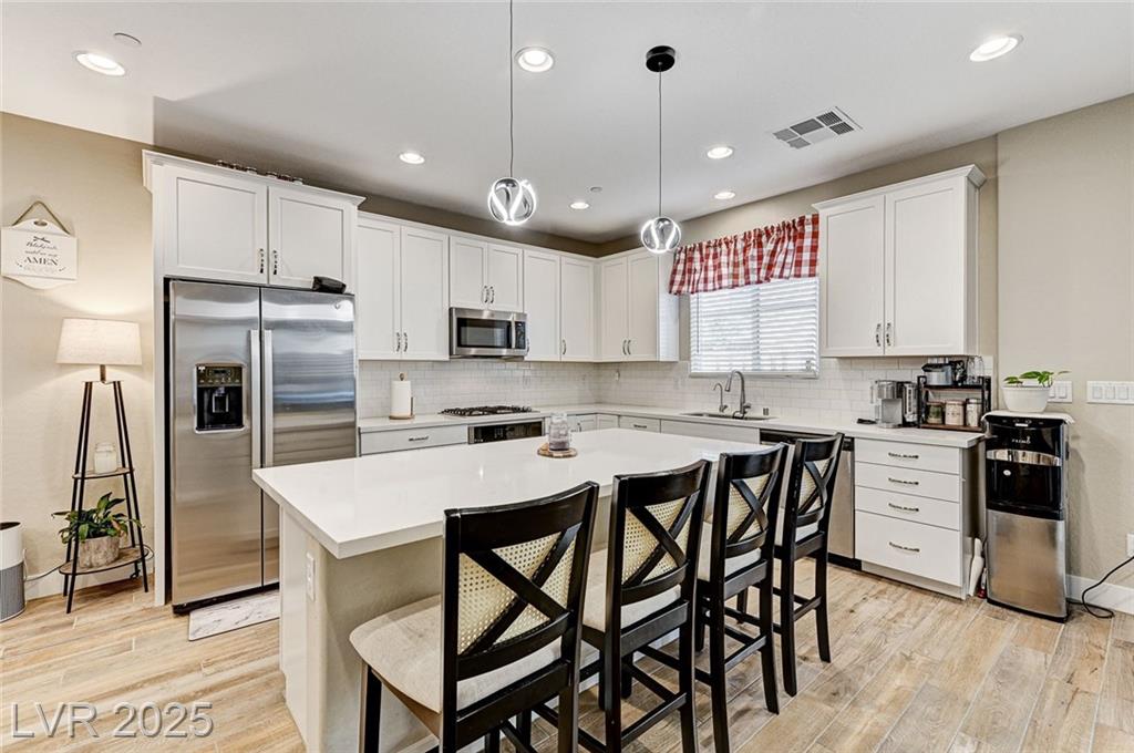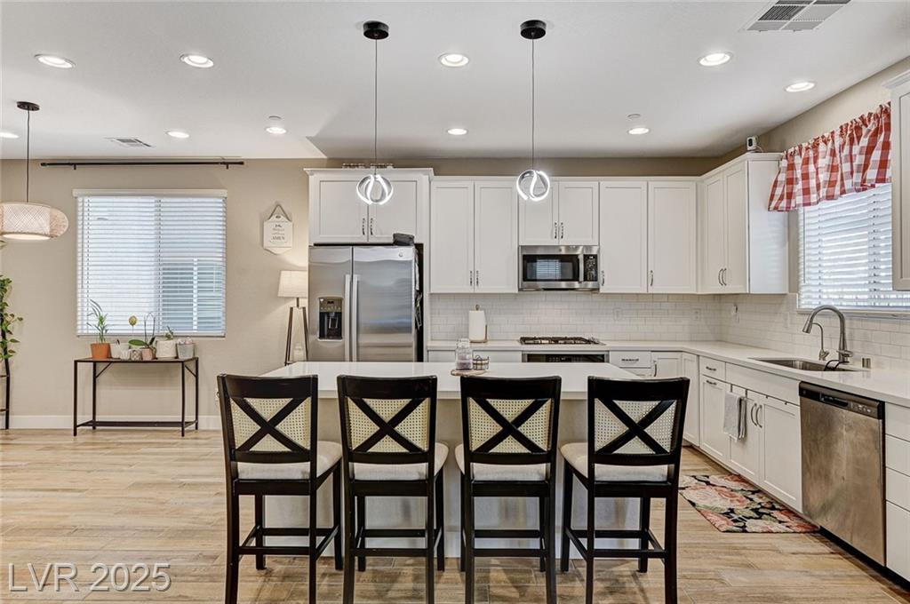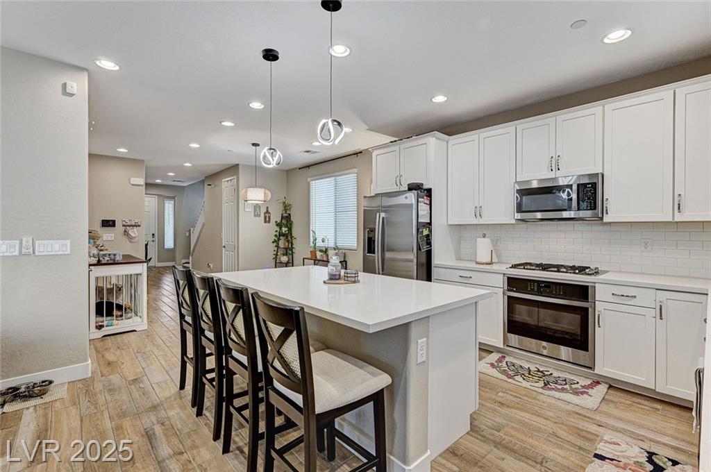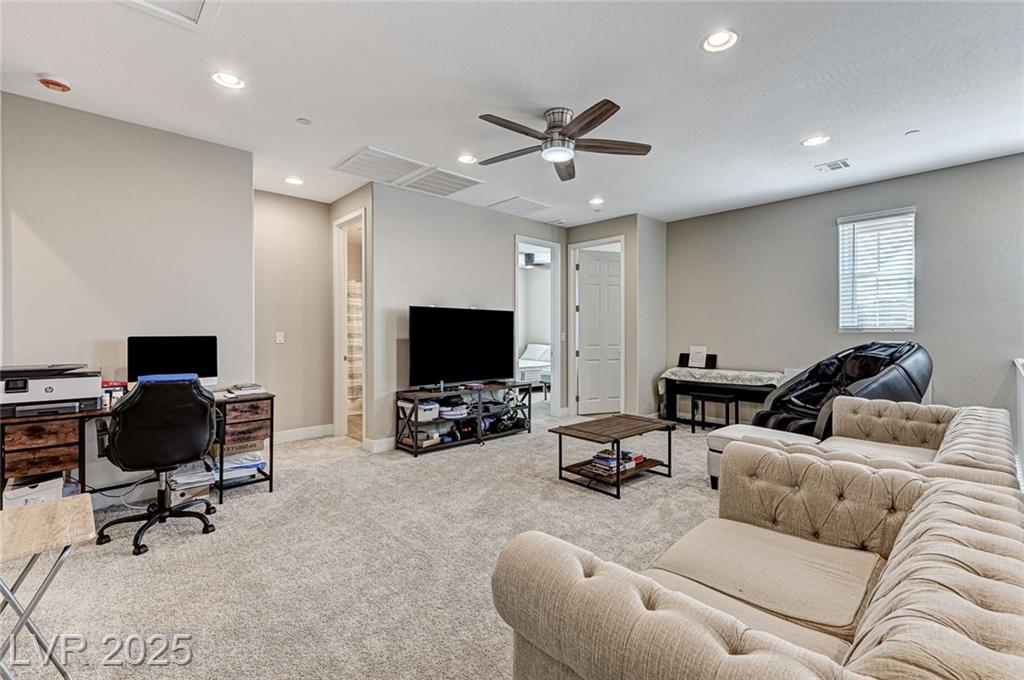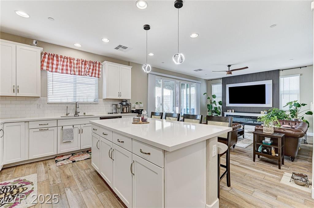 This stunning, move-in-ready home is just 1 year old and packed with high-end features throughout. Boasting 4 bedrooms and 3 full bathrooms why wait for a new build?! Enjoy ceramic tile flooring downstairs, plush carpet in the bedrooms and loft, ceiling fans throughout for year-round comfort, and raised panel doors. The heart of the home is a stylish kitchen featuring quartz countertops, a large island, white shaker cabinets, stainless steel appliances, recessed lighting, and elegant drop pendant lights. The open-concept dining area flows into the living space, with access to a beautifully finished backyard complete with a covered patio with ceiling fan, synthetic grass, and a BBQ stub—perfect for relaxing or hosting gatherings. Additional features include a courtyard entry, neutral paint palette, and a spacious loft upstairs offering extra living or work-from-home space. Enjoy all the amenities Cadence offers; parks, community pool, social events calendar! Come see me!