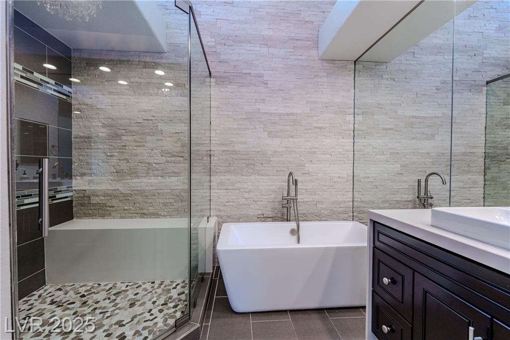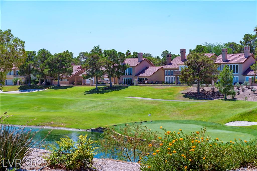 IMPRESSIVE TOTAL RENOVATIONS ON THIS 1 STORY (NO STEPS) GARDENS END UNIT. ELEVATED LOT OVERLOOKING GOLF COURSE, LAKE AND WATERFALL. UPDATED FLOORING T/O. STACKED STONE FIRE AND ICE FIREPLACE IN LIVING ROOM. VAULTED CEILINGS AND CUSTOM LIGHTING T/O. GOURMET OPENED KITCHEN FEATURES STONE COUNTERS WITH WATERFALL EDGE, CUSTOM CABINETS, KITCHEN AID APPLIANCES AND 5 BURNER GAS COOKTOP. SPACIOUS PRIMARY BEDROOM. UPDATED PRIMARY BATH WITH FREE STANDING TUB, STONE WALLS, NEW CABINETS, SINKS AND FAUCETS. 2ND BEDROOM WITH OWN UPDATED BATH. COURTYARD ENTRY. WRAP AROUND PATIO. ELEVATED VIEWS OF GOLF COURSE AND LAKE.