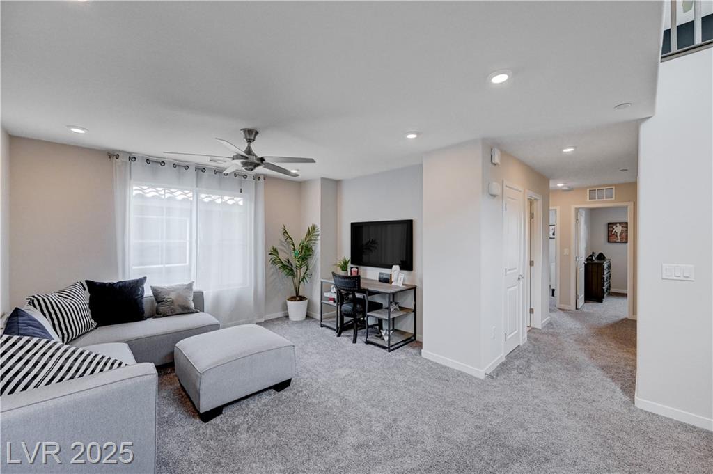 Brand new home built in 2022 with all new appliances, flooring, carpet, paint and furniture. This property is located in South Henderson just a few minutes from Boulder City! It is 3 stories with 2 loft, backyard and patio on the 3rd floor. Community is gated with a swimming pool/spa, dog park, courtyard/picnic area and fitness bars.