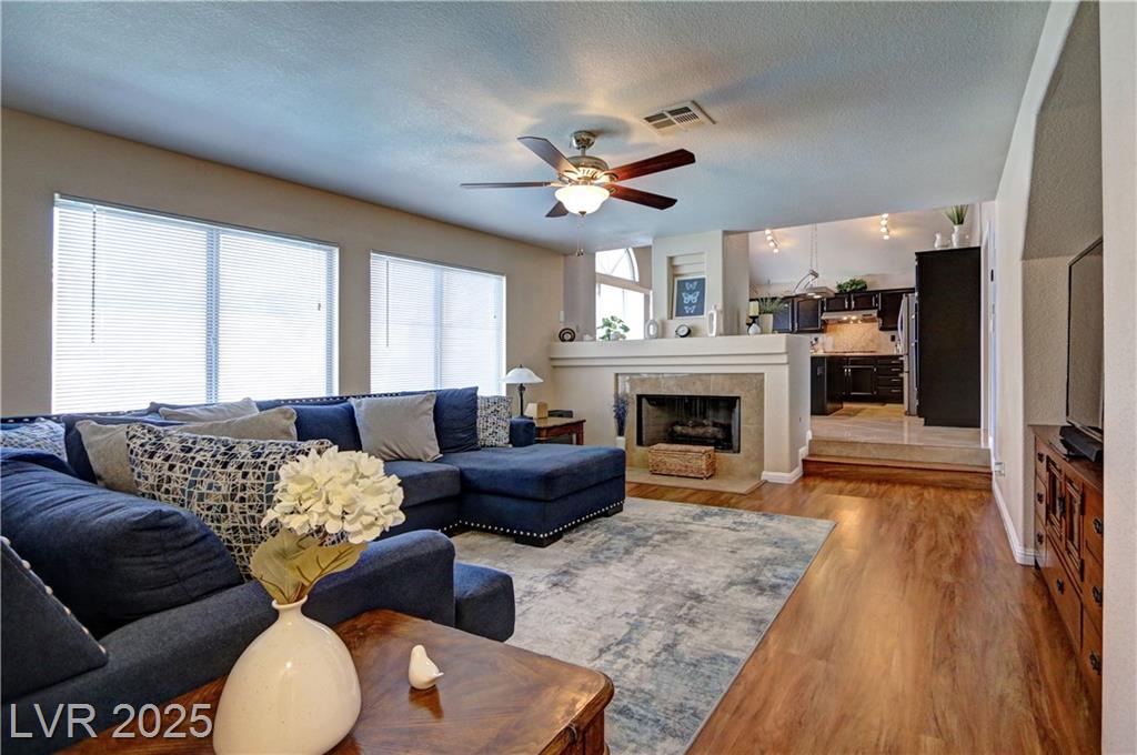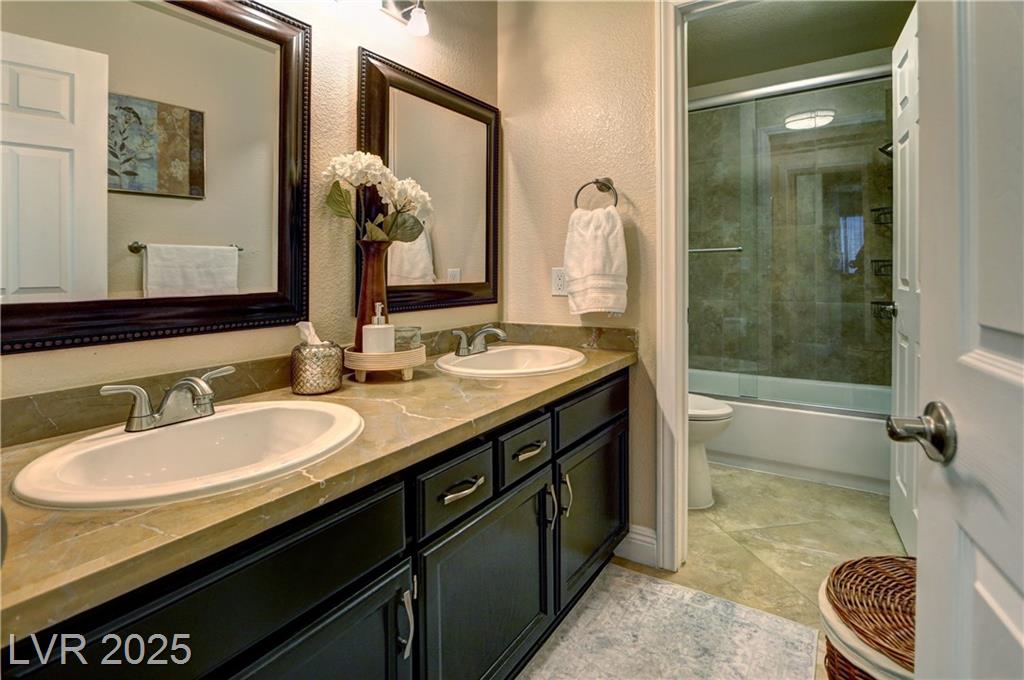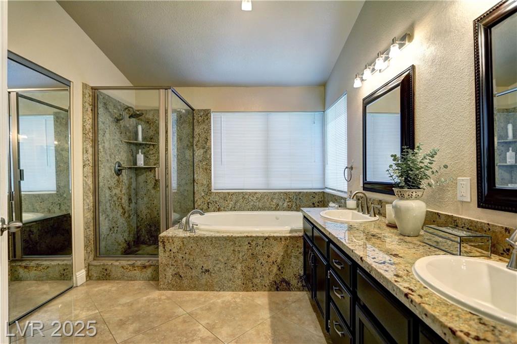 This beautifully upgraded home blends modern elegance with comfort. The gourmet kitchen features high end stainless steel appliances, and plenty of counterspace. The sunken formal living room creates a welcoming atmosphere, while the separate dining area is perfect for entertaining. A cozy fireplace warms the downstairs family room, and an additional family room upstairs offers even more space. The large primary bedroom includes vaulted ceilings and a custom closet design. The luxurious primary bath boasts a granite shower, framed jetted tub, and granite counters. Spacious bedrooms have ceiling fans for added comfort. Outdoors, the private backyard is an oasis with a pool, spa, large pool deck, Convenient to Airport, Las Vegas strip, and Brightline High Speed Rail coming soon. This home can be sold fully furnished (at an added cost), for Corporate Housing or Executive Rental, or sold empty. NO HOA, Seller rate buy down possible for Buyer. Ready for new owners to move in!