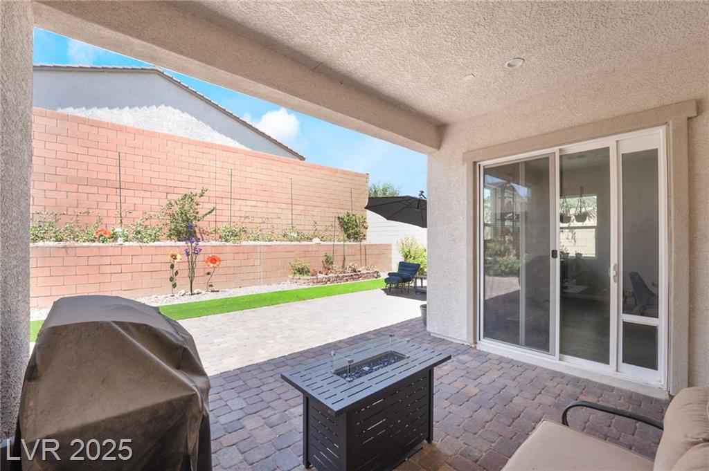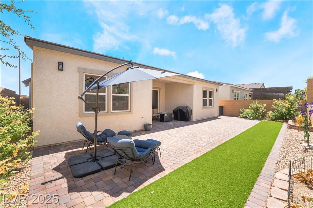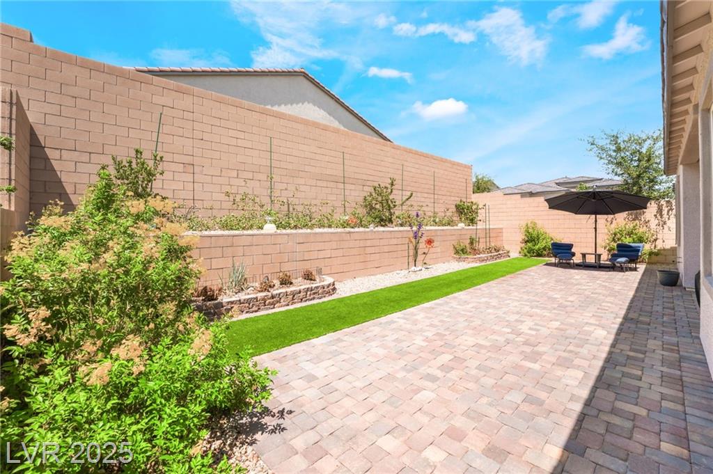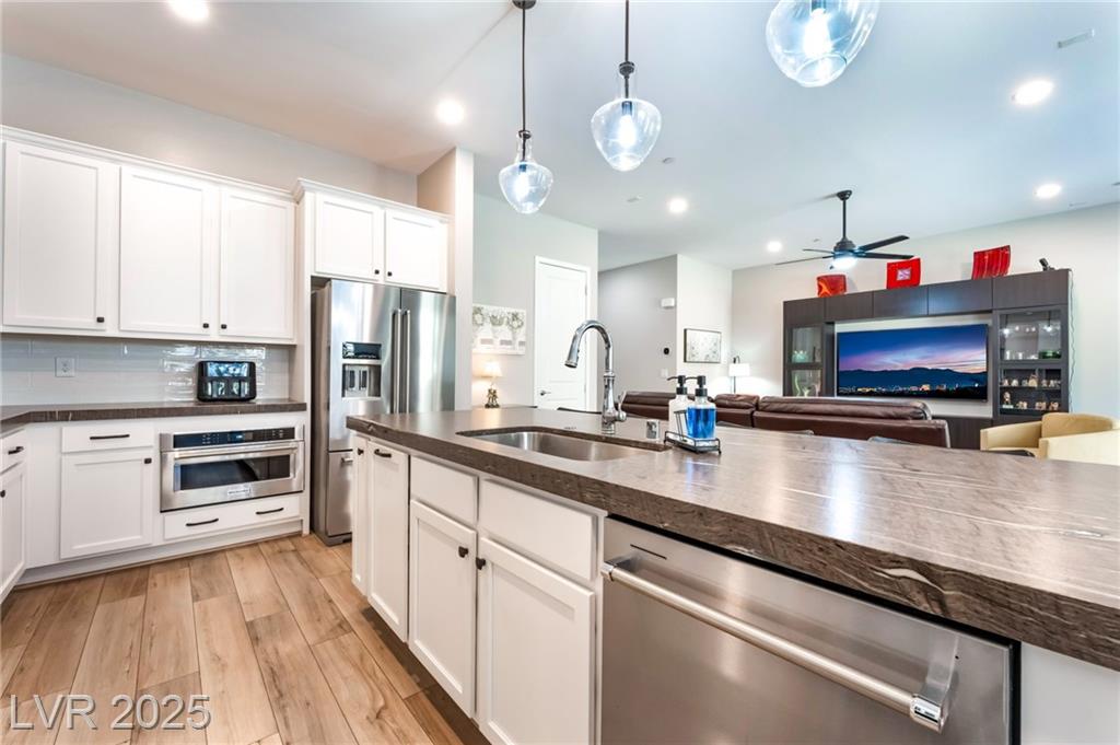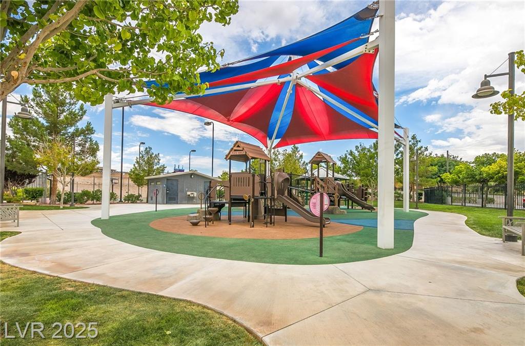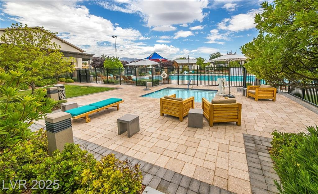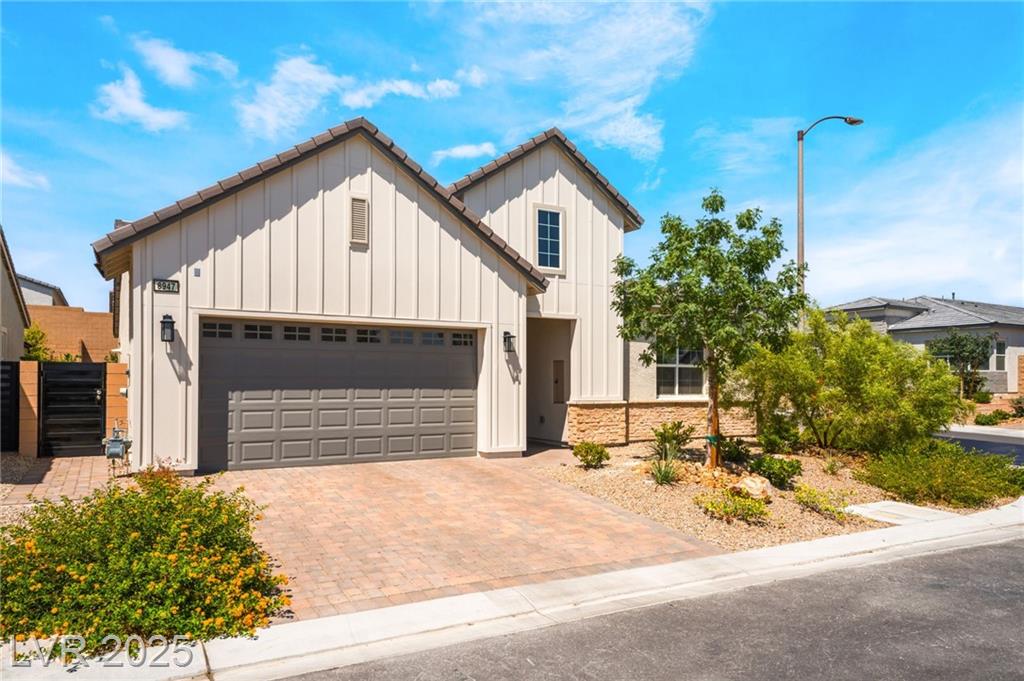 Welcome to this stunning single-level home nestled in the prestigious, gated community of Skye Canyon. Conveniently located near shopping, dining, and freeway access, this 3-bedroom, 2.5-bathroom residence offers a spacious 3-car tandem garage and an open-concept design perfect for modern living. Step inside to find beautiful LVP and tile flooring throughout, a generous laundry room with a sink, and a water softener. The chef’s kitchen boasts stainless steel appliances, dual ovens, a walk-in pantry, and ample cabinetry. The primary suite is a true retreat with a walk-in closet featuring built-in shelving, dual vanities, and a glass-enclosed shower with floor-to-ceiling tile. Enjoy the outdoors in a thoughtfully landscaped backyard with a covered patio, pavers, and low-maintenance artificial turf—perfect for relaxing or entertaining. As a resident, you’ll have access to the Skye Canyon Community Center with top-tier amenities. Don’t miss the chance to call this your new home!