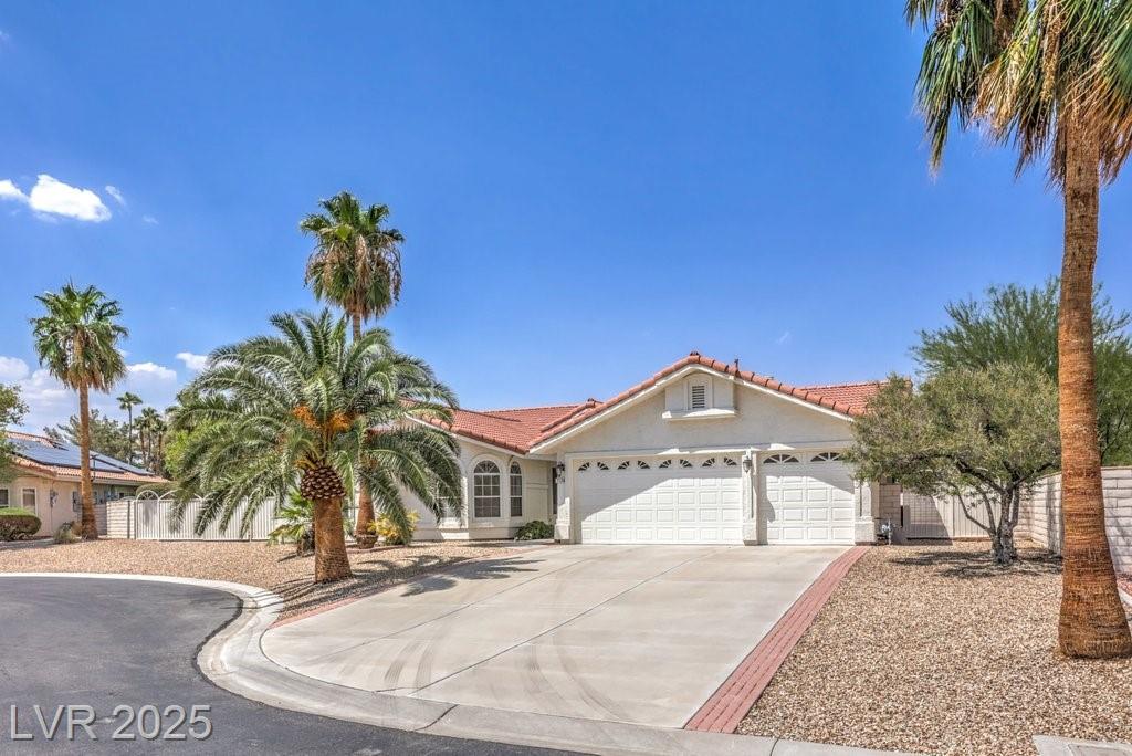 Contemporary home sitting on a premium cul-de-sac home site in the desirable gated community of Tuscan Trails. Over a third of an acre lot offers flexibility suiting many needs including RV parking area with gate, covered patio, stamped concrete, relaxing spa, and no rear neighbor for an added sense of privacy. Open concept living at its finest, you will love the vaulted ceilings and perfectly placed windows allowing natural light to pour in. Primary suite promotes a restful feeling enhanced by the remodeled bathroom with modern flair of quartz surfaces, freestanding tub, and a seamless glass shower. Kitchen features granite counters, prep island, breakfast bar, walk-in pantry, and a convenient desk. Comfortable family room highlighted by a French patio door, three-way fireplace, ceiling fan, and plenty of space. Beautiful home upgraded with new paint, new luxury plank flooring, stone pattern tile, new blinds, LED recessed lighting, and sleek baseboards.