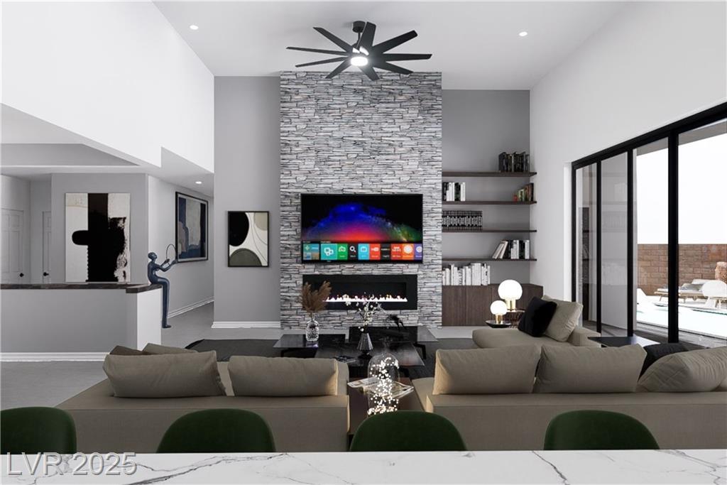 Discover the epitome of modern luxury in this 4,988 sq ft single-story on a half-acre, designed for multigen living with an attached casita. High ceilings, sleek finishes, and a spacious open-concept great room with a linear fireplace set the tone for elegance. The gourmet kitchen features quartzite countertops, Thermador appliances, and modern cabinetry. Five bedrooms include a luxurious primary suite and private casita quarters, plus 4.5 baths. Expansive glass doors connect to a resort-style backyard with pool, built-in BBQ, and covered patio. A 4-car garage offers ample storage. Every detail blends comfort, style, and functionality.