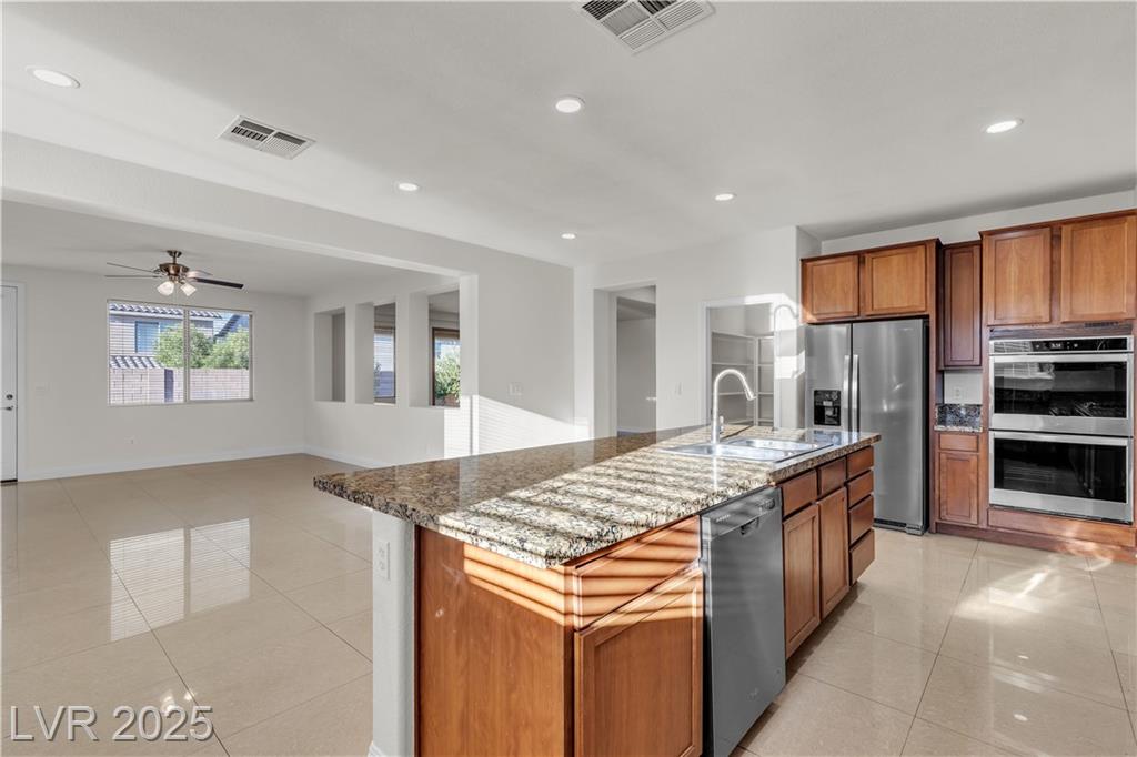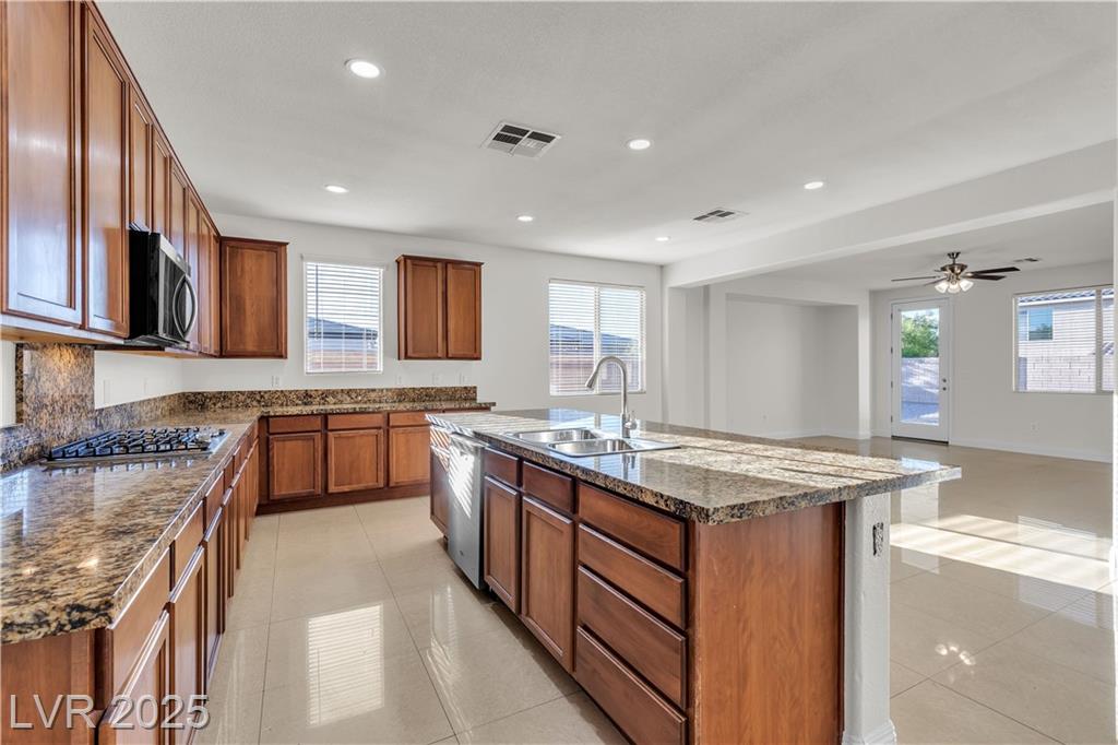 Located in the desirable Nevada Trails master-planned community, this 6-bedroom, 4-bath home offers nearly 3,900 sq ft of living space on a corner lot at the end of a cul-de-sac. Recent updates include fresh interior paint throughout, including baseboards and walls. 3-car Garage. The open kitchen features granite countertops, a spacious island, and stainless-steel appliances. The primary suite includes an en-suite bath with soaking tub, separate shower, and large walk-in closet. Nevada Trails provides community parks, walking paths, and landscaped common areas. Nearby access to shopping, grocery stores, dining, and services enhances everyday convenience. The backyard offers ample space to design a custom outdoor area—ideal for adding a pool while still accommodating additional entertaining space.