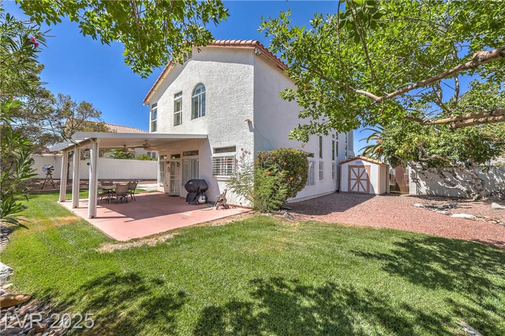 Stunning NO HOA Residential Home in a Prime Location with an oversized Lot! Welcome to your dream oasis! This exceptional 4-bedroom, 3-bathroom home offers the perfect blend of comfort and functionality, with a convenient bedroom & full bathroom Downstairs—ideal for guests or multigenerational living. Window Shutters throughout. As you step inside, you're greeted by a spacious living area that flows seamlessly into a spectacular kitchen featuring gorgeous granite countertops, stainless steel appliances, & a delightful garden window! The beautifully landscaped backyard is an entertainer’s paradise, complete with a covered patio for summer barbecues & a storage shed for all your outdoor supplies. Enjoy the ease of Extra RV Parking/Boat parking on your property & ROOM FOR A POOL! Additional features include a rare 3-car garage, water softener, & an upstairs laundry room for convenience. Just blocks from lively Tivoli Village & minutes from Boca Park this home is a must-see! WELCOME HOME!