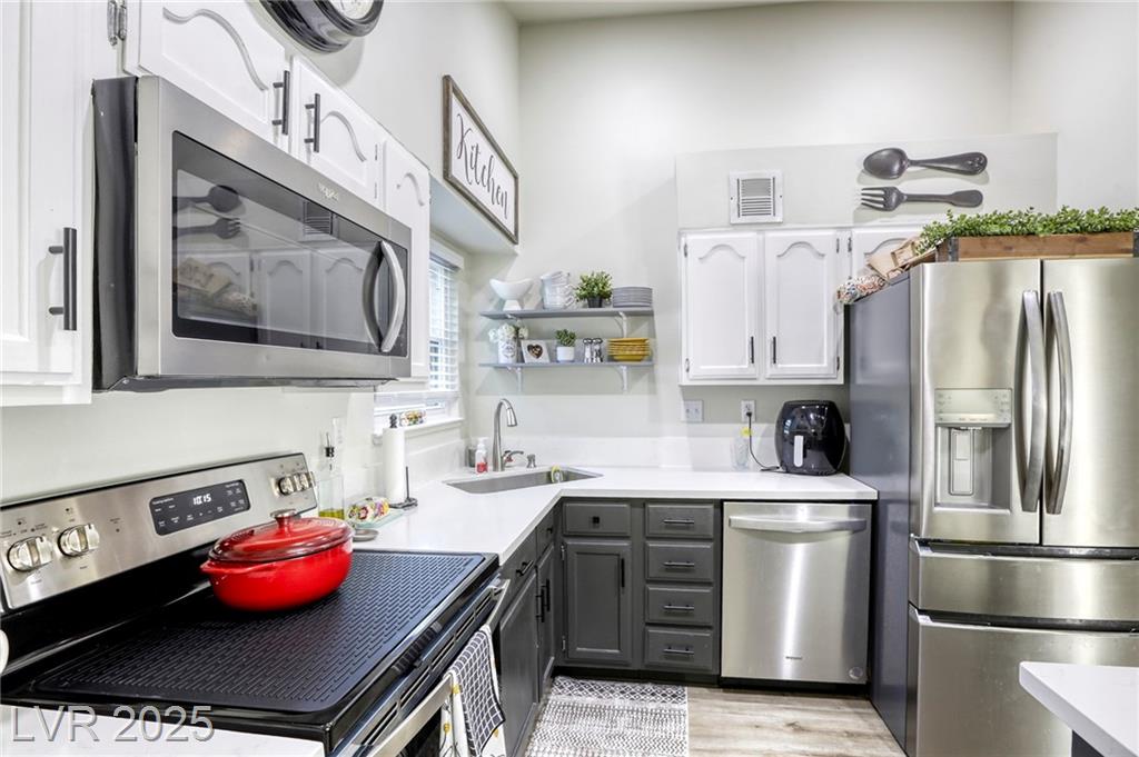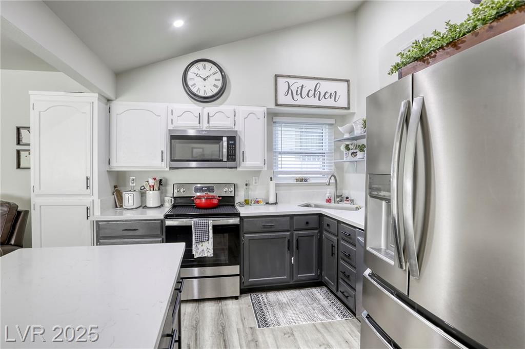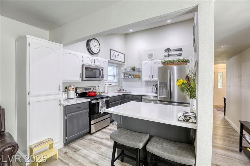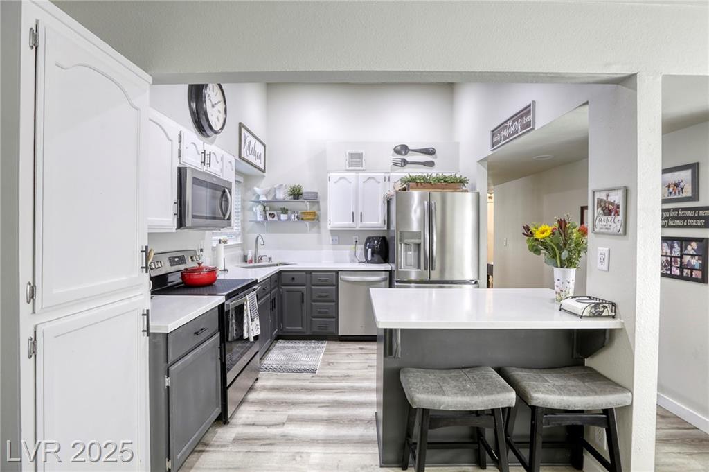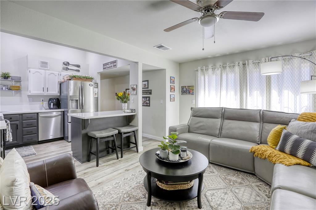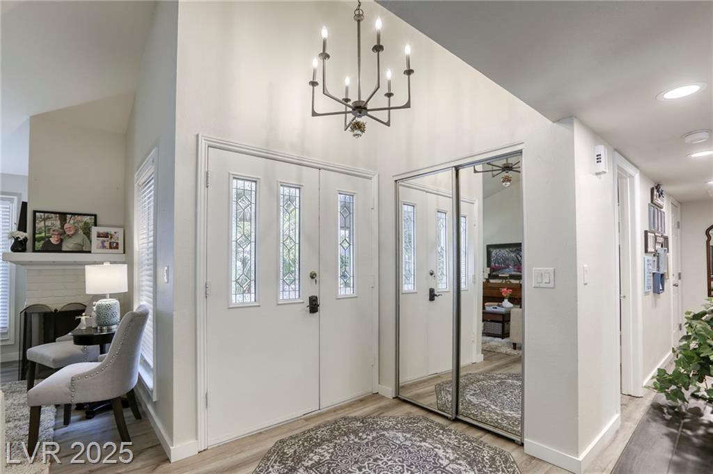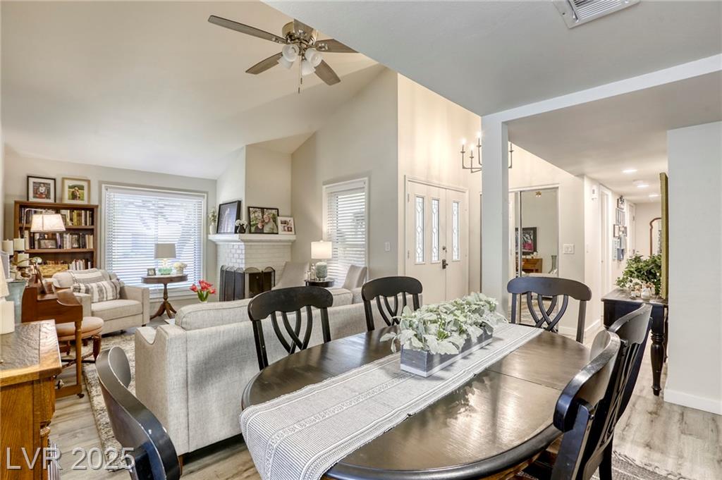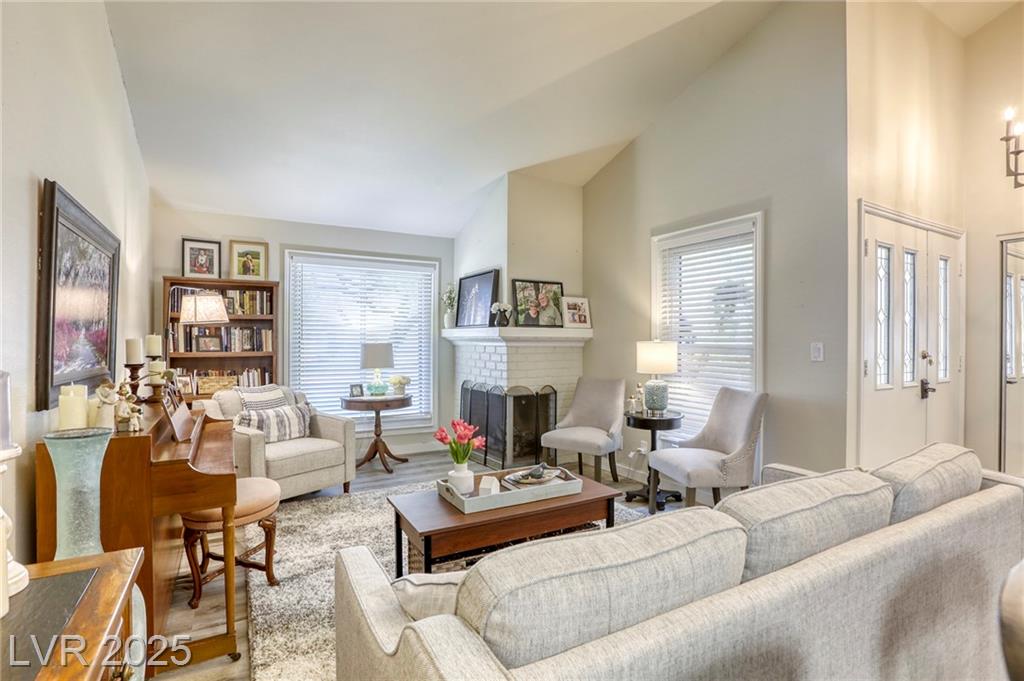 Oasis in Las Vegas * stunningly updated single-story townhome * 3 spacious bedrooms and 2 bathrooms *. Beautiful kitchen*quartz countertops * large island with a breakfast bar * stylish luxury vinyl plank flooring that extends throughout the home * open-concept living room, anchored by a cozy two-way fireplace, is perfect for entertaining. * primary bedroom is conveniently located downstairs * private, fully fenced backyard with a lovely patio * attached 2-car garage with built-in cabinets. * access to fantastic community amenities * a refreshing pool *tennis courts * basketball courts * BBQ area
