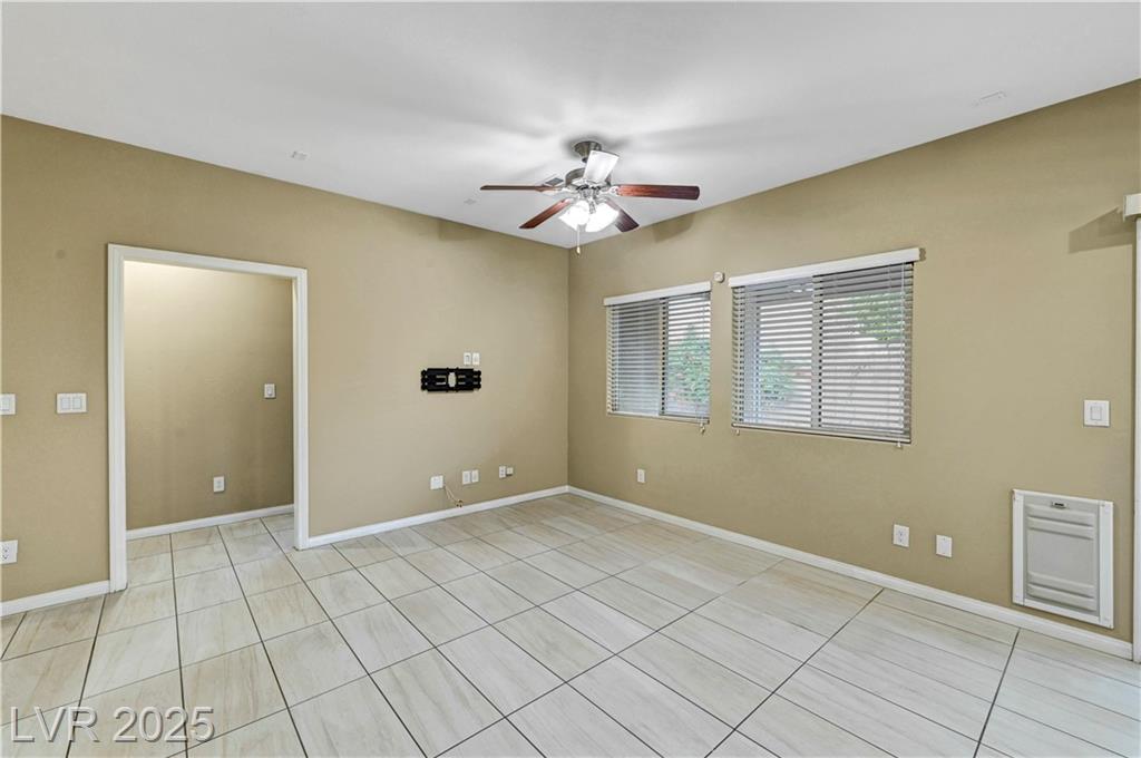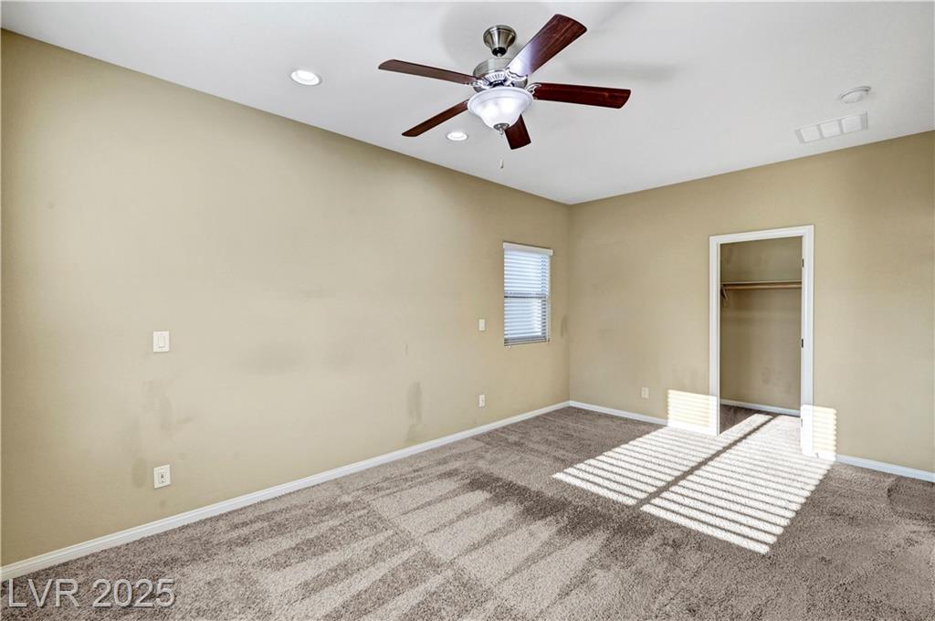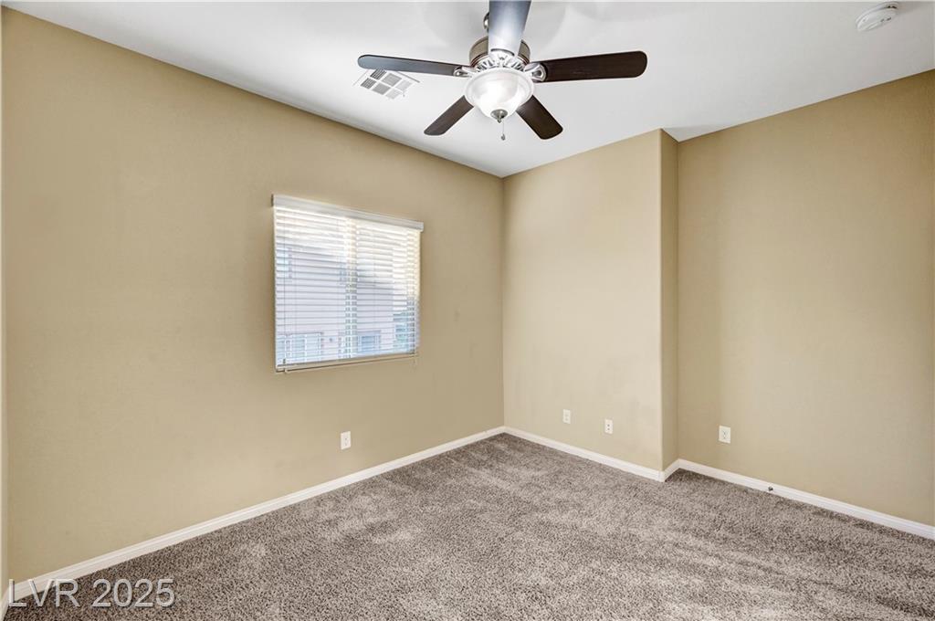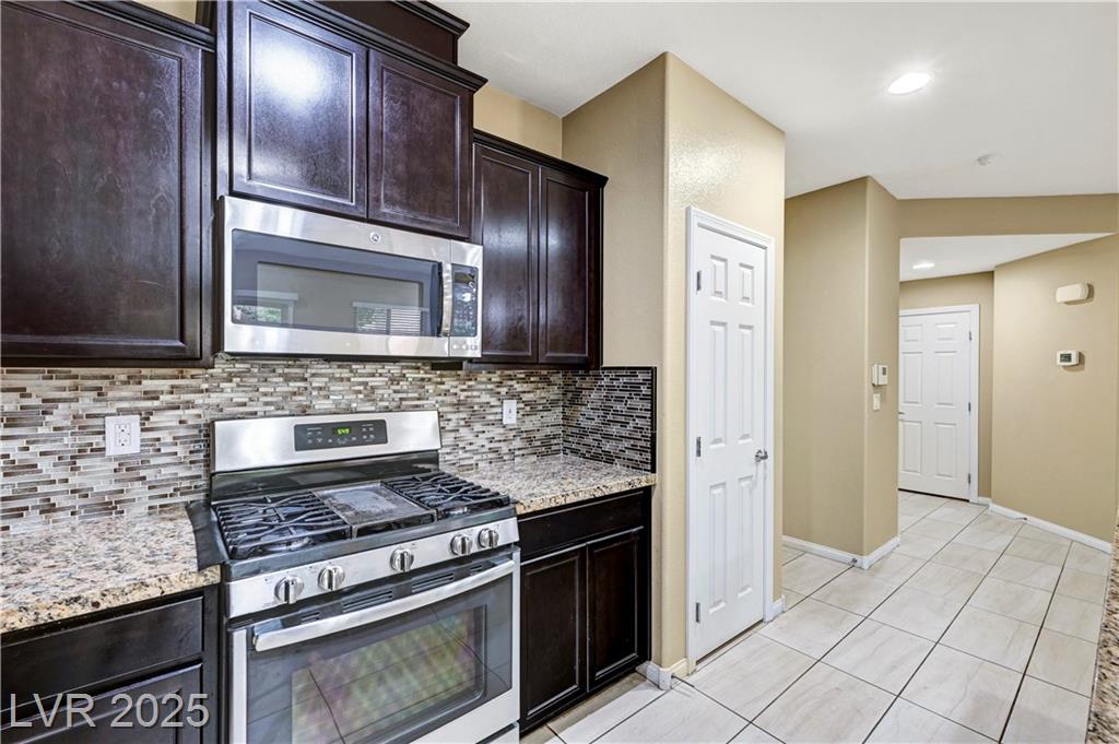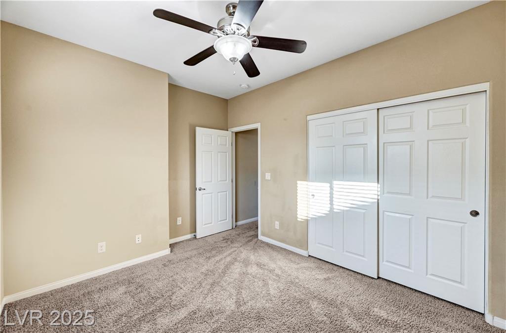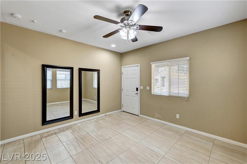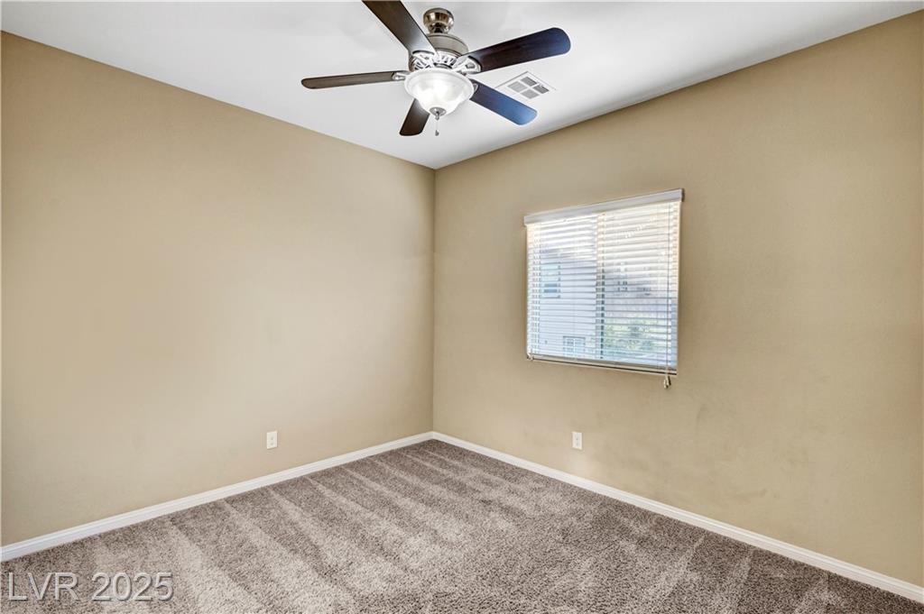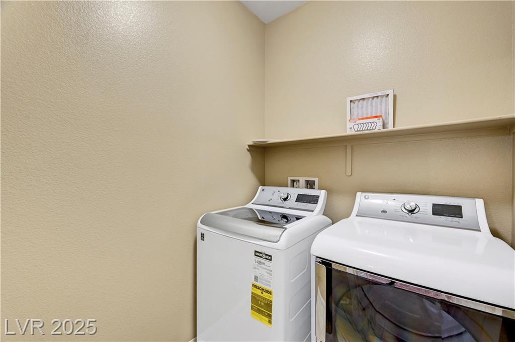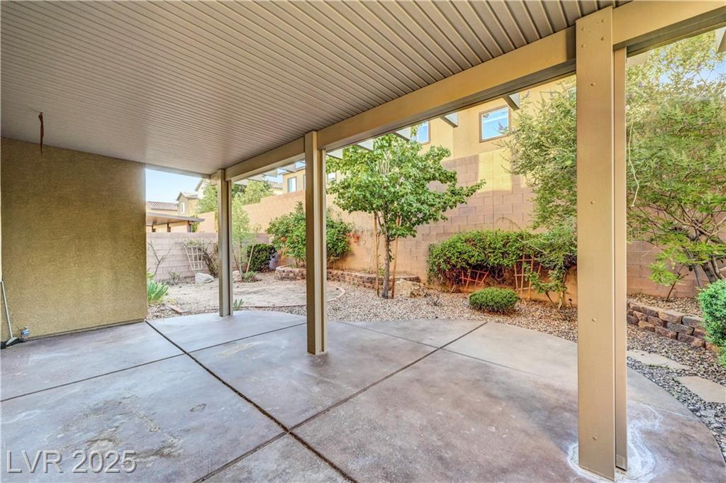 A cozy 2-story gated community home located in the heart of Mountain's Edge nearby friendly neighborhood parks and beautiful Paseos & walking trails. Functional home design layout with extensive storage spaces and walk-in closets, a separate living area for cozy gatherings, a wide-open kitchen, nook, great room and a downstairs bedroom perfect for guest stayover. Upstairs layout has a spacious primary BR, a good size 2nd BR, laundry room, and loft for office area. Home offers fresh interior paint, beautiful ceramic flooring, granite counter tops, modern kitchen backsplash, cabinets, blinds, and ceiling fans, energy efficient appliances, a cover patio, water softner, and owned solar panels. A simple modern exterior look with paver stones throughout the driveway and front entrance and a sizeable porch for outdoor seating. Minimal landscaping with planted shrubs and trees. Smart home package equipped with smart thermostat, alarm system, garage opener, sprinkler, and door-bell camera.
