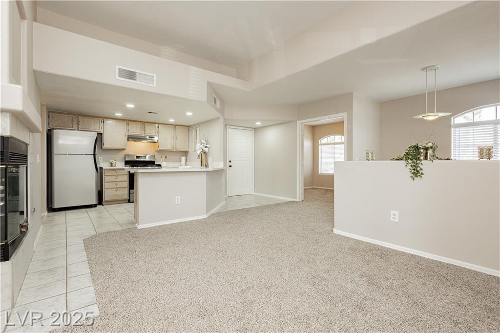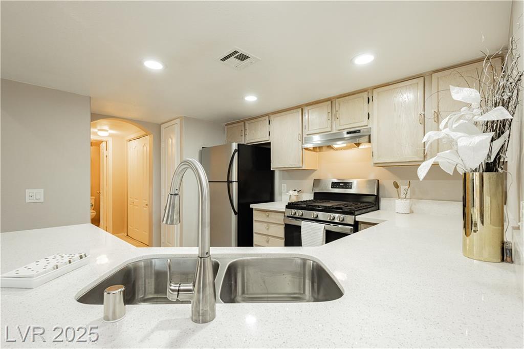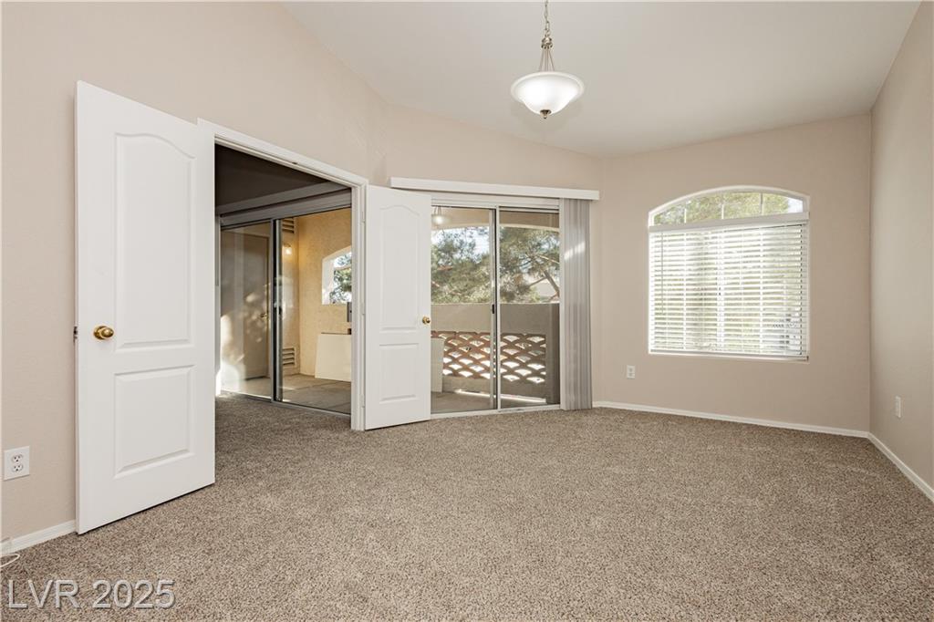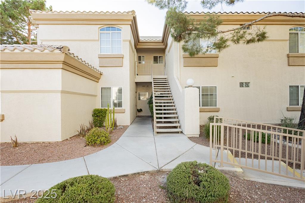 Charming 2 bedroom home in a gated community that is move-in ready! This home has it all and is conviently located in the commuity near the parking, mailbox, and all of the great community ammenities including the pool and spa. It also features a split bedroom floorplan, brand new quartz countertops, new carpet, new paint, stainless steel appliances, vaulted ceilings, balcony, walk-in closet, AC replaced in 2024, water and trash included in the HOA, and it is conviently located to everything you might need including shopping and the Las Vegas strip. A must see.