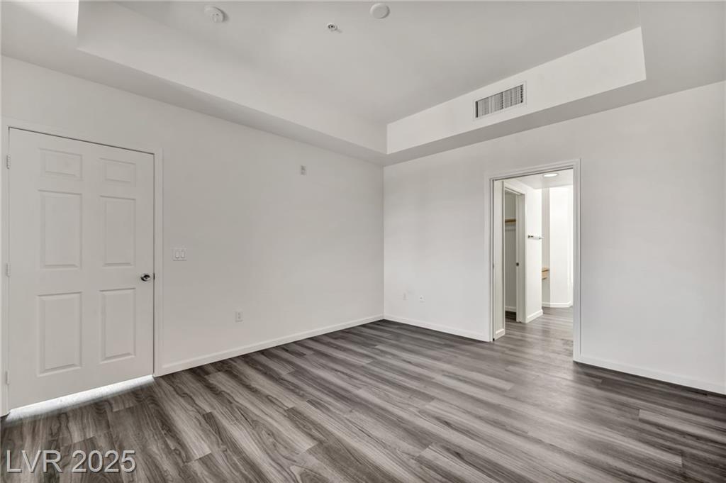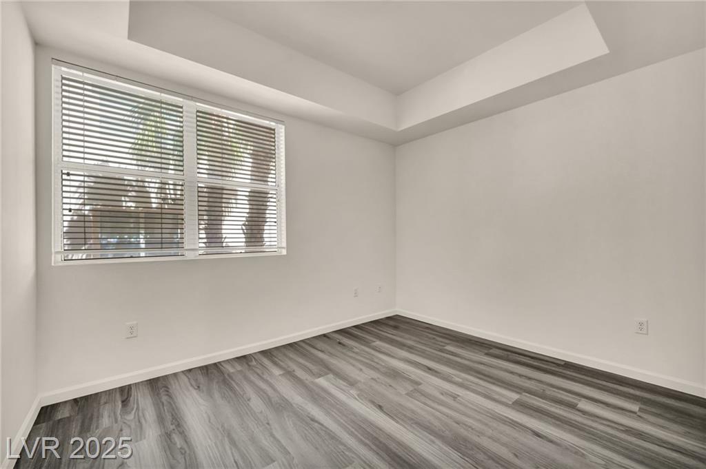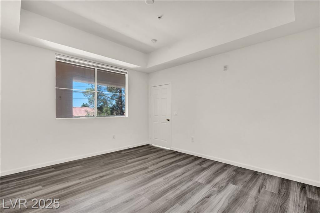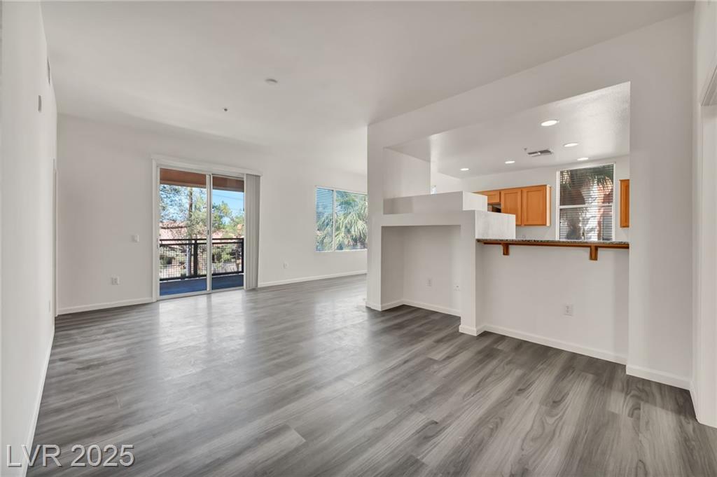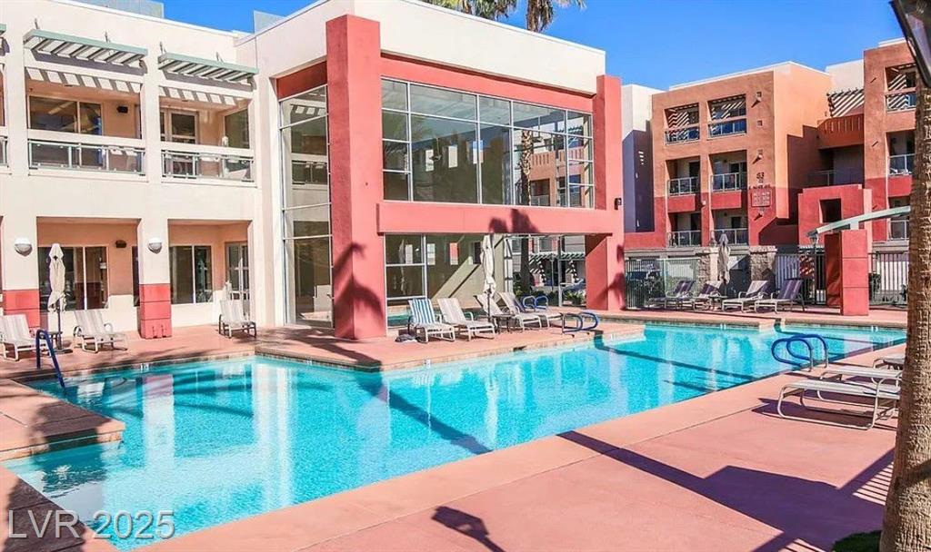 Live the Las Vegas Lifestyle — Just minutes from the iconic Strip and Allegiant Stadium, this beautifully upgraded top-floor condo offers the perfect blend of comfort, style, and convenience. Located in the exclusive guard-gated Park Avenue community, this modern unit features NEW interior paint, NEW luxury vinyl plank flooring, window treatments, and ceiling fans throughout. Enjoy stunning mountain views from your private balcony. You'll have the ease of both a secured garage parking space and an additional outdoor space. Indulge in resort-style amenities including a sparkling pool, tennis courts, and a two-story fitness center complete with locker rooms, steam room, and dry sauna — all designed to elevate your everyday living.