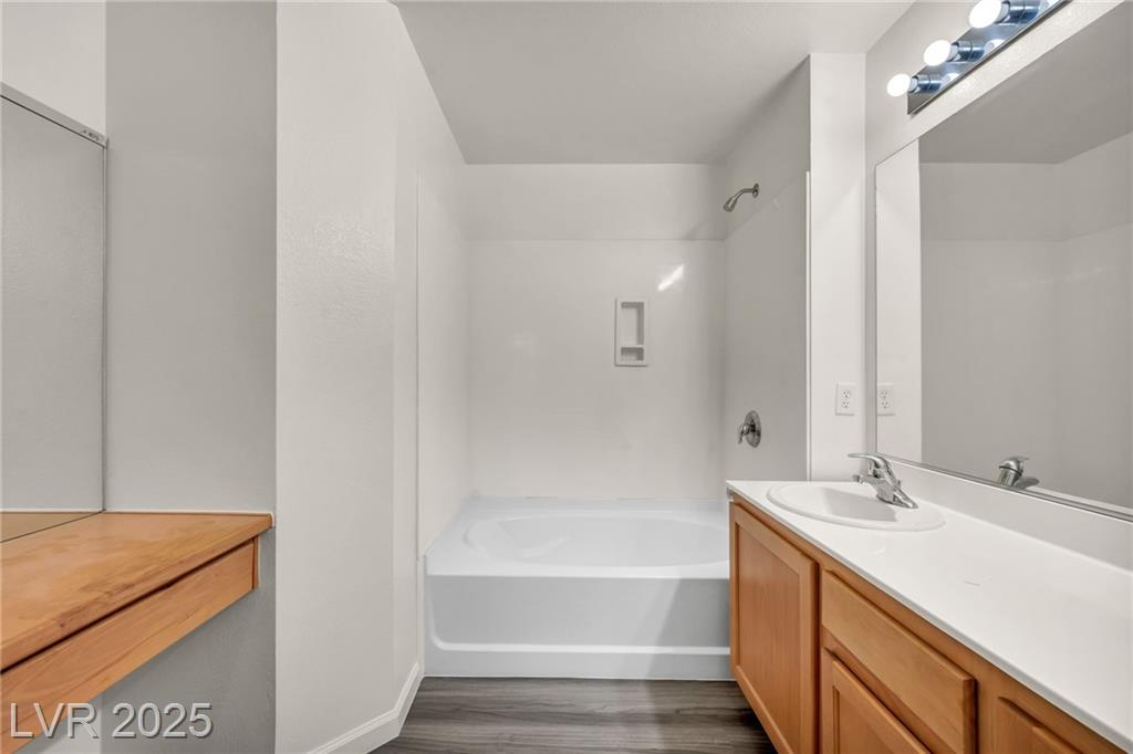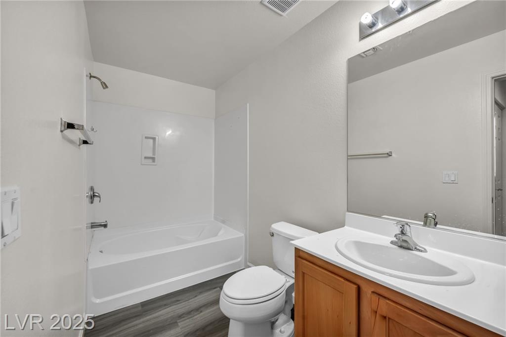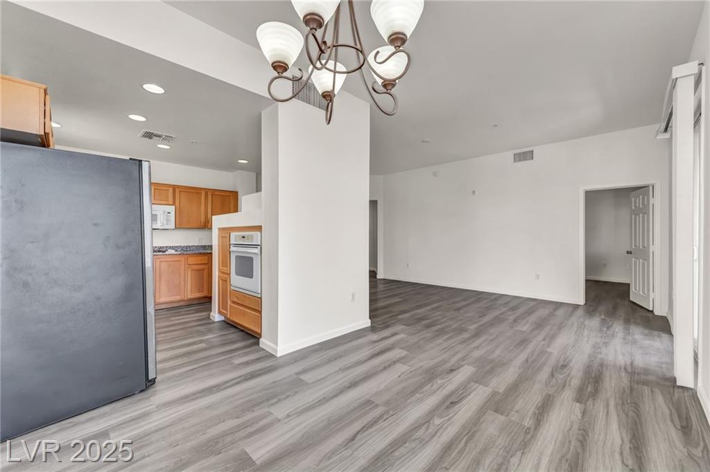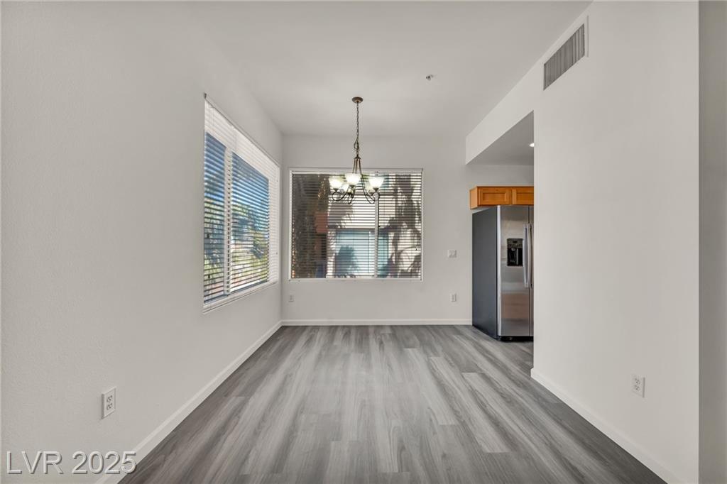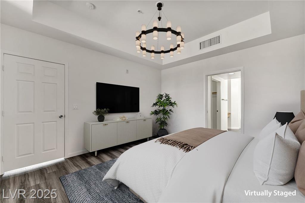 Live the Las Vegas Lifestyle — Just minutes from the iconic Strip and Allegiant Stadium, this beautifully upgraded top-floor condo offers the perfect blend of comfort, style, and convenience. Located in the exclusive guard-gated Park Avenue community, this modern unit features NEW interior paint, NEW luxury vinyl plank flooring, window treatments, and ceiling fans throughout. Enjoy stunning mountain views from your private balcony. You'll have the ease of both a secured garage parking space and an additional outdoor space. Indulge in resort-style amenities including a sparkling pool, tennis courts, and a two-story fitness center complete with locker rooms, steam room, and dry sauna — all designed to elevate your everyday living.