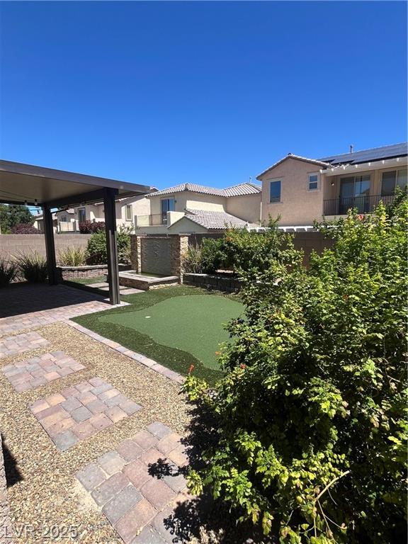 Beautiful 4-bedroom, 2-story home in a gated Southern Highlands community near the M Resort! Features include 20-ft ceilings, open living space with laminate floors, and a kitchen with island, granite countertops, stainless steel appliances, and pantry. Downstairs secondary master suite with walk-in closet and spa-style bath. Backyard retreat offers covered patio, putting green, and waterfall feature. Upstairs boasts 3 bedrooms with attached baths, plus a stunning primary suite with dual walk-in closets, private balcony, and luxury bath. Move-in ready — Take a tour today!