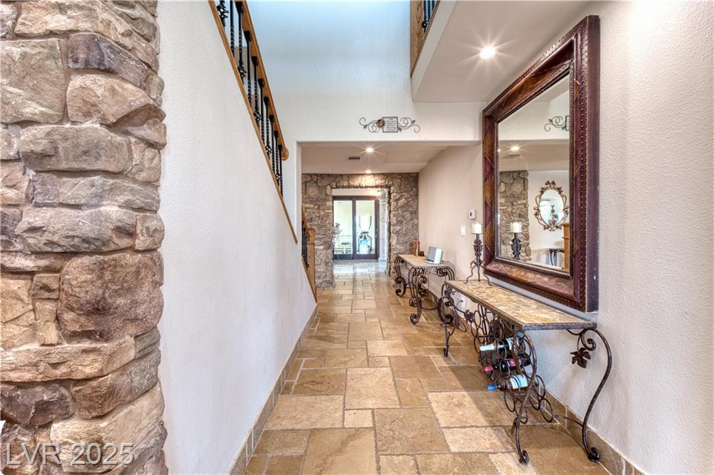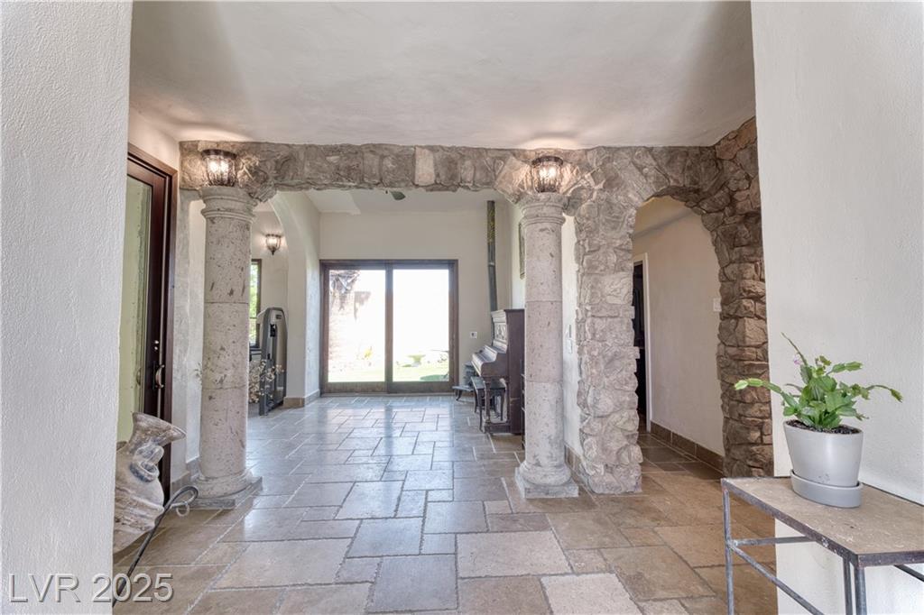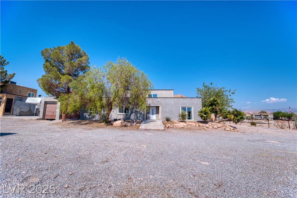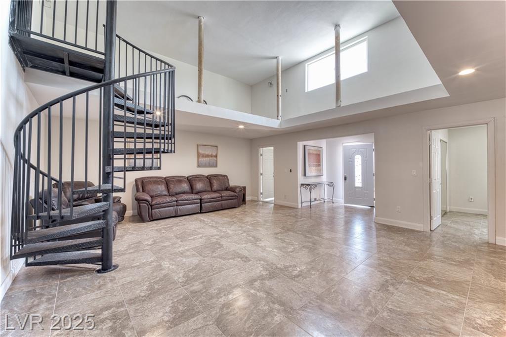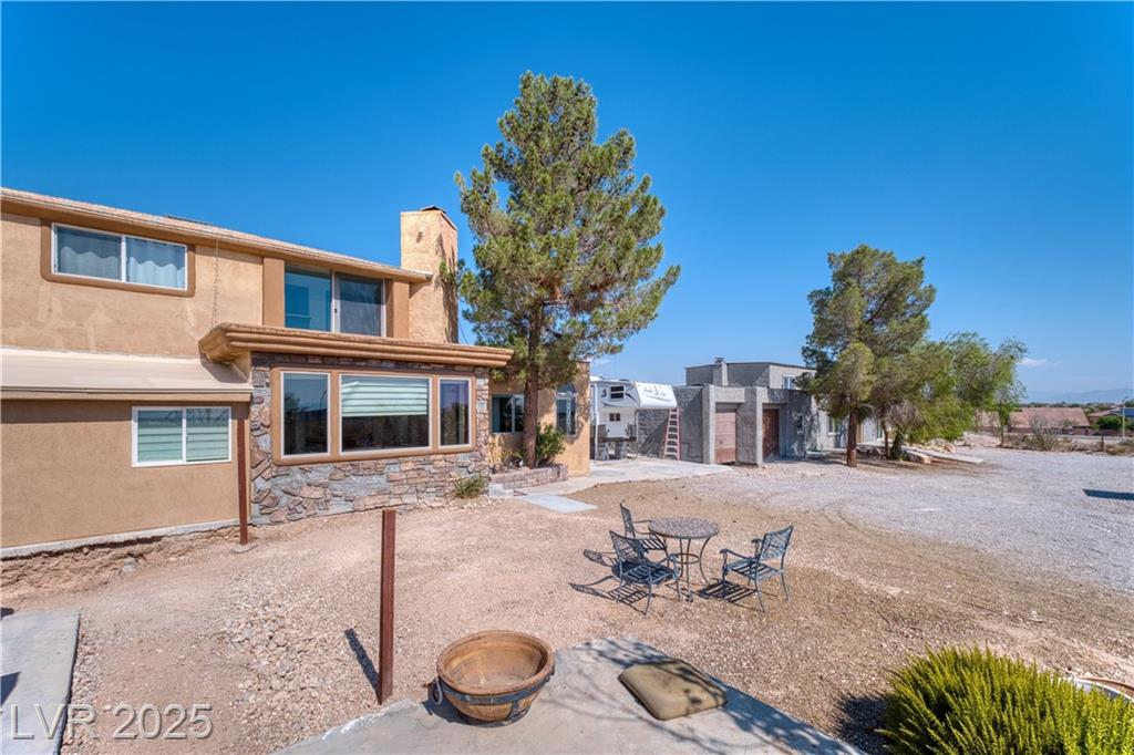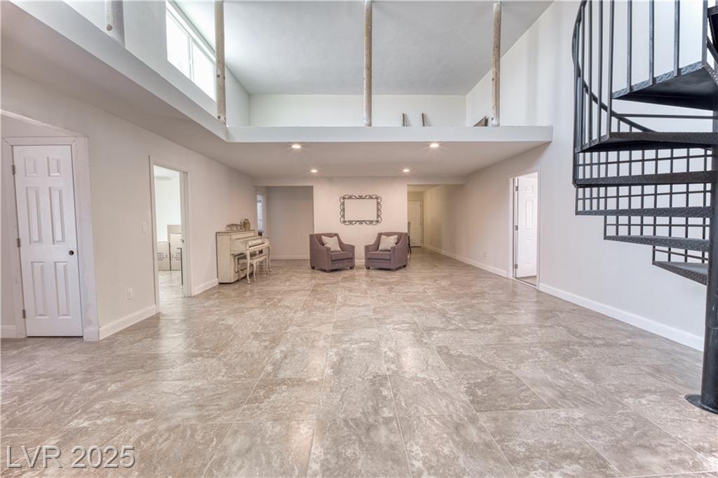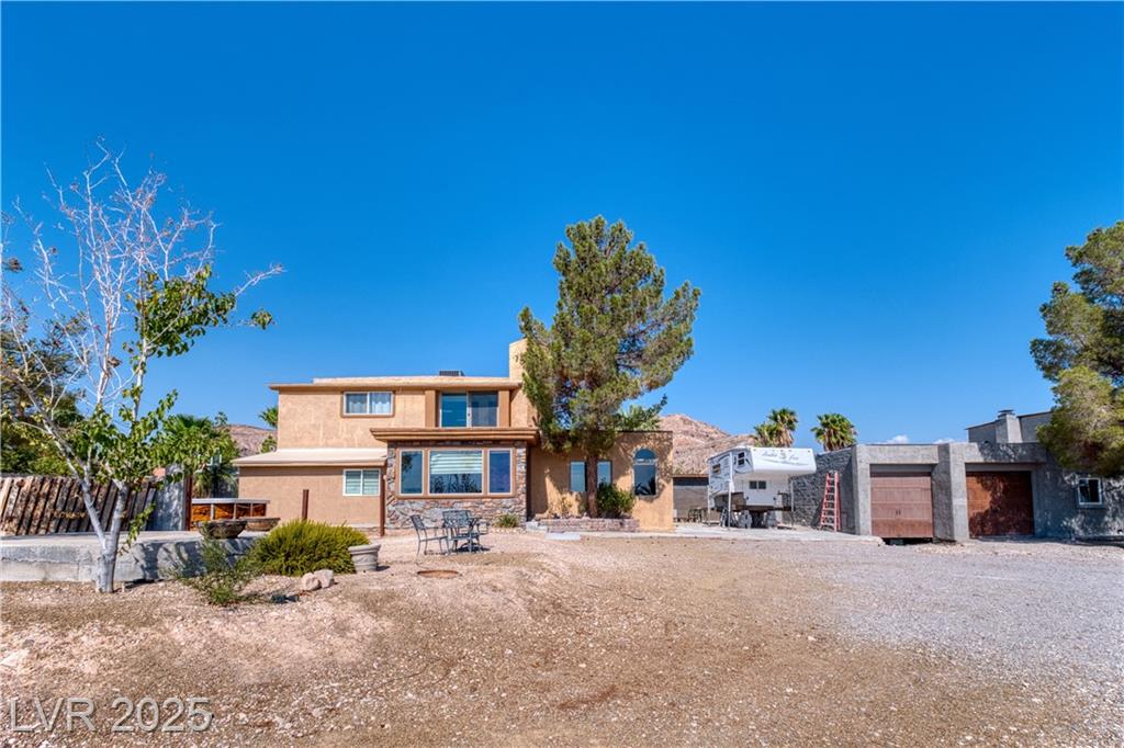 Where inspiration meets opportunity—spacious home and guest house on over 2 acres! This property offers LIMITLESS POTENTIAL to create your architectural vision. The main home features 3 bedrooms, 2 baths, a massive great room, loft area, tile flooring, high ceilings, and a fireplace in the primary bedroom. Kitchen, primary bathroom and loft are awaiting your finishing touches. The guest house includes 4 bedrooms, 2 baths, loft area, working Air Conditioning, tile flooring downstairs, a cozy fireplace in the living room and multiple courtyards to entertain or just relax. Enjoy generous outdoor space with no HOA restrictions. Well and Septic. Don’t miss this unique chance to own a versatile and expansive property in Las Vegas. Home sold As-Is, where-is. Buyer and Buyer’s Agent to verify all information and dimensions.
