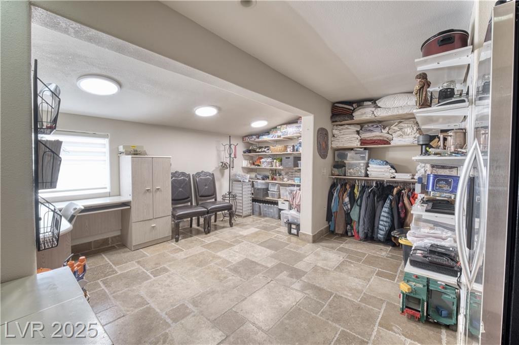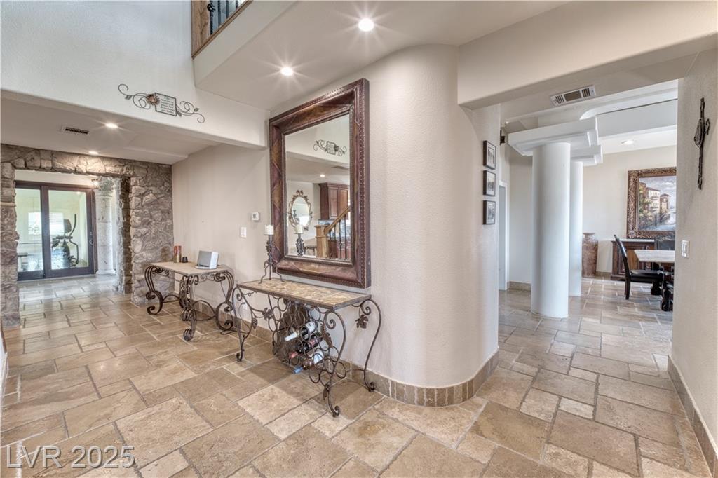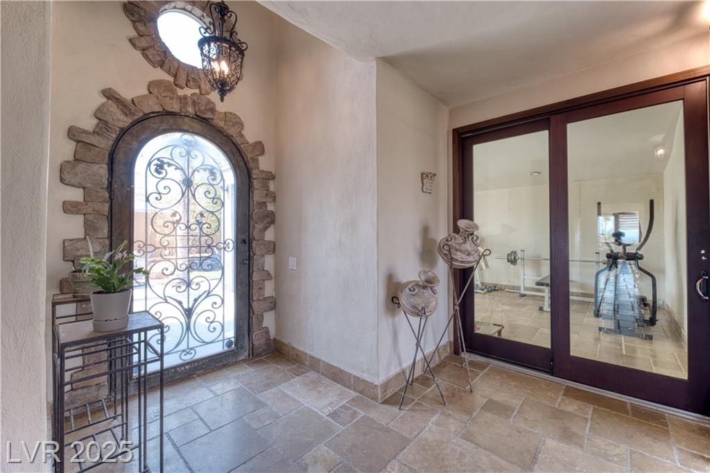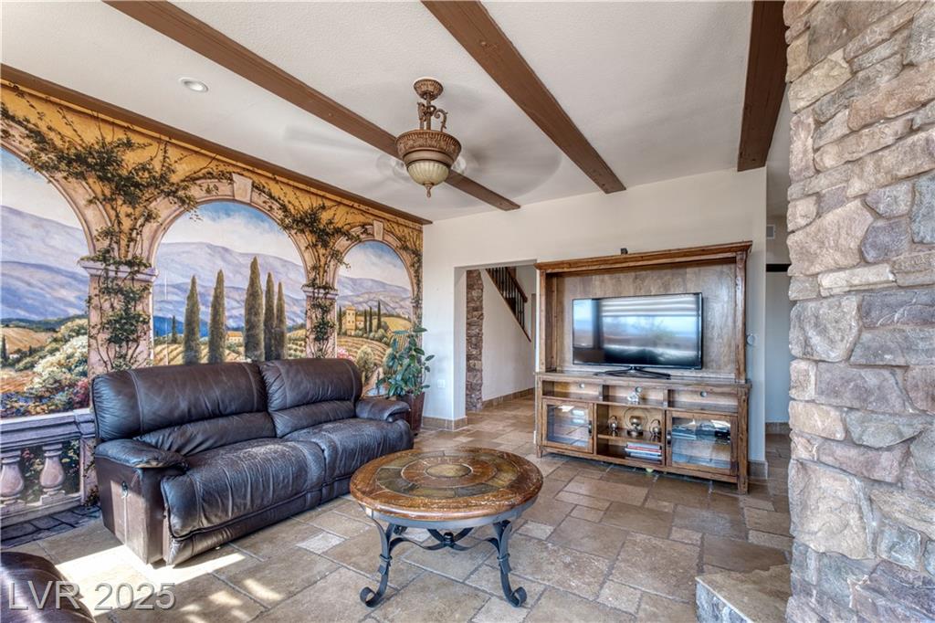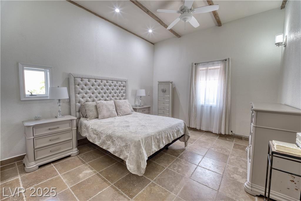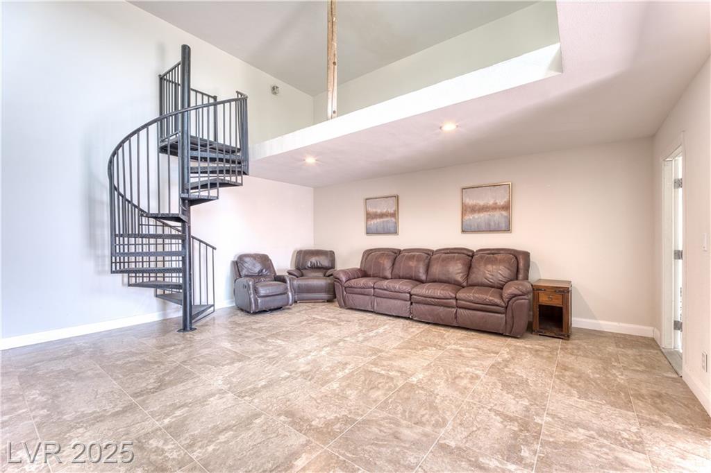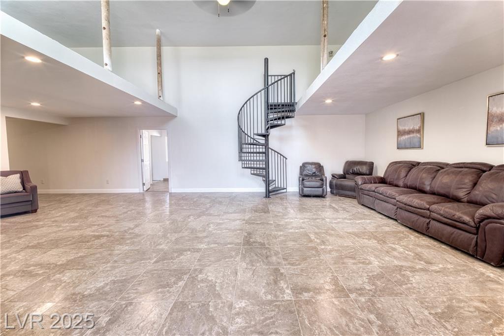 Where inspiration meets opportunity—spacious home and guest house on over 2 acres! This property offers LIMITLESS POTENTIAL to create your architectural vision. The main home features 3 bedrooms, 2 baths, a massive great room, loft area, tile flooring, high ceilings, and a fireplace in the primary bedroom. Kitchen, primary bathroom and loft are awaiting your finishing touches. The guest house includes 4 bedrooms, 2 baths, loft area, working Air Conditioning, tile flooring downstairs, a cozy fireplace in the living room and multiple courtyards to entertain or just relax. Enjoy generous outdoor space with no HOA restrictions. Well and Septic. Don’t miss this unique chance to own a versatile and expansive property in Las Vegas. Home sold As-Is, where-is. Buyer and Buyer’s Agent to verify all information and dimensions.