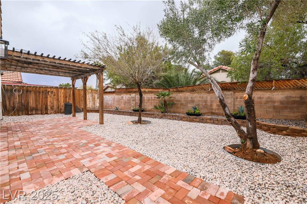 Step into this inviting single-story home featuring 3 bedrooms, high ceilings, and recessed lighting that create a bright and open atmosphere. The living room offers a cozy fireplace, while the kitchen is complete with appliances, sleek quartz countertops, and white cabinets for a modern touch. Each bedroom provides comfortable space, and the backyard showcases mature desert landscaping, perfect for easy maintenance and year-round enjoyment. Conveniently located near shopping, dining, and everyday essentials, this home offers both comfort and accessibility.