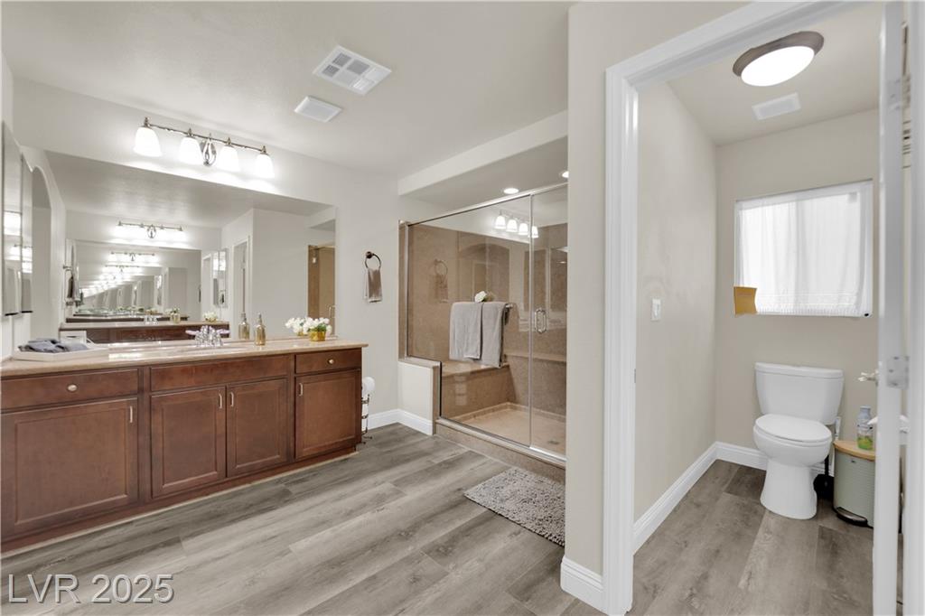 This spacious home truly has it all, featuring two primary suites for ultimate flexibility and comfort. The primary bedroom is exceptionally large, complete with a generous closet offering ample storage space. Location, location, location! Just minutes from the iconic Las Vegas Strip, the airport, world-class entertainment, freeway and more, this home provides unparalleled convenience. Impeccably clean and meticulously maintained, this beautifully designed property boasts 4 bedrooms and 3 bathrooms with powder room downstairs. The modern kitchen, with its expansive island, is perfect for both cooking and entertaining, while the low-maintenance yard offers a serene retreat. Contemporary finishes throughout add charm and sophistication, and the community park is just a short walk away. This move-in-ready gem has everything you’ve been searching for don’t miss out, it won’t last long!
