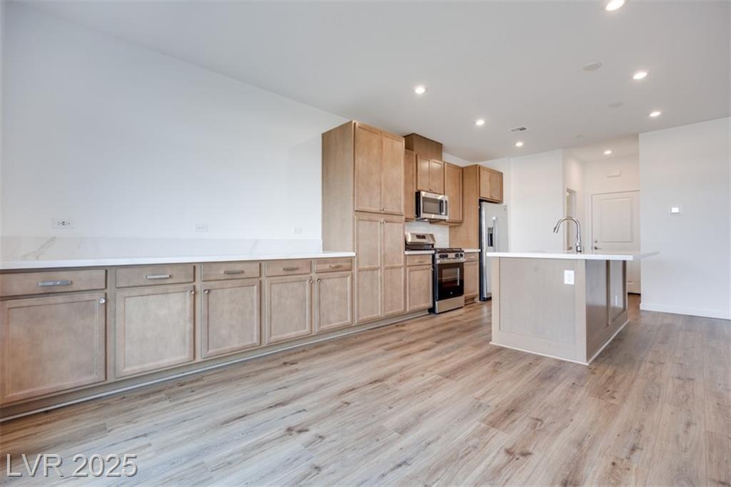 Options, financing, and closing costs incentives available. Speak to on-site sales agent for details. Beautifully modern 2 story townhome w/ 2 car garage and 3 bedrooms in new community. Once through the entry, the home flows from one room to the next. The living area is very bright and open, with tile flooring throughout. The stunning kitchen boasts an oversized island and sleek cabinets. The primary suite is large and private. The ensuite bathroom features double sinks, and oversized tub with shower. Relax and enjoy the private balcony as well as the landscaped backyard. The community is centrally located to, southwest, and Henderson area.