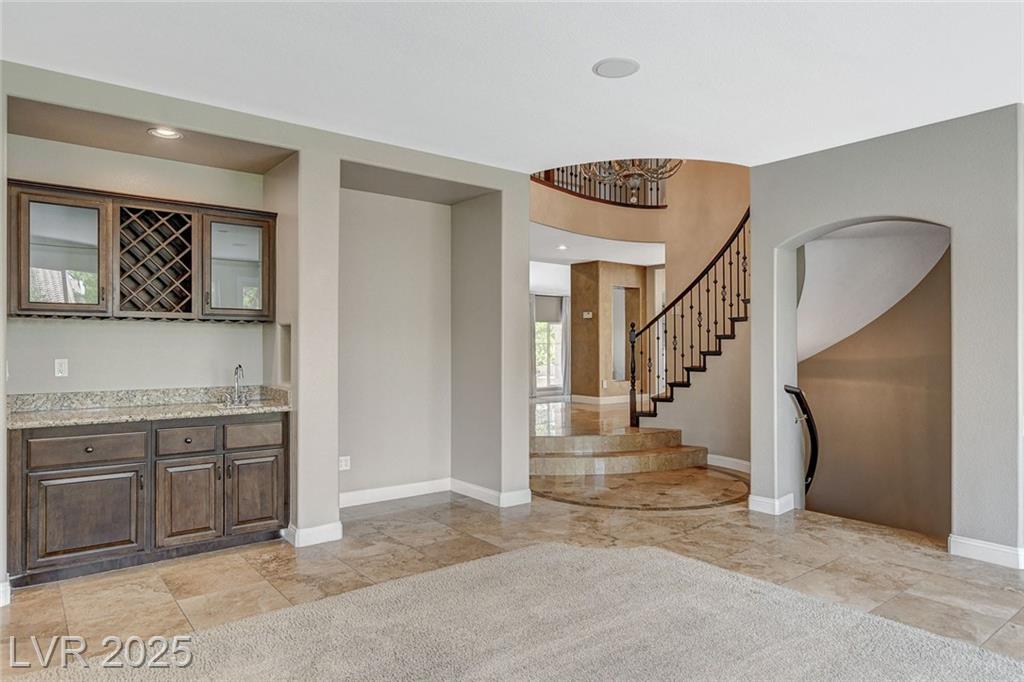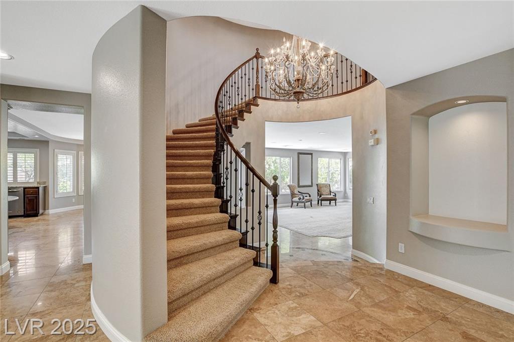 Located in the prestigious guard-gated Royal Highlands in Southern Highlands, this spacious home offers elegance and comfort. Features include soaring ceilings, a 3-way fireplace, wet bar, and a chef’s kitchen with granite counters, large island, and breakfast bar. The oversized primary suite has a sitting area plus spa-like bath with soaking tub and walk-in shower. Secondary bedrooms provide plenty of flexibility for guests or office space. Enjoy the beautifully landscaped backyard with mature trees for privacy, plus a finished basement perfect for a theater, gym, or wine cellar. A rare rental opportunity in one of Las Vegas’ most sought-after communities!