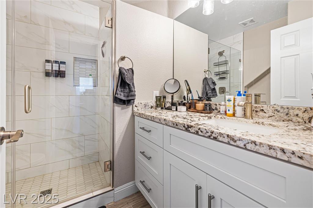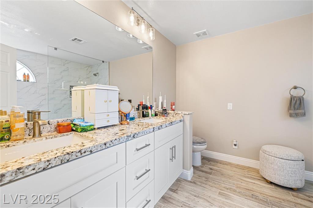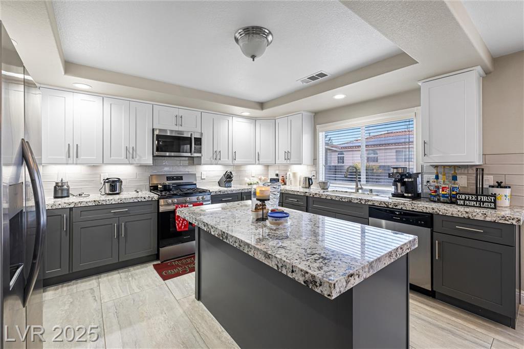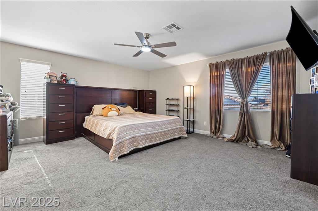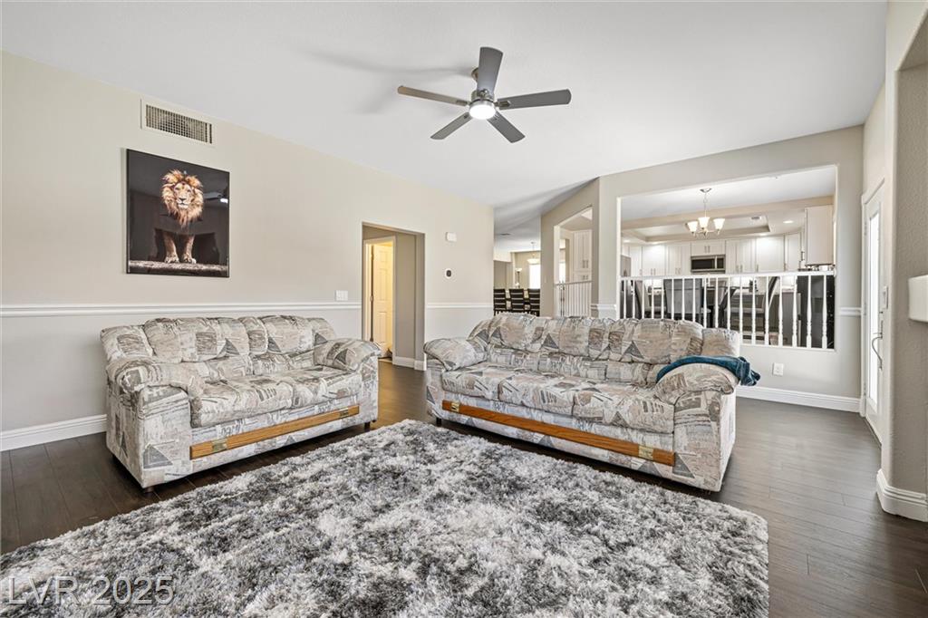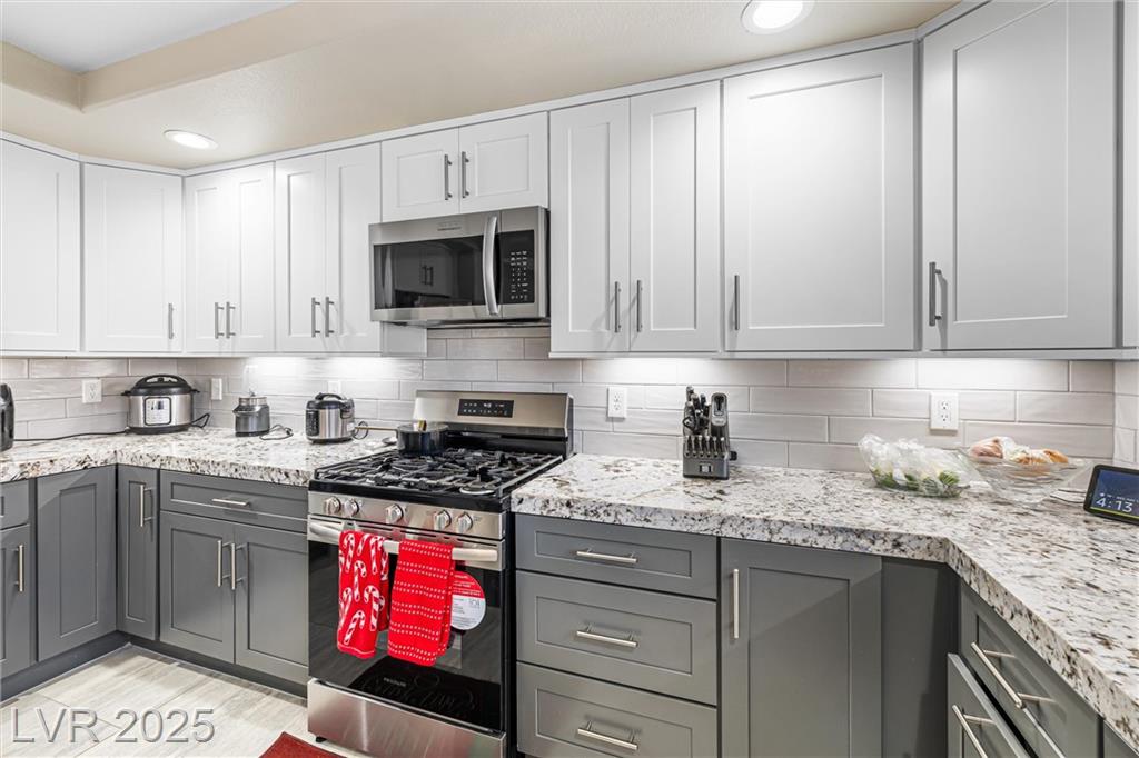 OVER 50K IN SLEEK, MODERN UPGRADES! RECENTLY APPRAISED AT 650K. This spacious 5-bed, 3-bath home with loft in desirable Silverado Ranch features RV parking and a 3-car garage. Perfect for multi-gen living, it offers a full bedroom & bath downstairs. The open floor plan includes new laminate, tile, and carpet flooring plus fresh paint inside & out. The bright kitchen shines with new cabinets, granite counters, and stainless appliances, flowing into multiple living spaces with two fireplaces. Bathrooms are updated with new flooring, granite, and walls. Upgrades include new lighting, blinds, and artificial turf in front. Oversized backyard with endless potential. Low HOA at $21/month, close to parks, schools & shopping.