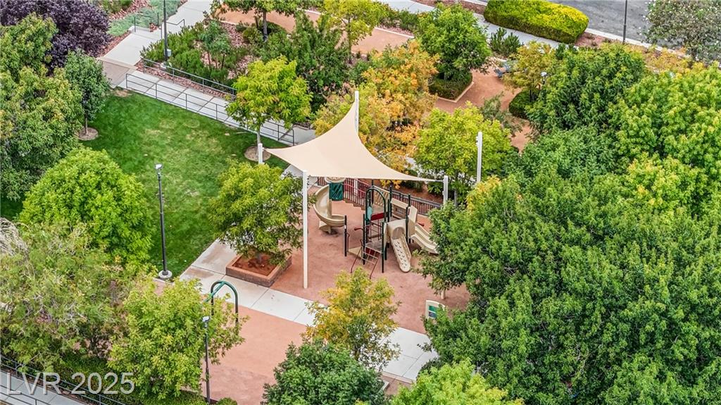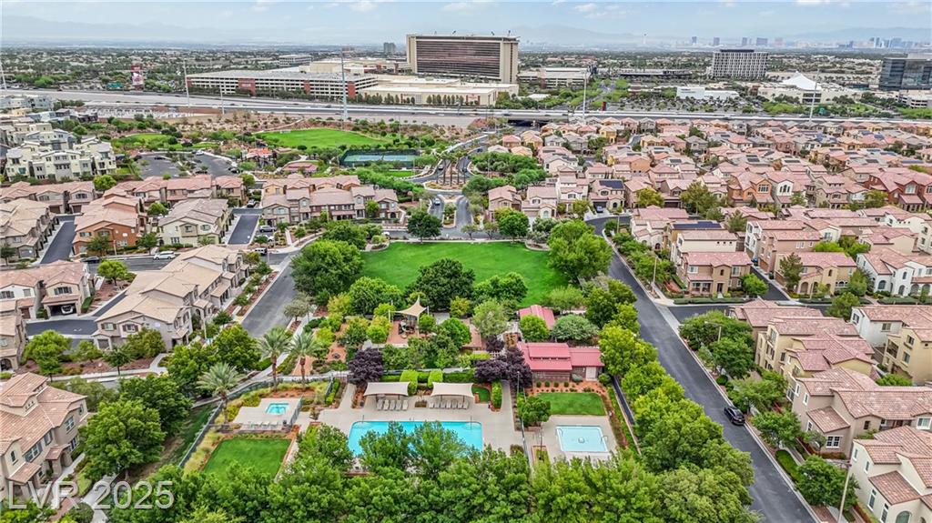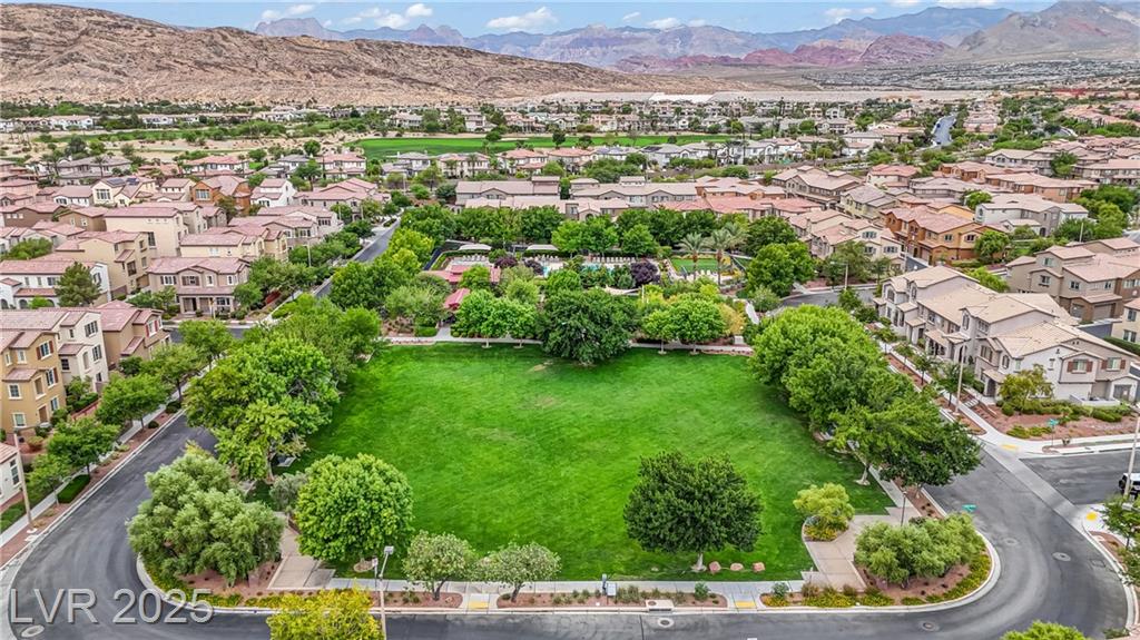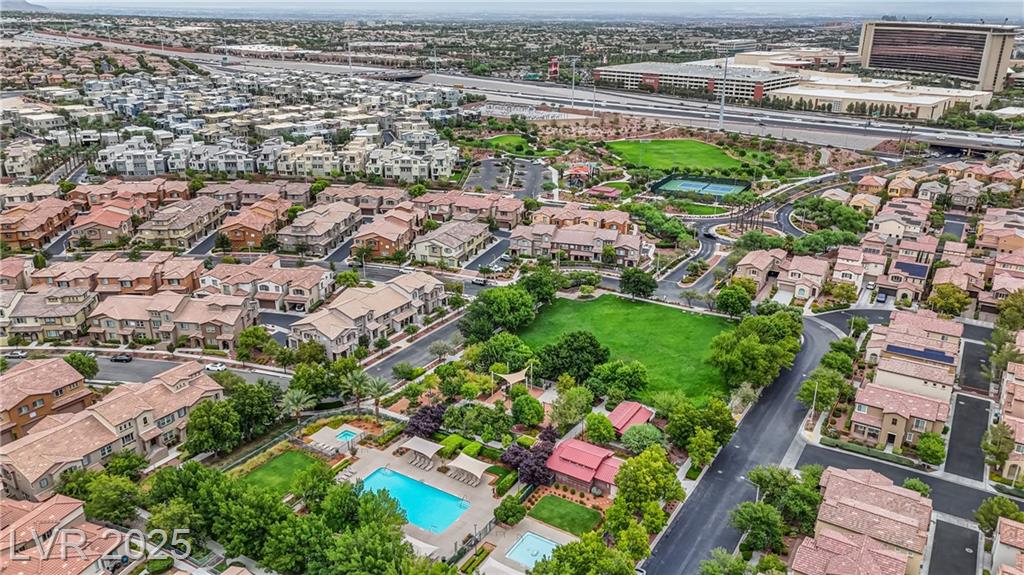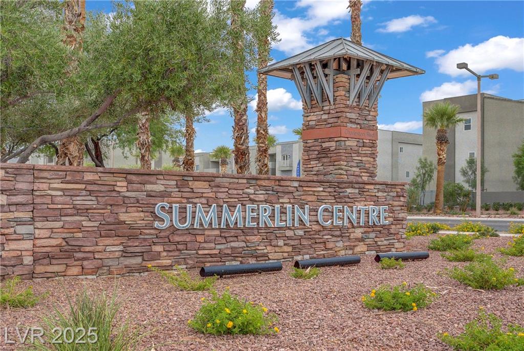 A townhouse in desirable Summerlin South in mint condition! The open living area features a stone fireplace, perfect for relaxing evenings. The kitchen is beautifully appointed with custom cabinets, granite countertops, stainless steel appliances, lg walk-in pantry, and stone surroundings. The second level features the first primary bedroom with en suite bath featuring double vanity, granite counters, separate tub/shower, and large walk-in closet, 2 nice size secondary bedrooms and a versatile den or 5th bedroom! The third level is a second primary with en suite bath and a large walk in closet. This gem is near the community amenities which includes a pool, jacuzzi, park, covered grilling and picnic area, kiddie pool, and playground equipment. The home is a quiet end unit with a 2 car garage w/ epoxy flooring and a water softener. Shows like a model home!