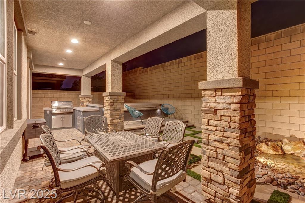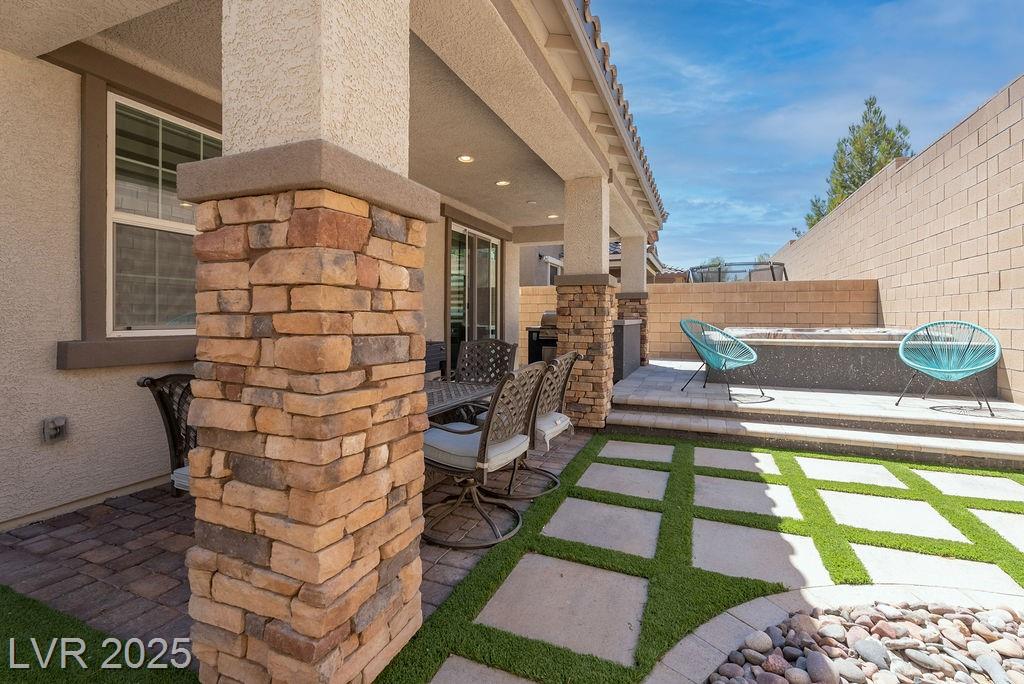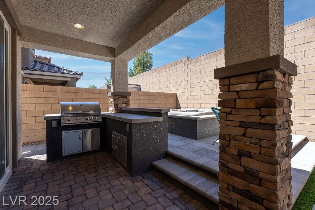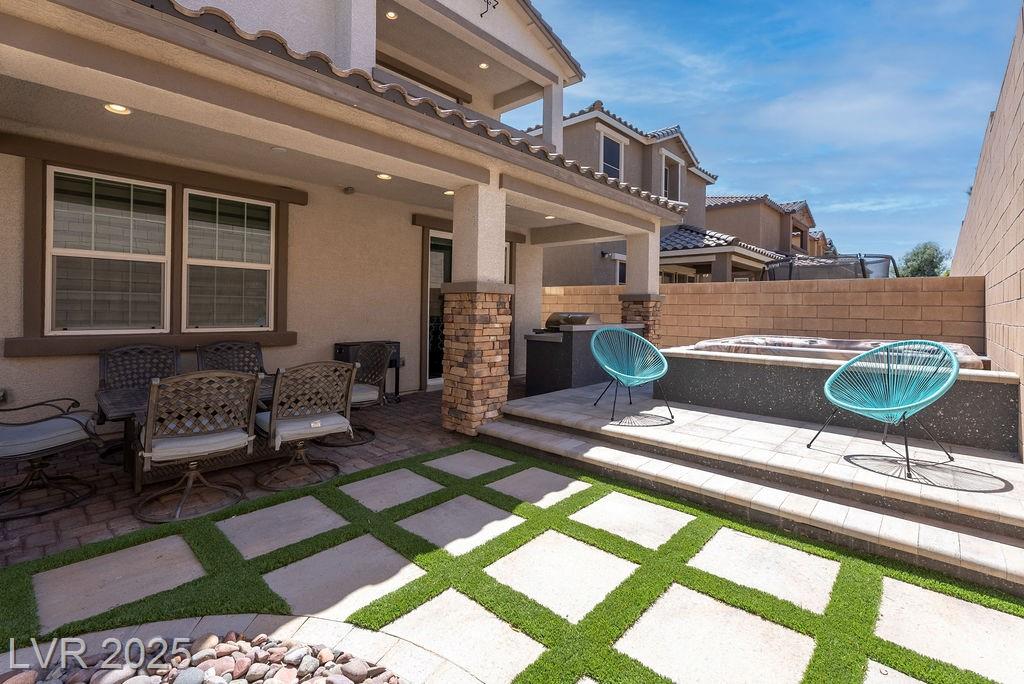 *** UPGRADES | BACKYARD OASIS | SELLER OFFERS $10,000 INCENTIVE AT LIST PRICE *** Live the sky life with this Skye Canyon jewel! Featuring a backyard waterfall, elevated pavers wrapping around your jacuzzi and entertain guests with your built in BBQ grill area! The upgraded marble countertops, upgraded cabinets with stainless steel accents along with modern tile floors and plush soft to touch carpet floors are going to make you feel right at home. Come getaway and enjoy your Skye Canyon amenities with community pool, hot tub, fitness center, playground, park, pickleball/basketball courts and walking trails throughout the community to soak in the great outdoor life at this very much sought after Northwest Las Vegas Community!